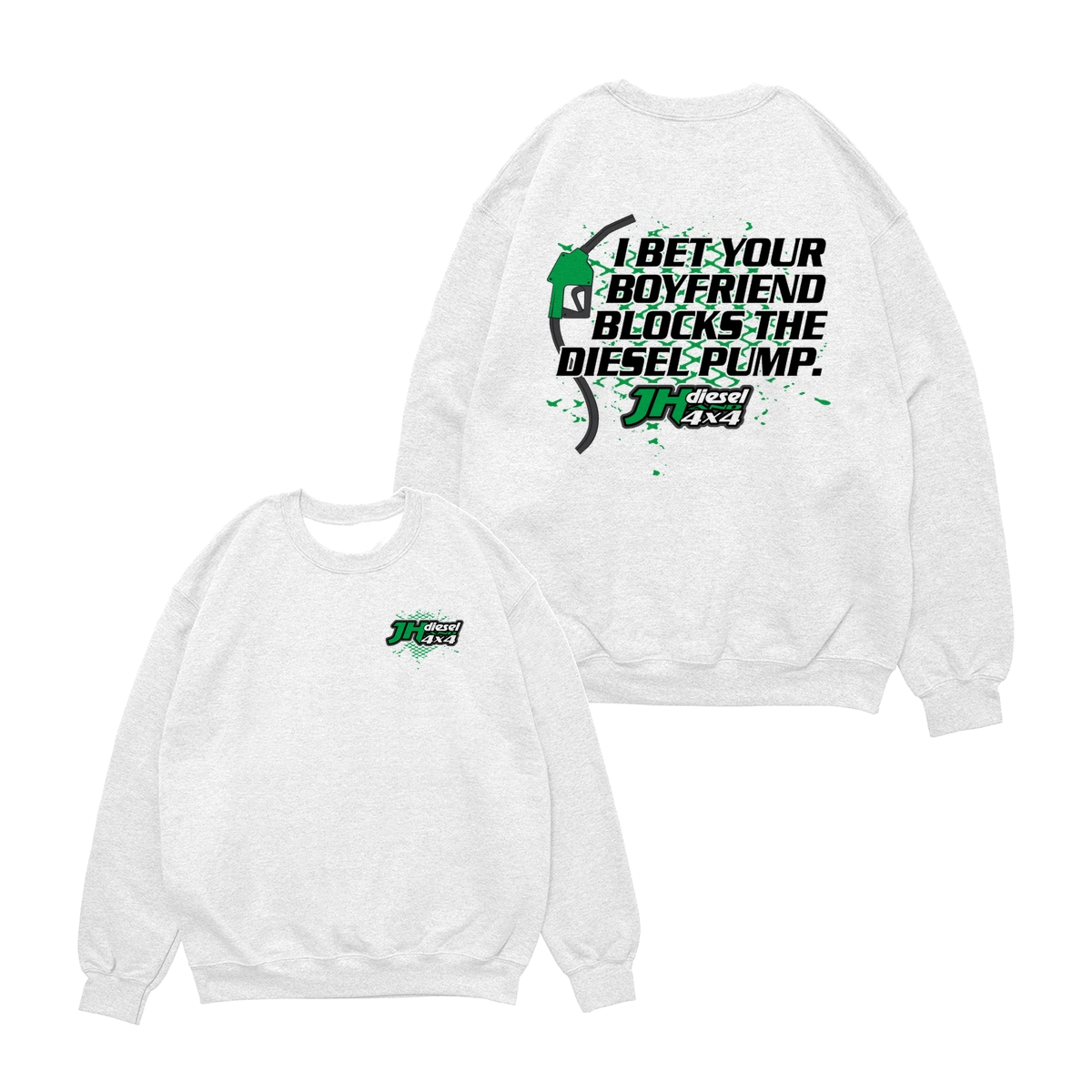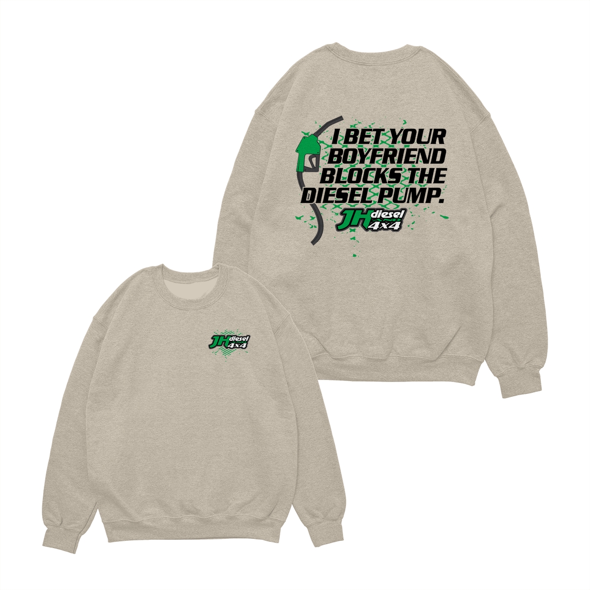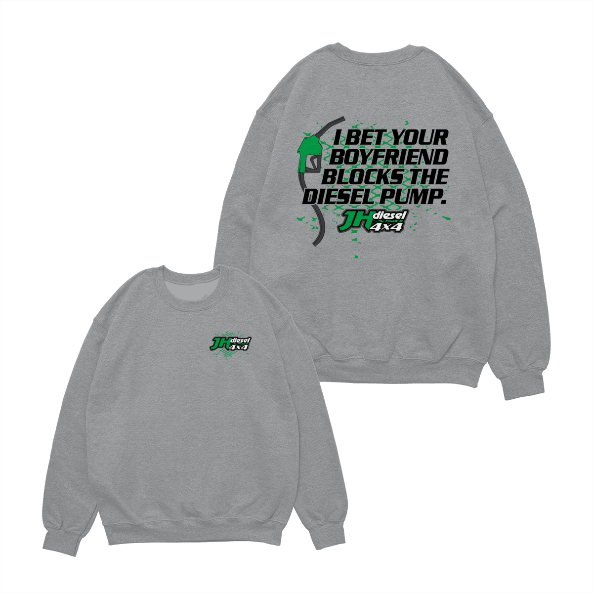 Cleetus McFarland JH’s Diesel ‘Your Boyfriend Blocks Diesel Pump’ Double-Sided T-Shirt – Funny Truck Apparel for Diesel Fans & Gearheads