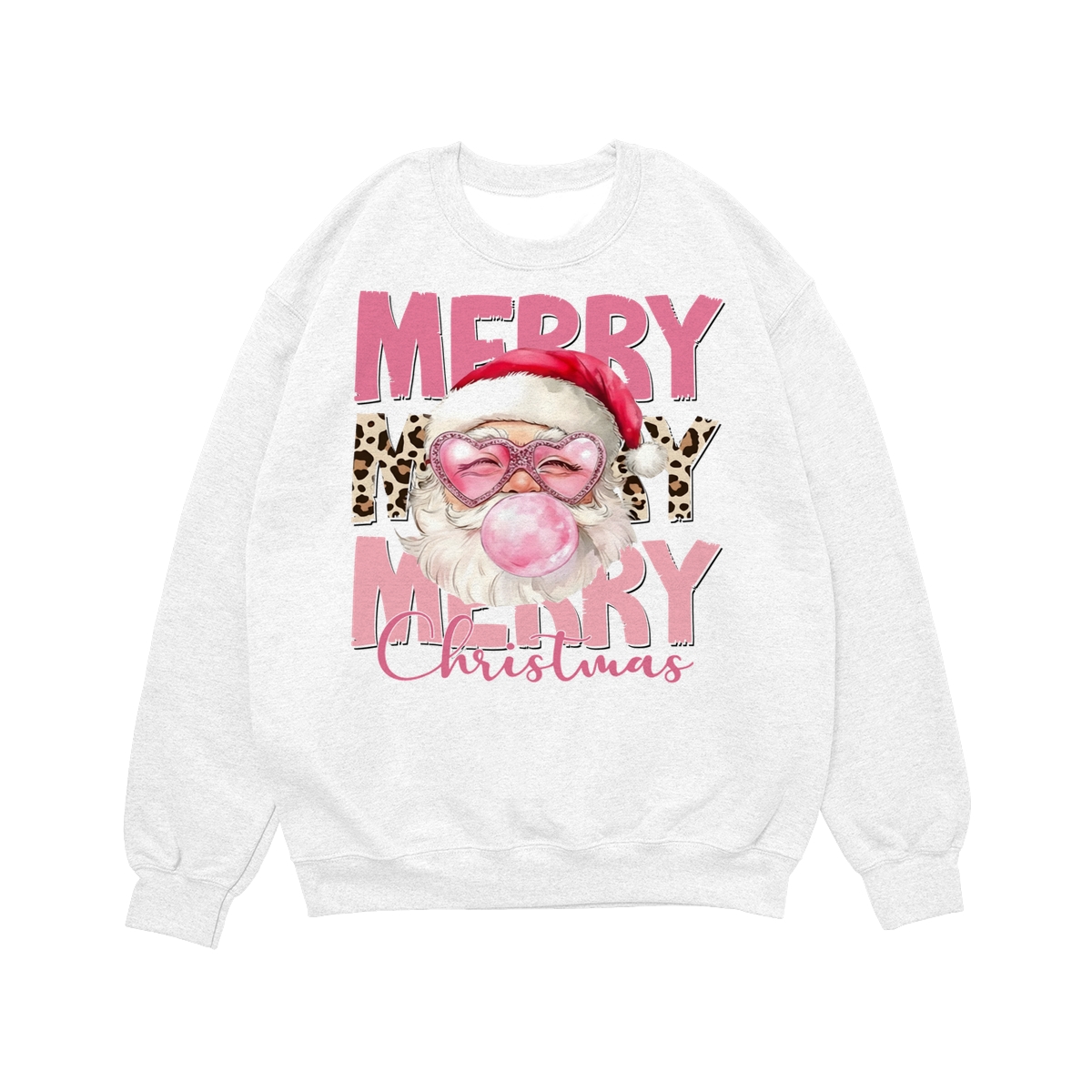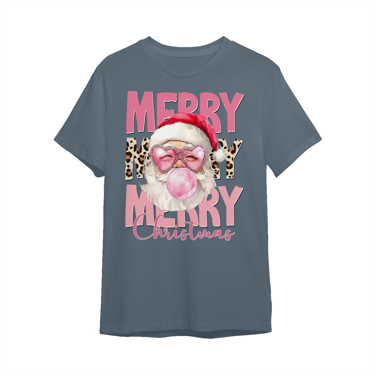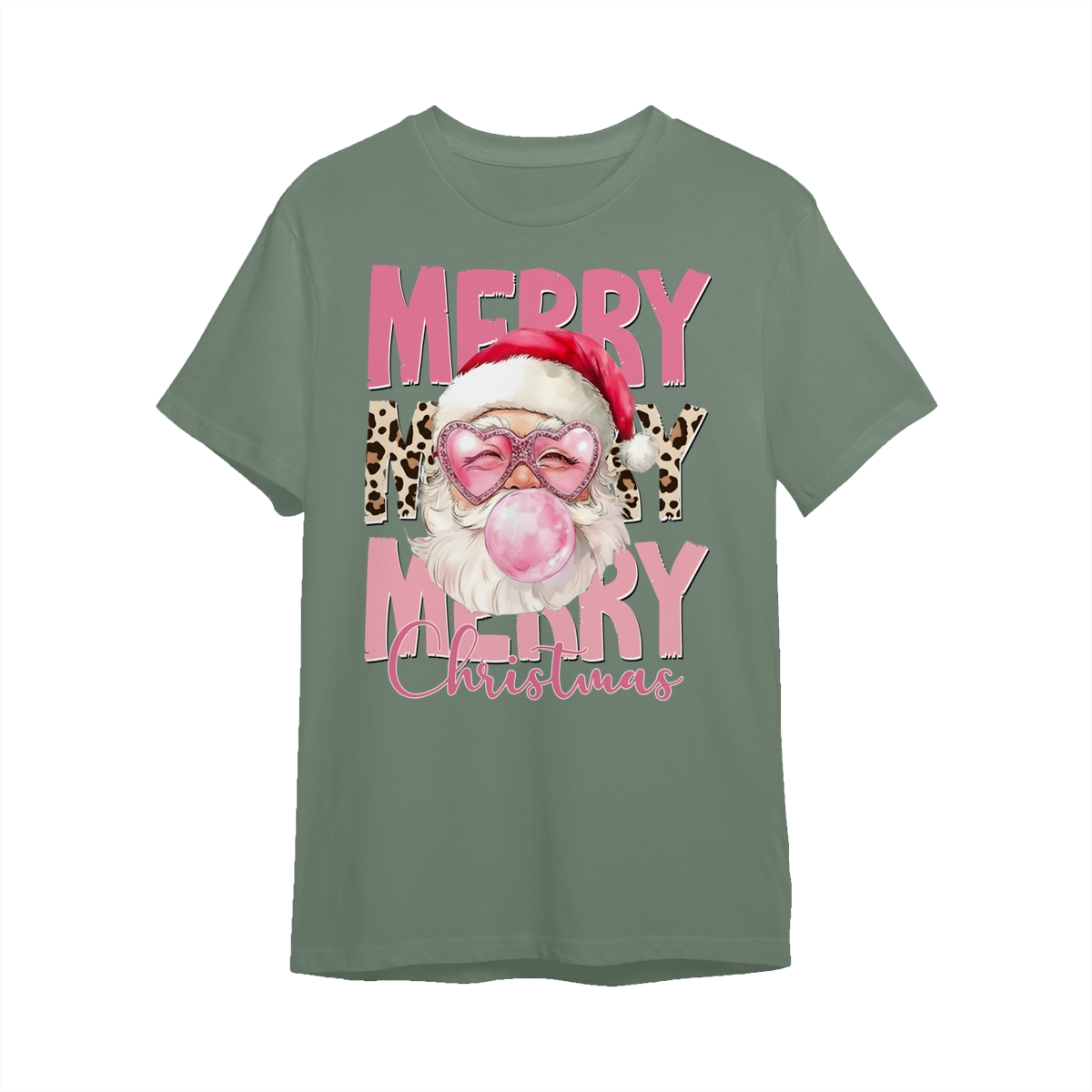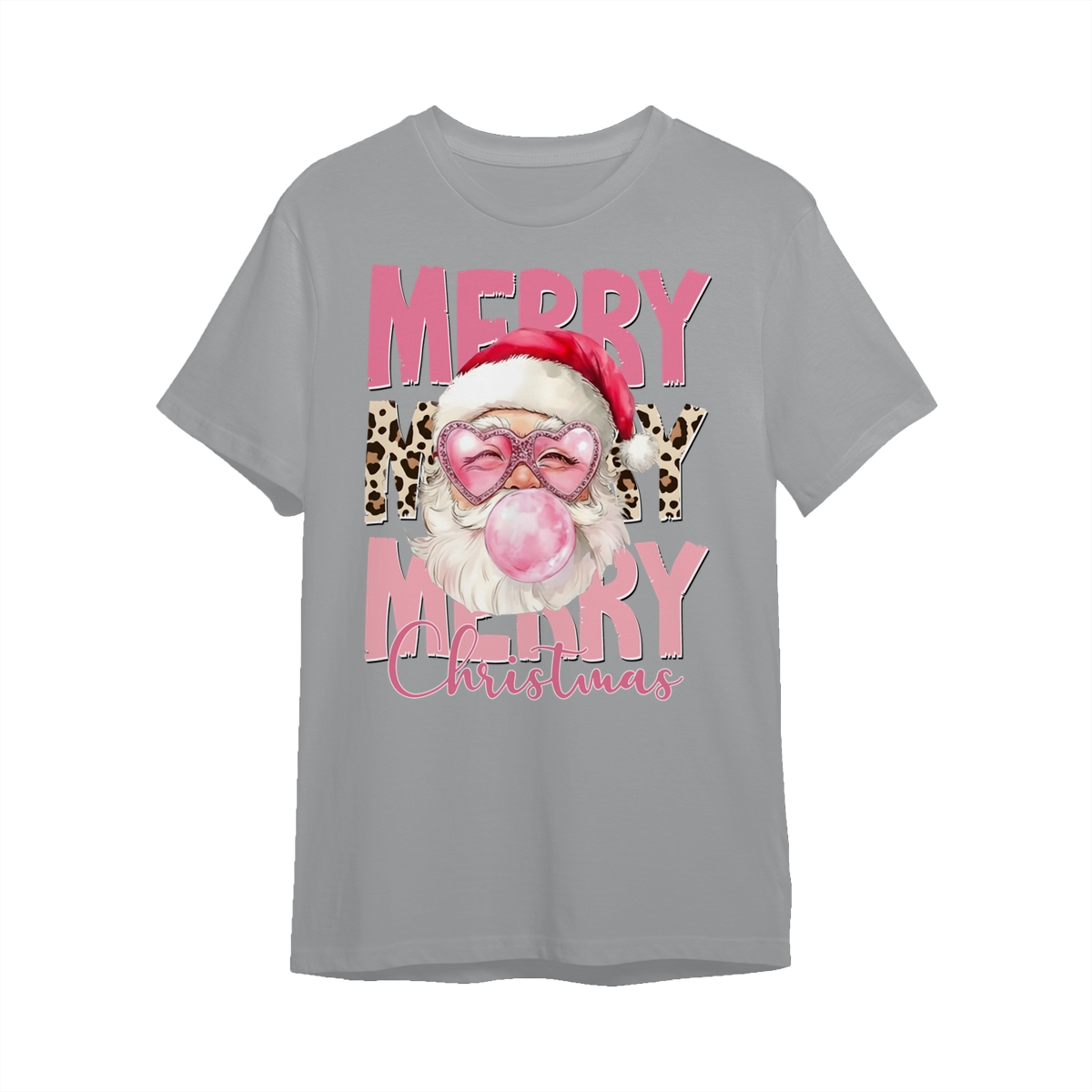 [Collection For Christmas] Funky Retro Santa Christmas Bubble Gum T-Shirt – Merry Christmas Graphic,With Pink Lettering & Santa , Casual Outdoor Tee For Men & Women2025