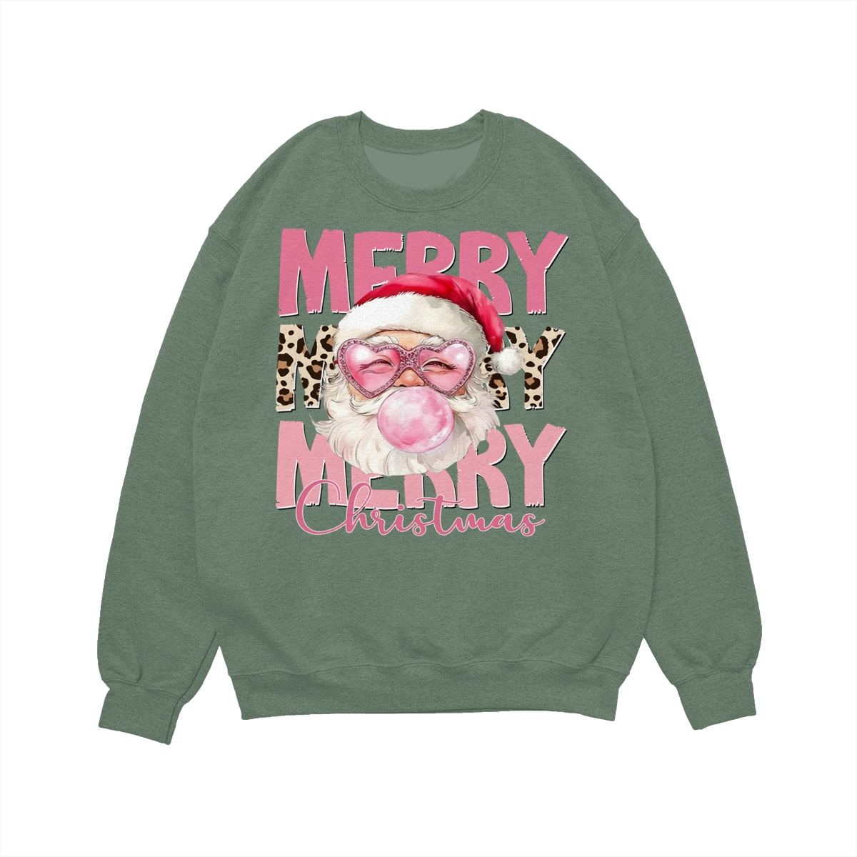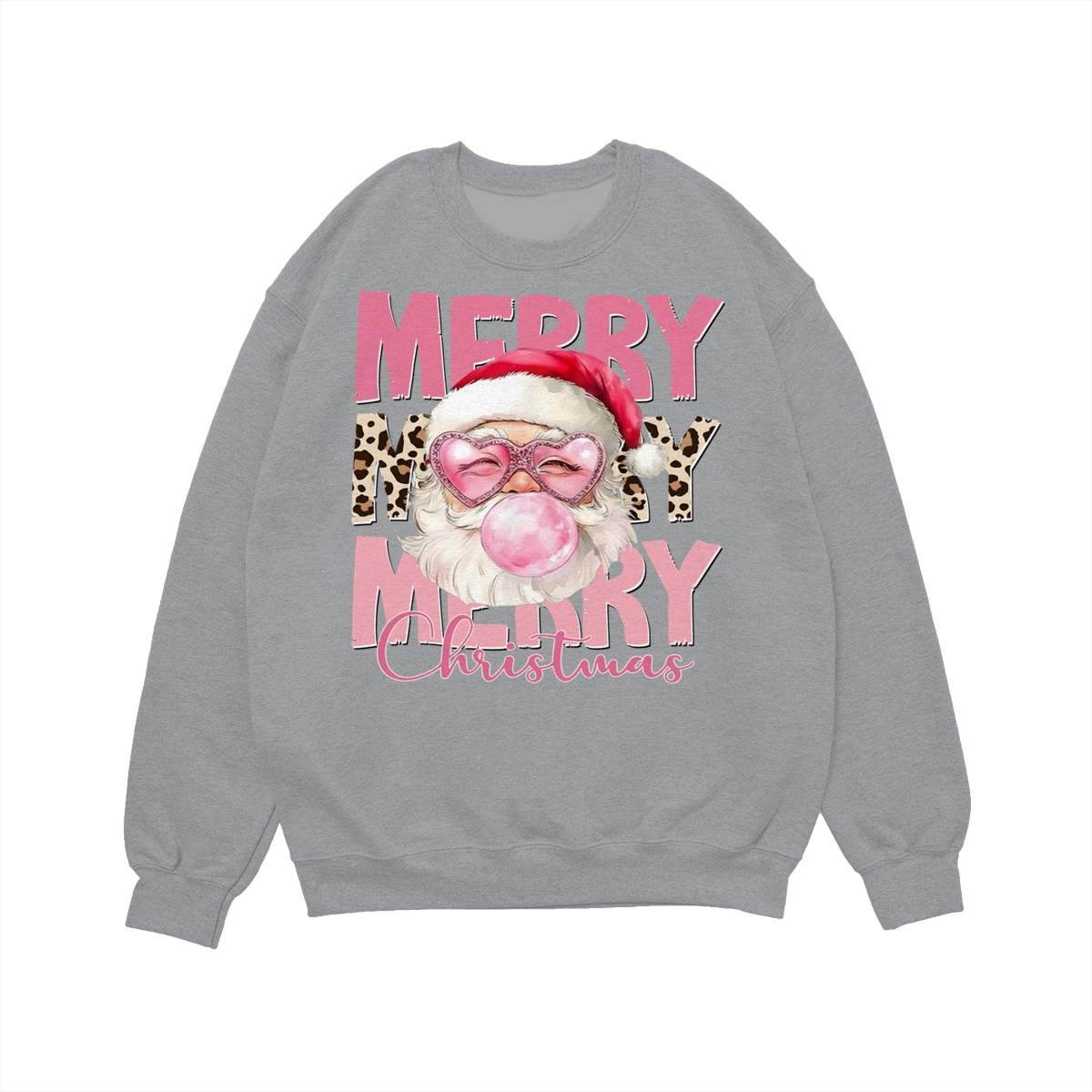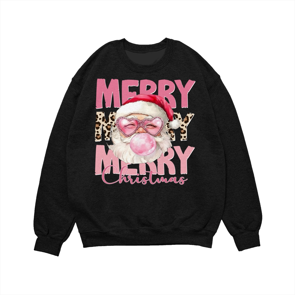 [Collection For Christmas] Funky Retro Santa Christmas Bubble Gum T-Shirt – Merry Christmas Graphic,With Pink Lettering & Santa , Casual Outdoor Tee For Men & Women2025