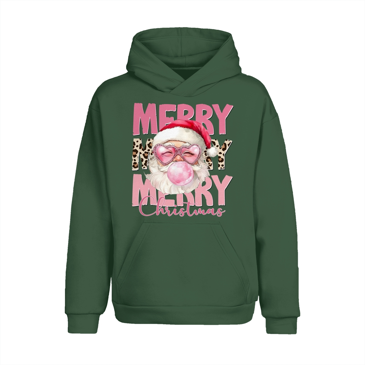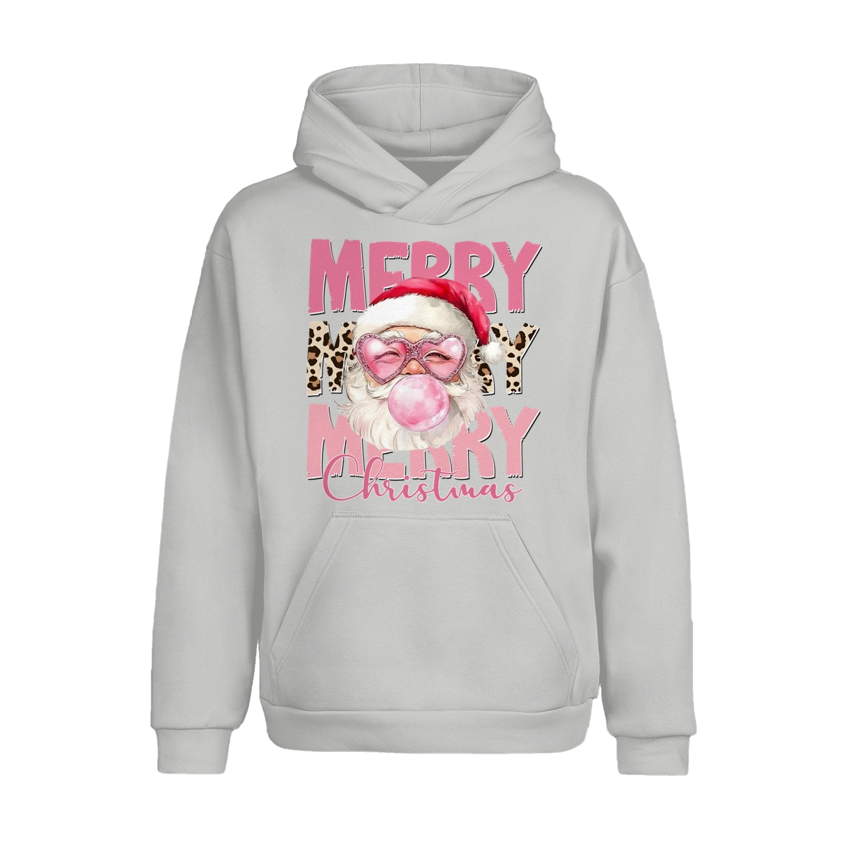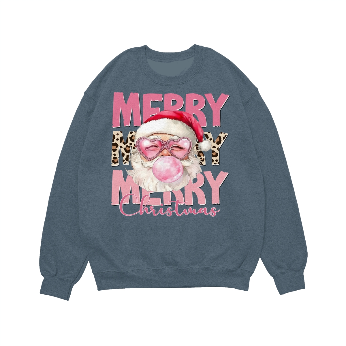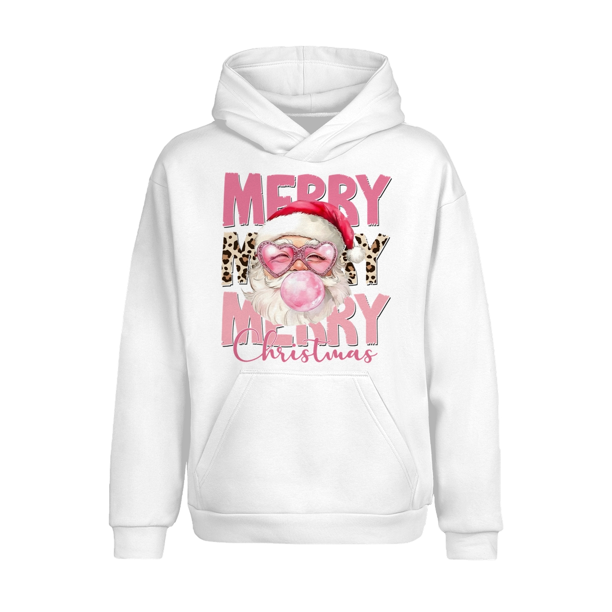 [Collection For Christmas] Funky Retro Santa Christmas Bubble Gum T-Shirt – Merry Christmas Graphic,With Pink Lettering & Santa , Casual Outdoor Tee For Men & Women2025