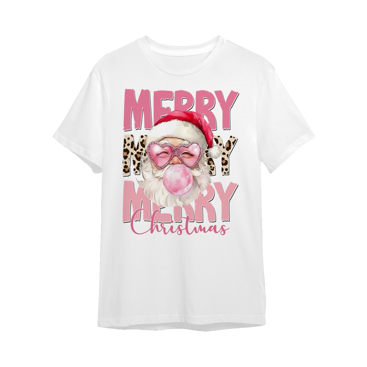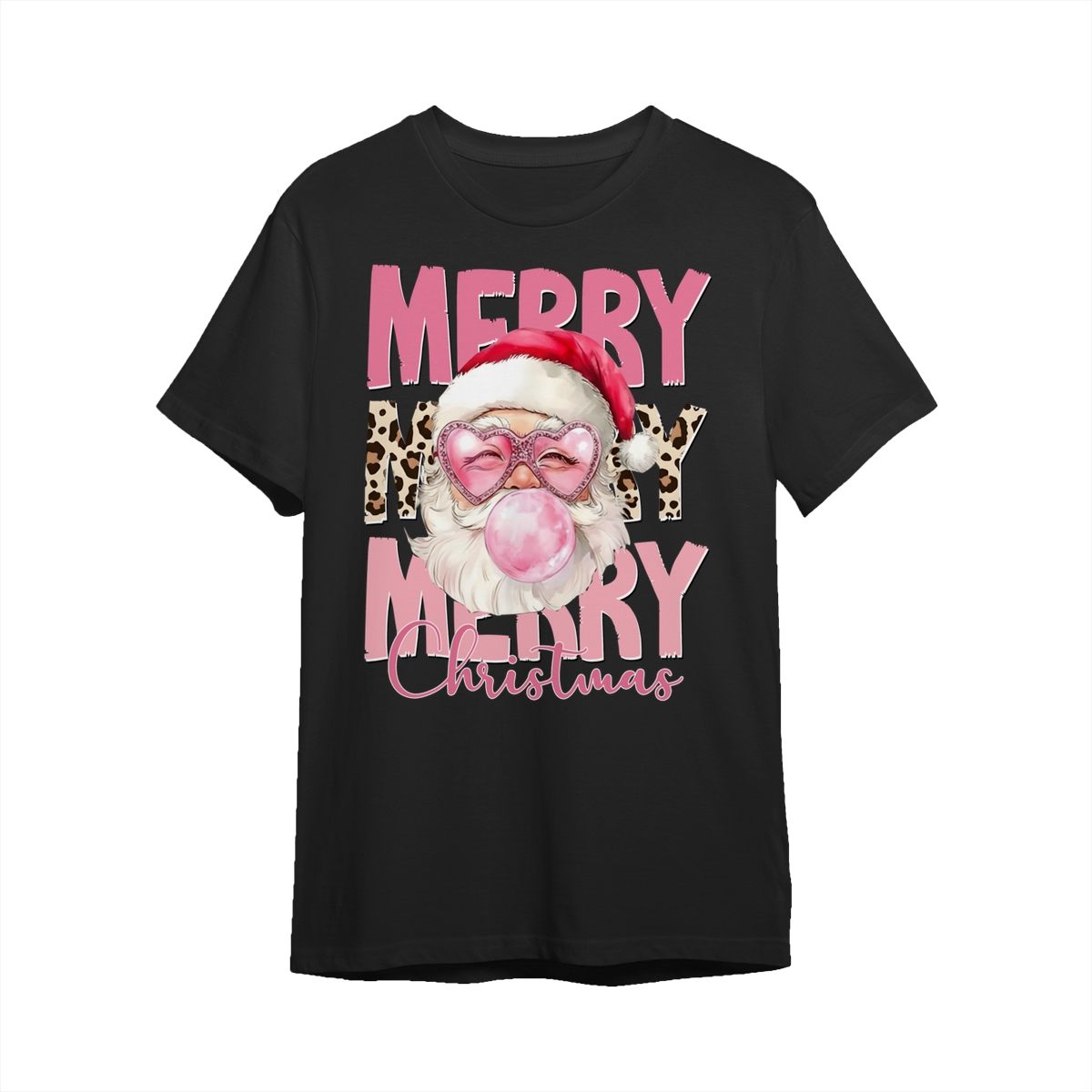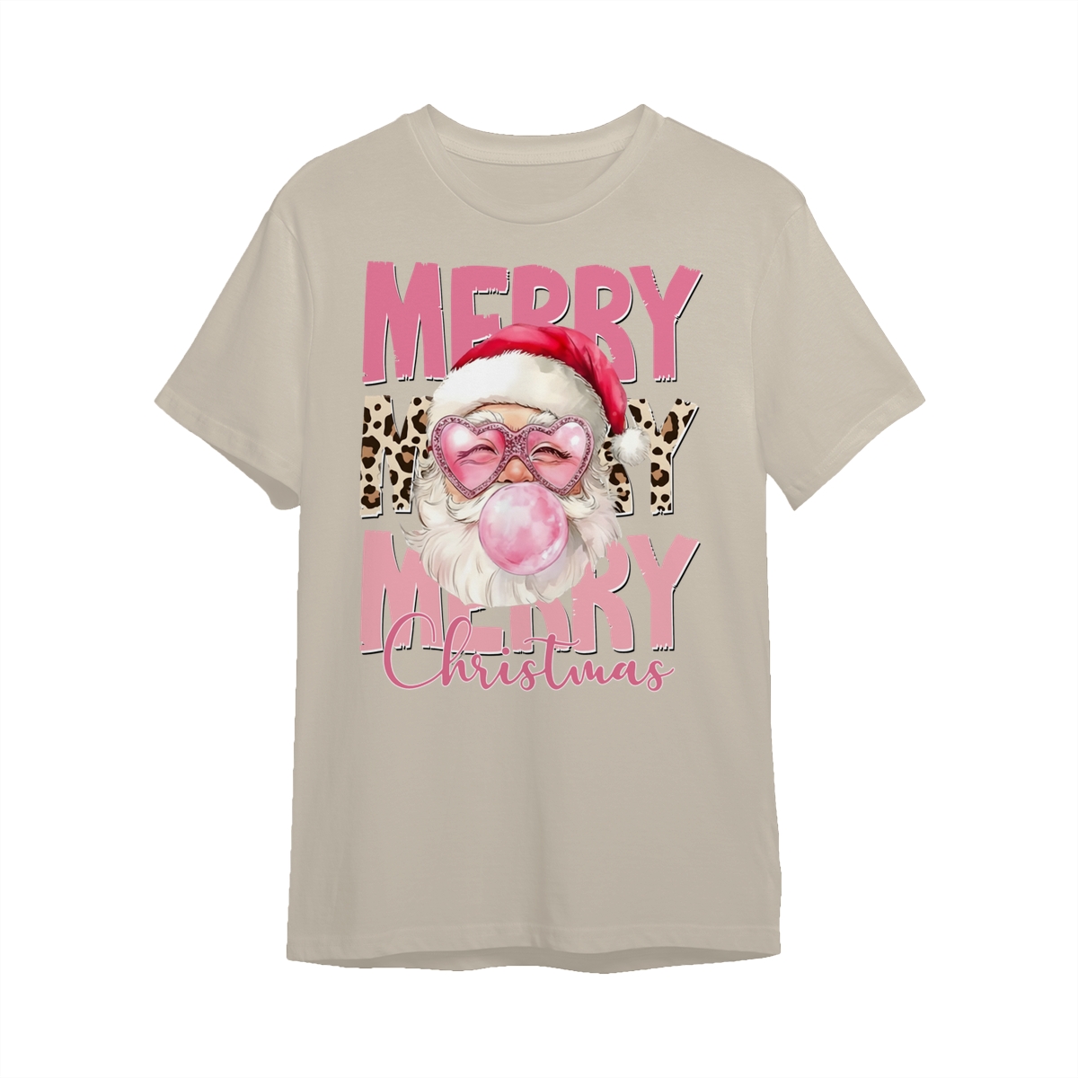 [Collection For Christmas] Funky Retro Santa Christmas Bubble Gum T-Shirt – Merry Christmas Graphic,With Pink Lettering & Santa , Casual Outdoor Tee For Men & Women2025
