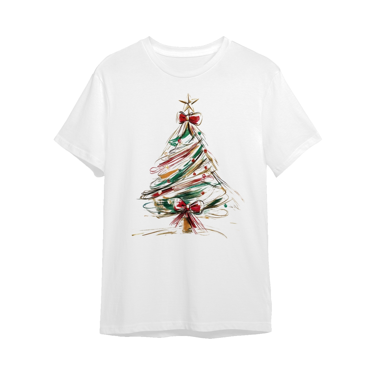 Colorful Coquette Glitter Christmas Tree, Girly Christmas Tree Design, Bright Color Christmas Coquette Bow Dalmantian Dots, brushstroke Casual Daily Wear Tee For Men & Women, Apparel Made In The USA