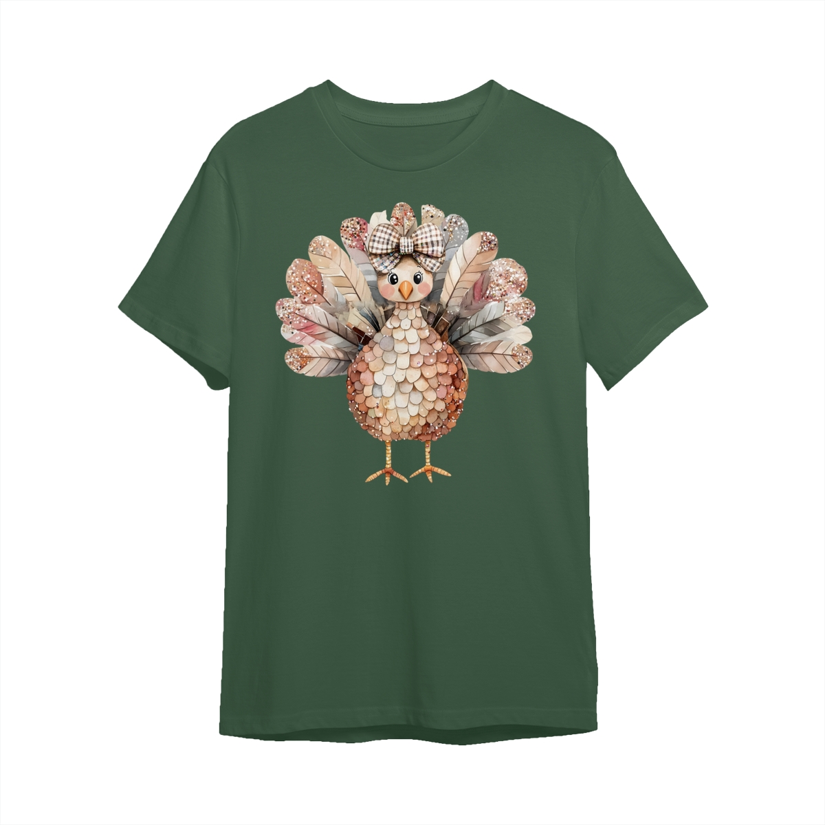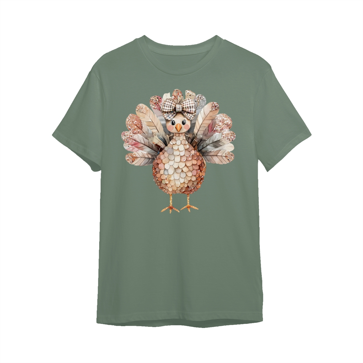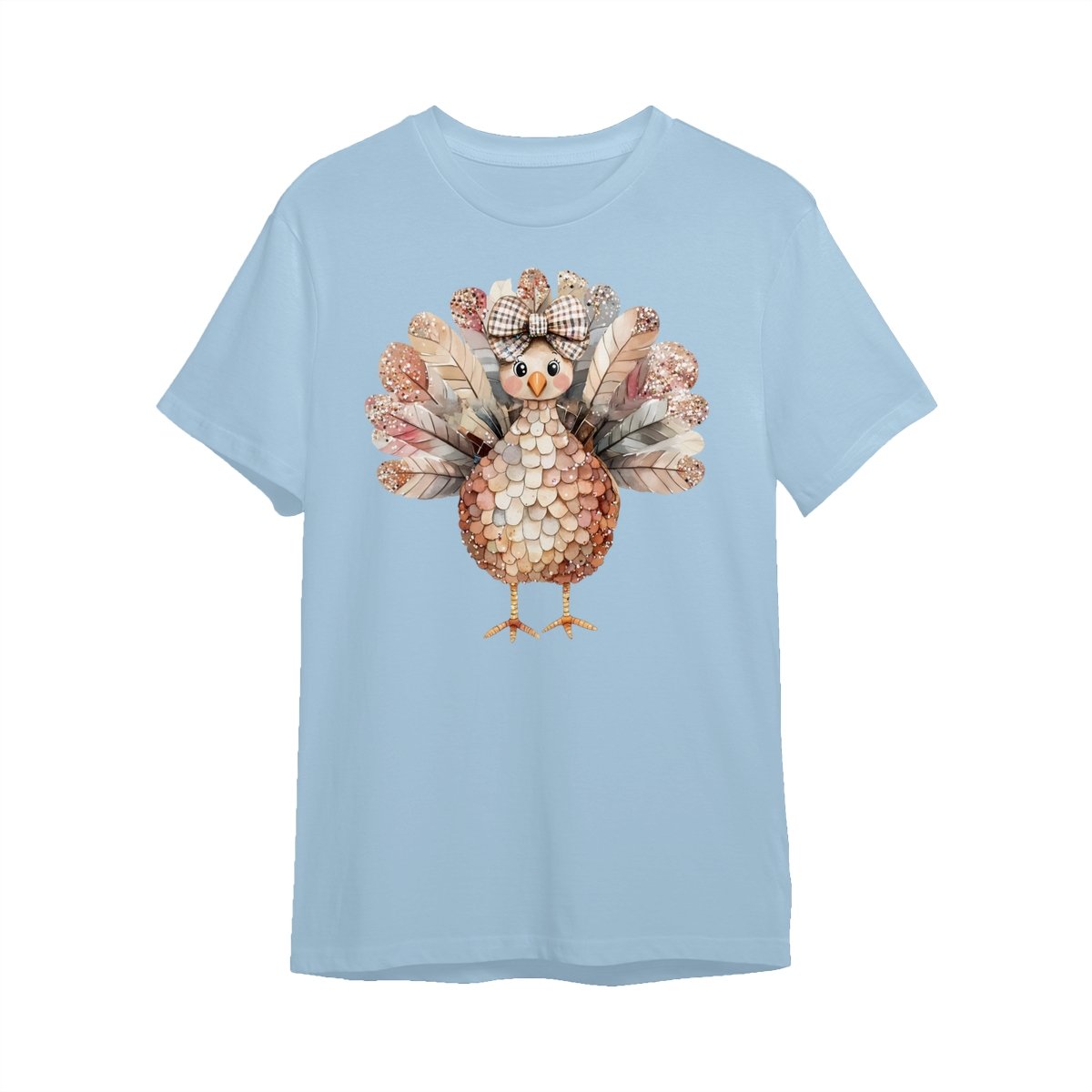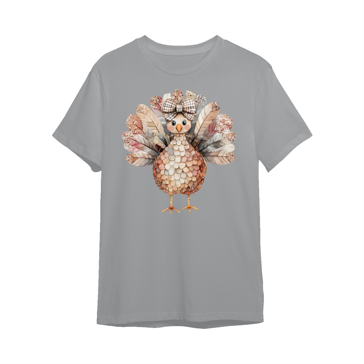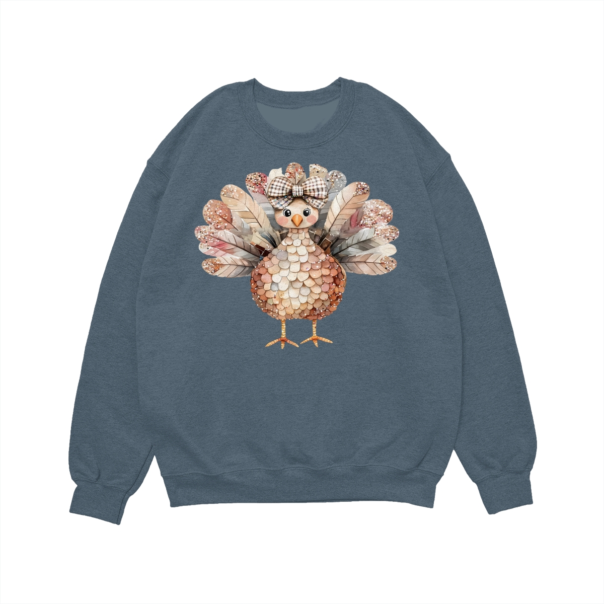 Colorful Coquette Turkey Shirt, Glitter Bow Cotton Women’s Pullover, Thanksgiving Fall Style, Cute Girly Autumn Gift, Soft Women’s Crewneck, Made in USA