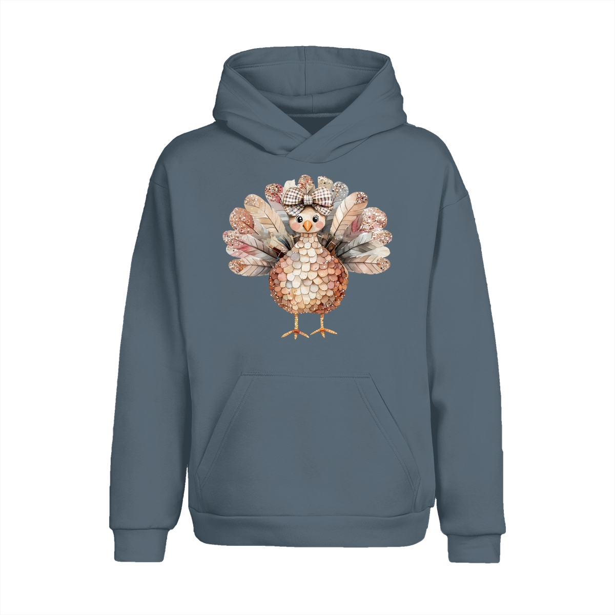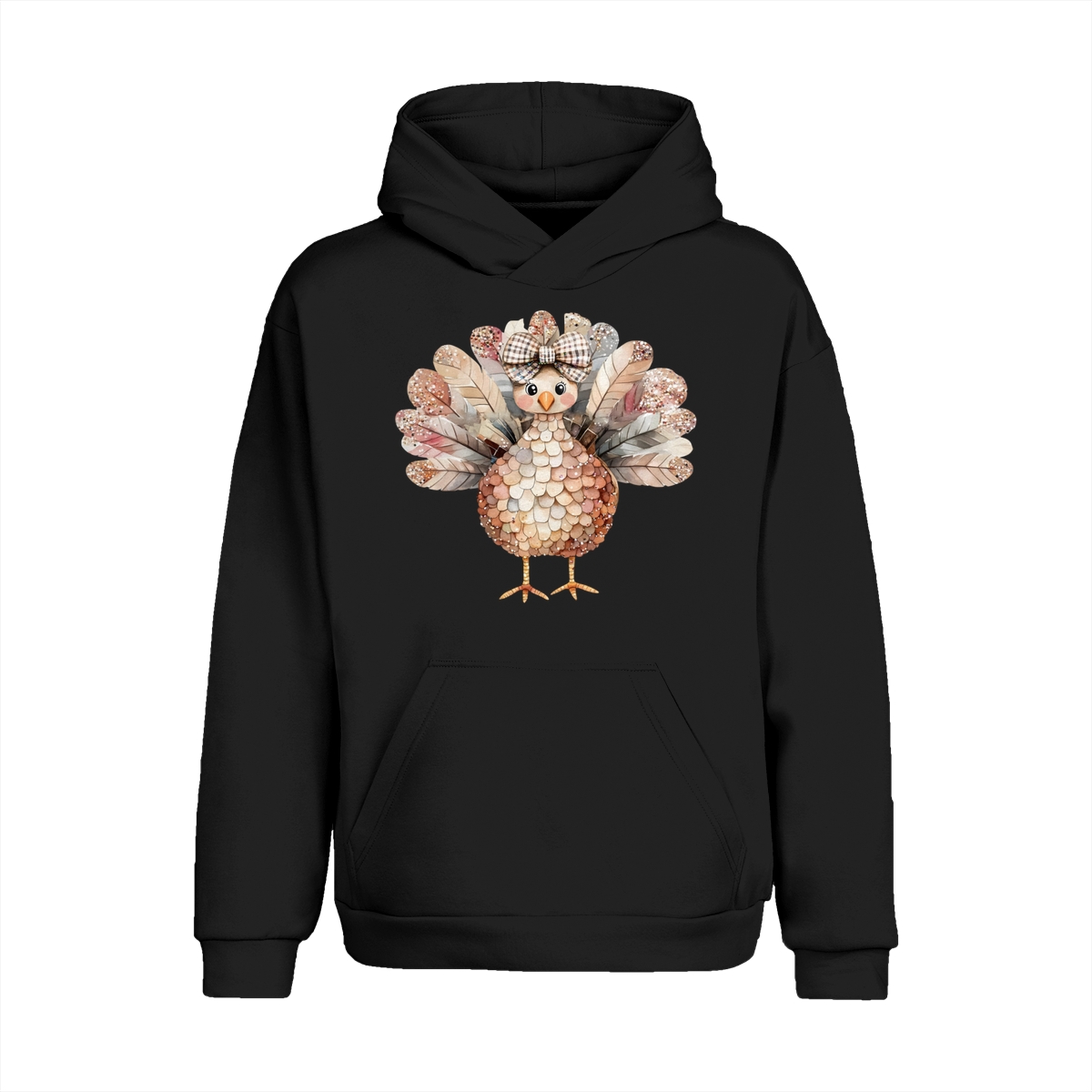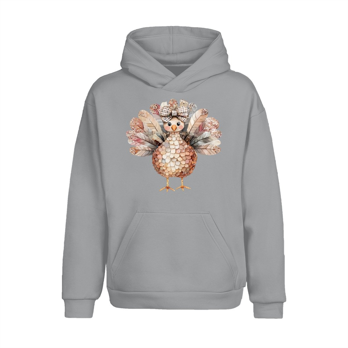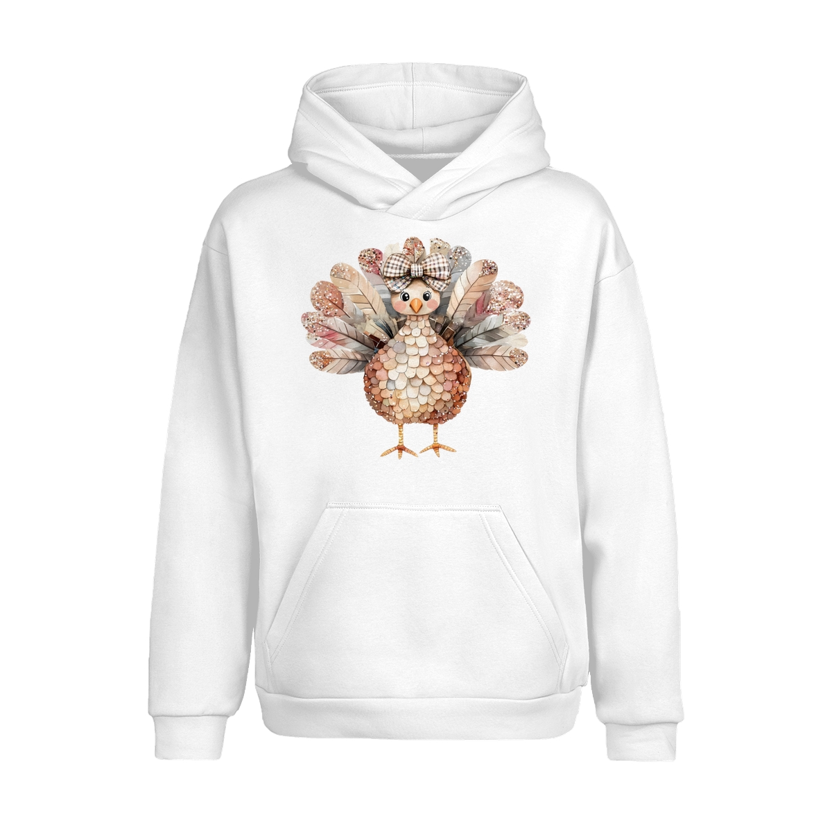 Colorful Coquette Turkey Shirt, Glitter Bow Cotton Women’s Pullover, Thanksgiving Fall Style, Cute Girly Autumn Gift, Soft Women’s Crewneck, Made in USA