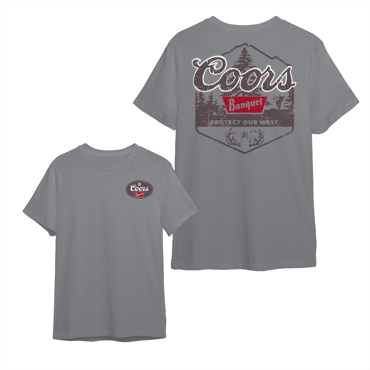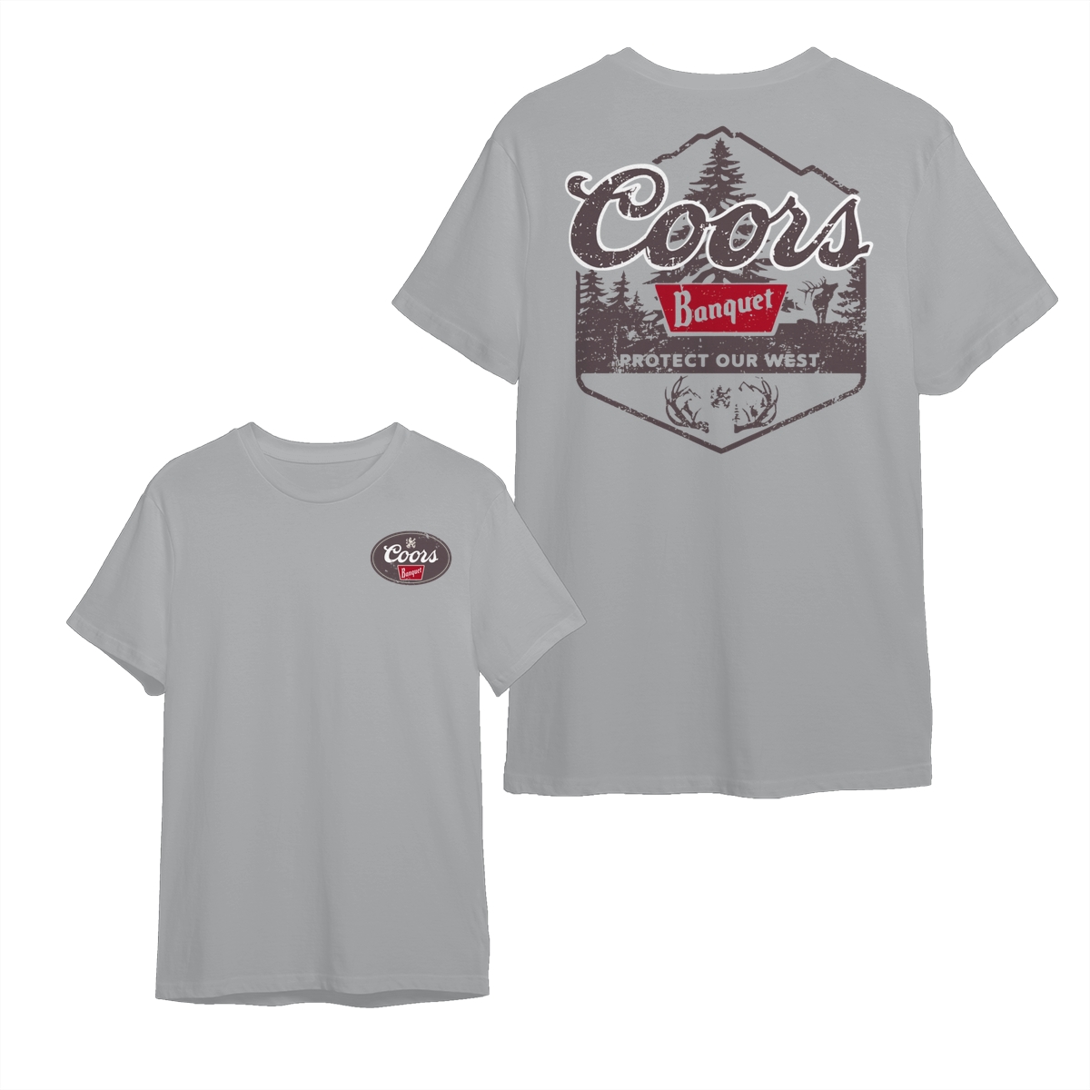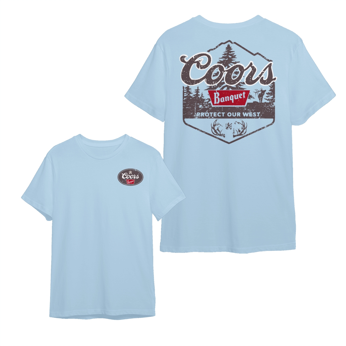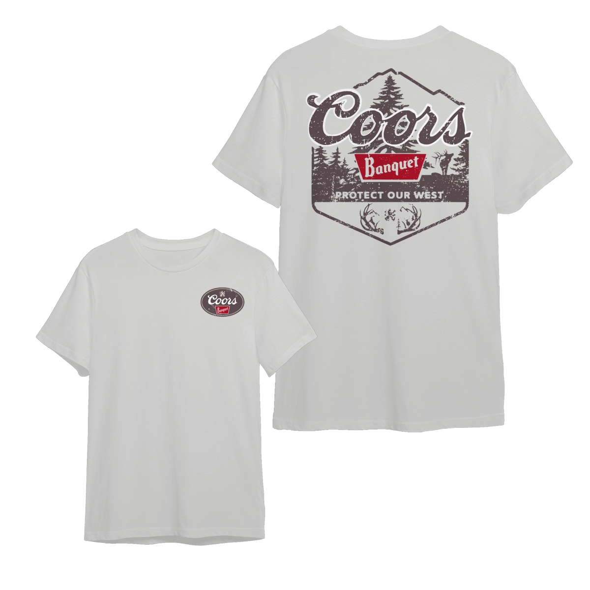 Coors Banquet Shirt – Protect Our West Graphic with Rustic Woods, Red Logo Patch and Wildlife Design for Beer Lovers Tops