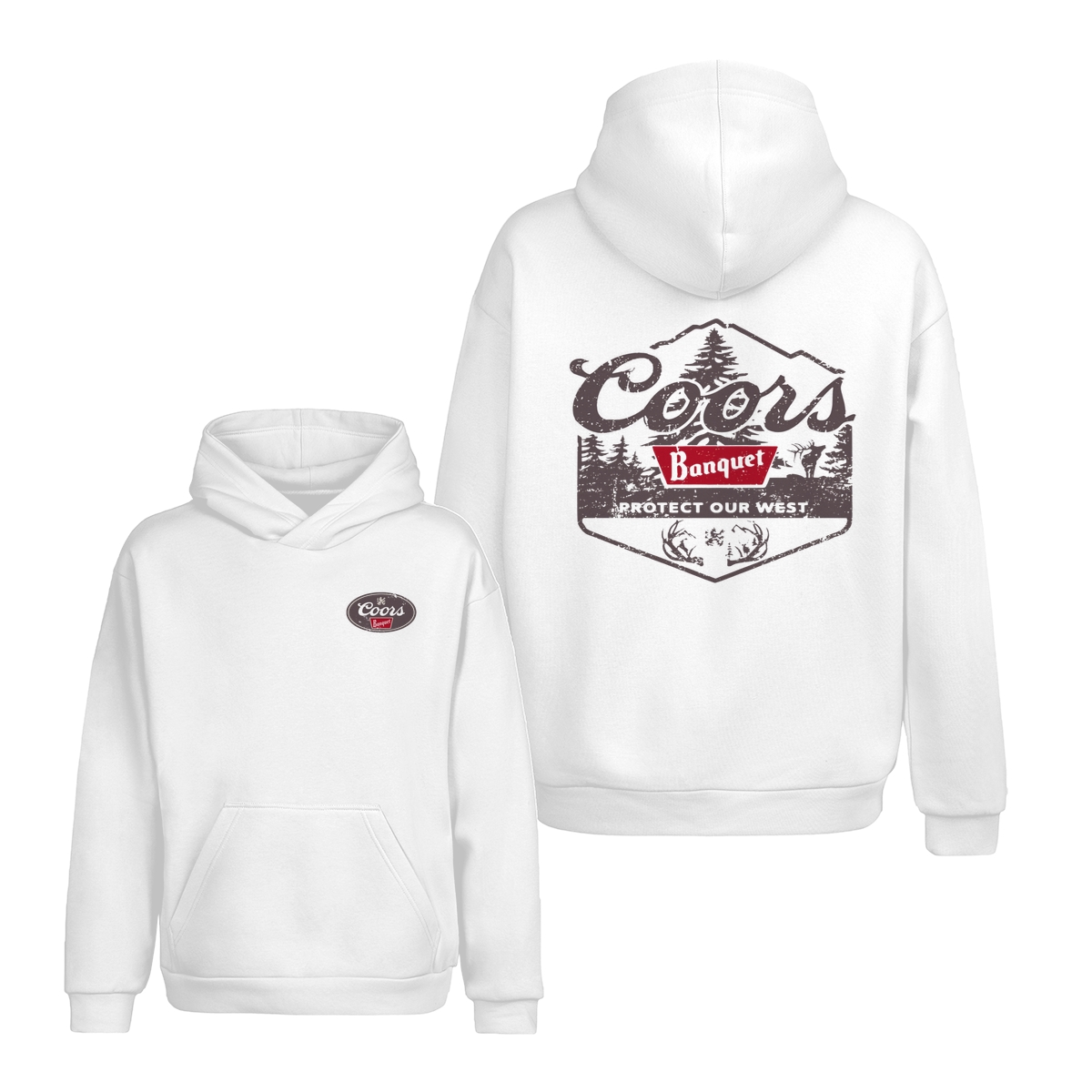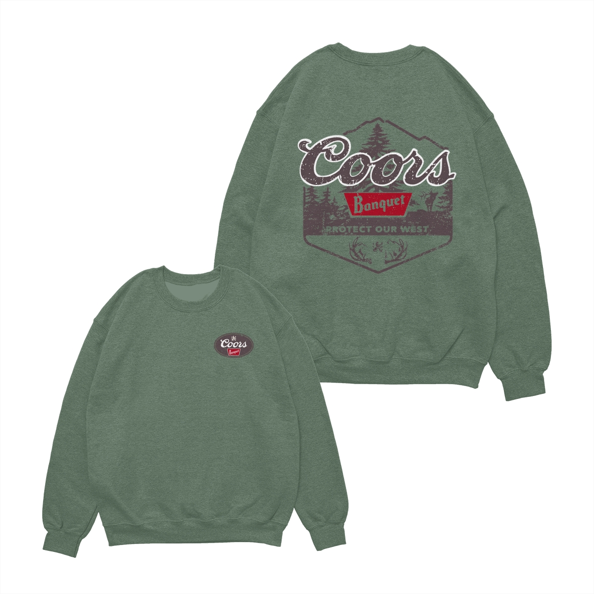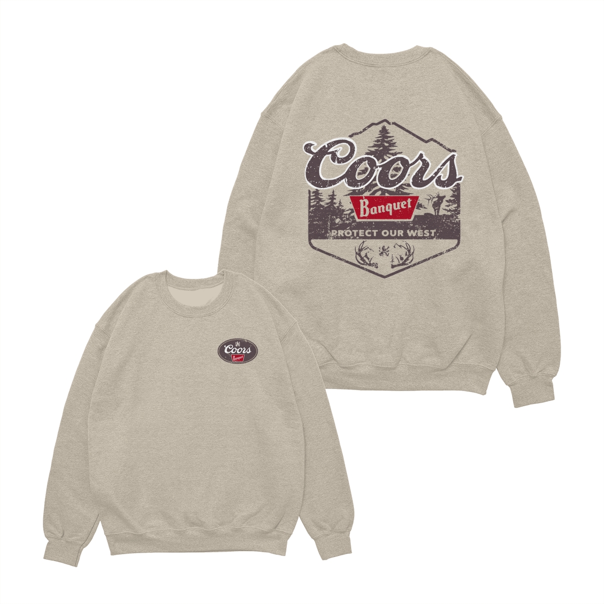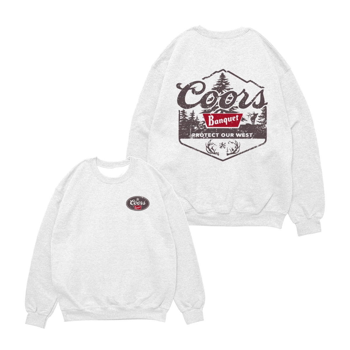 Coors Banquet Shirt – Protect Our West Graphic with Rustic Woods, Red Logo Patch and Wildlife Design for Beer Lovers Tops