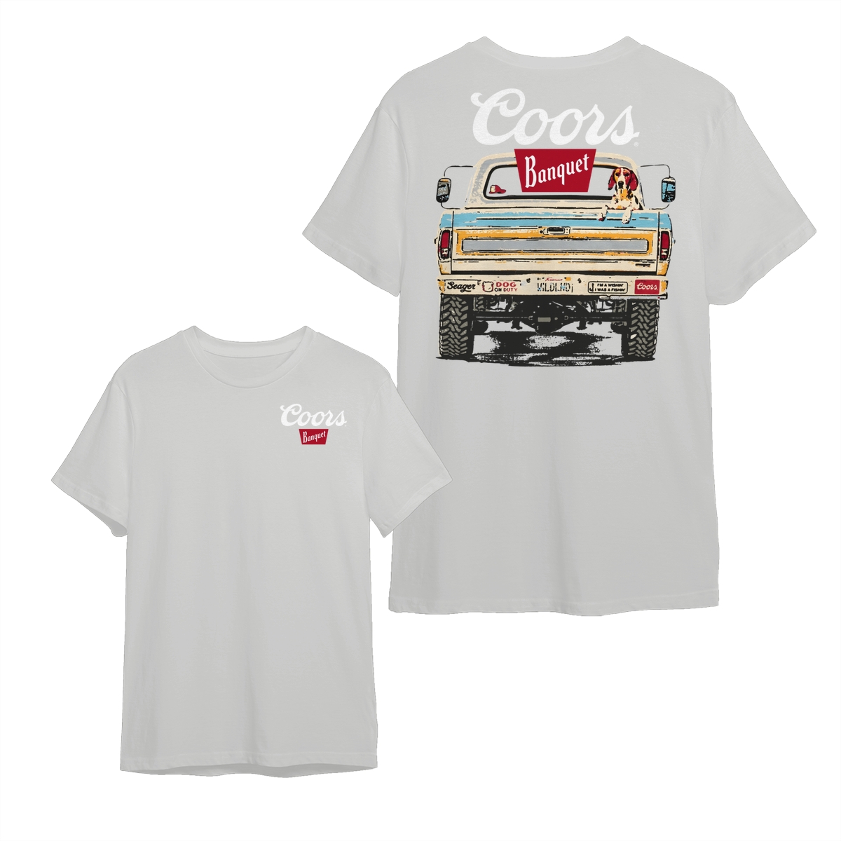 Coors Banquet Truck Graphic T-Shirt, Truck With Dogs Beer T-Shirt For Men, Gilf For Men