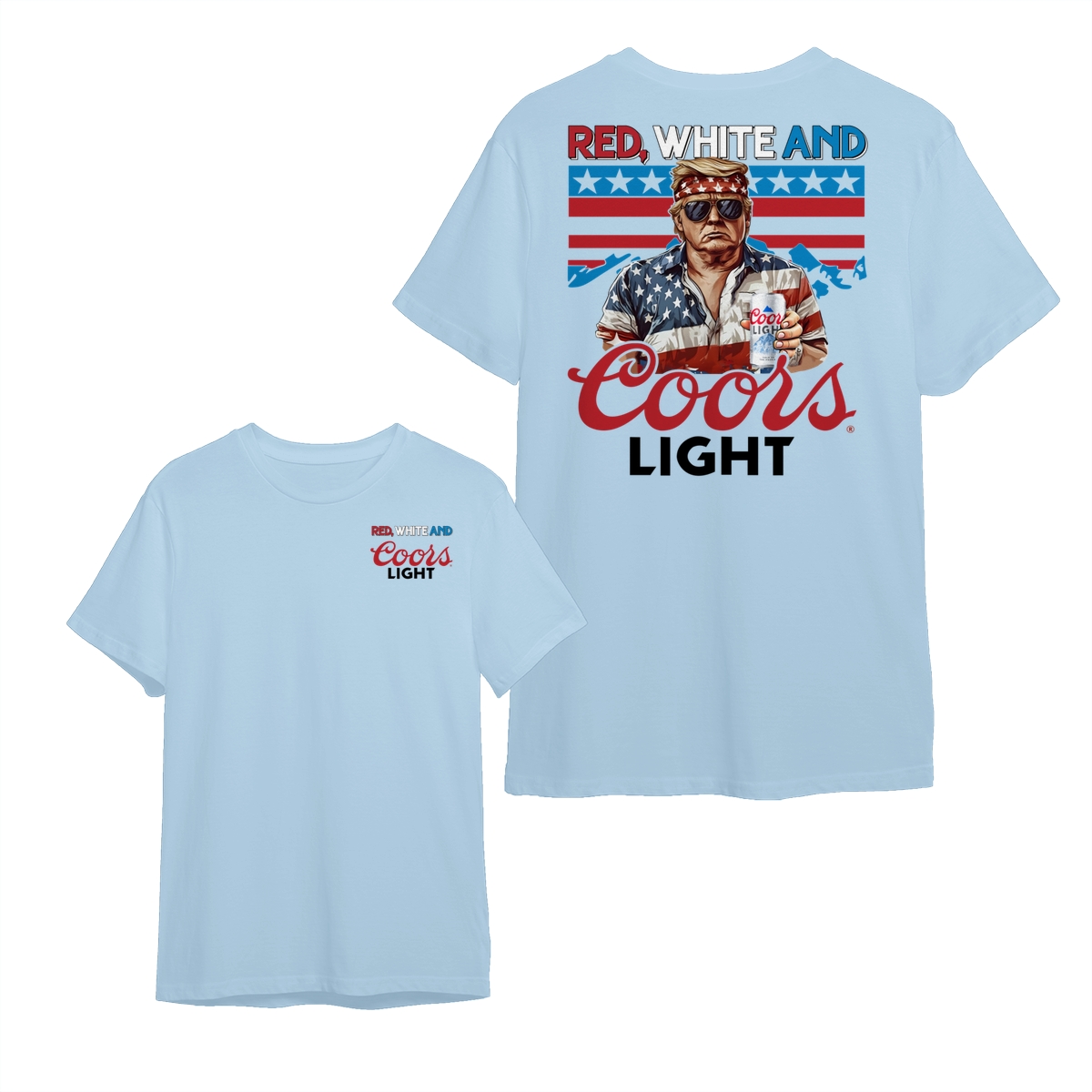 Coors-Light T-Shirt, Red White and Beer Graphic, American Flag Shirt, Casual Cotton Top Gifts For Men and Beer Lovers