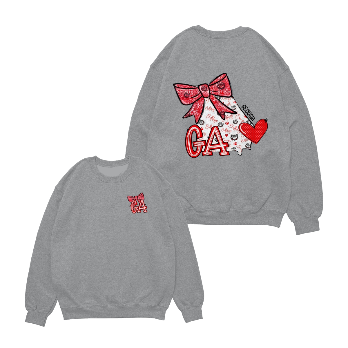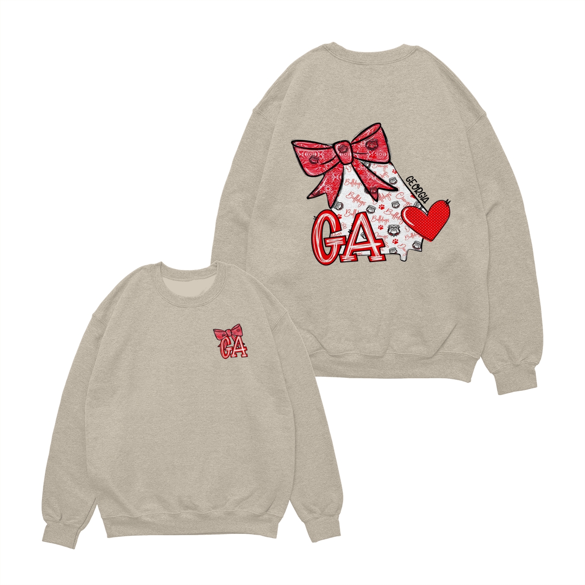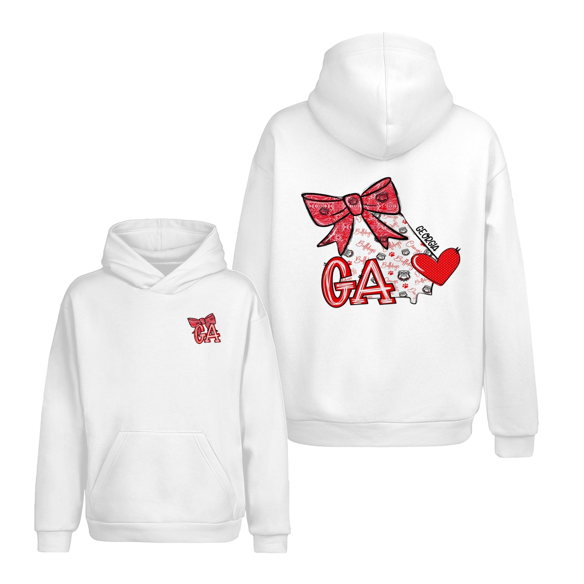 Coquette Bow Georgia Bulldogs State Roll Tide Football Sweatshirt Hoodie Unisex Casual Crewneck Tops, Full Size, Full Color, Cotton