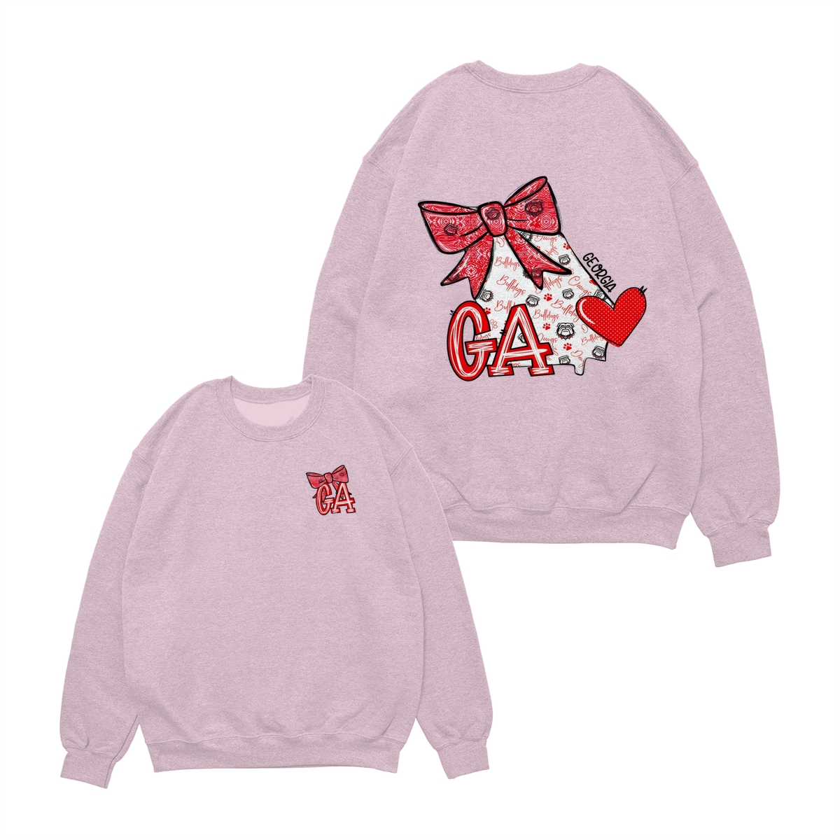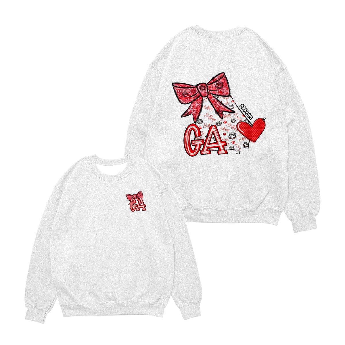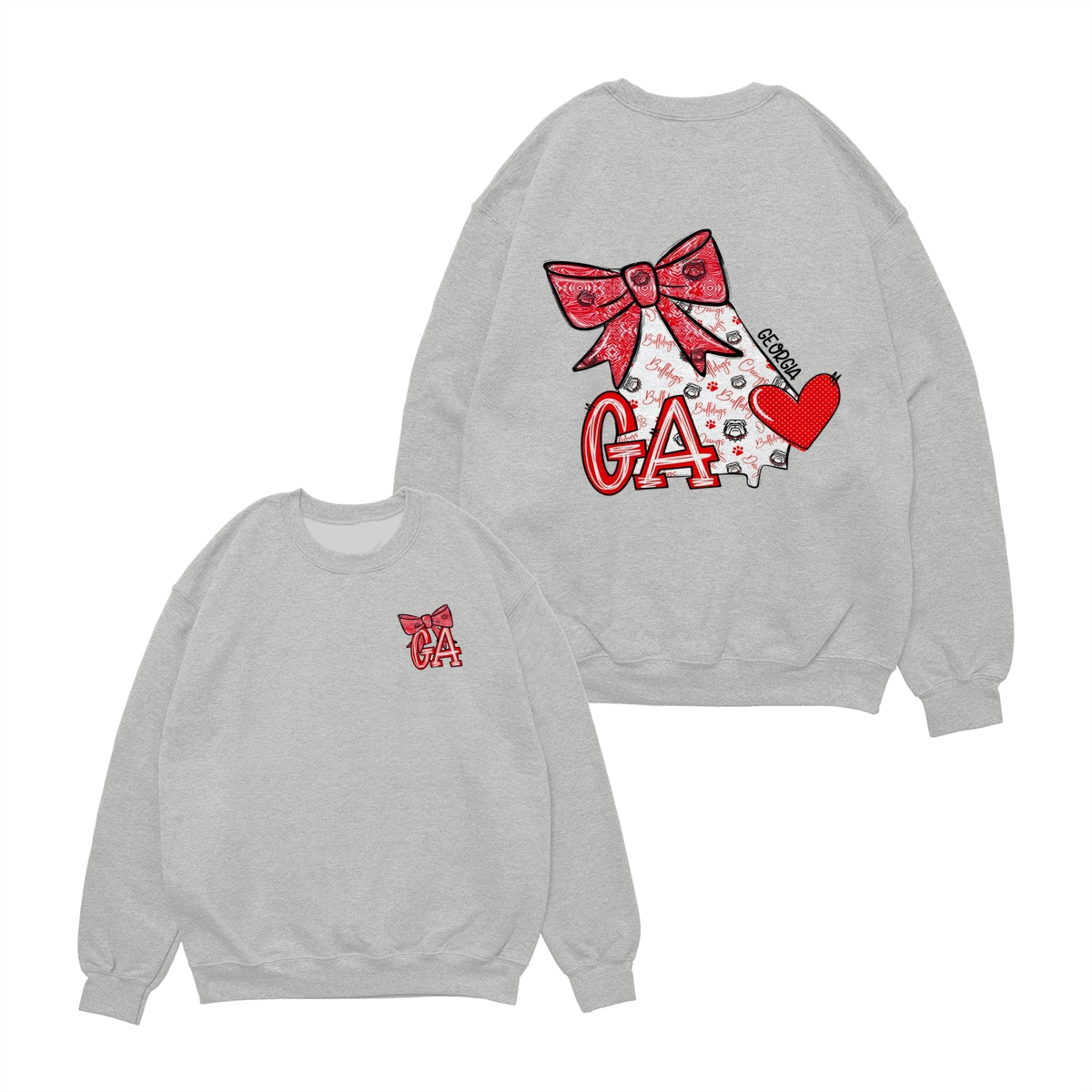 Coquette Bow Georgia Bulldogs State Roll Tide Football Sweatshirt Hoodie Unisex Casual Crewneck Tops, Full Size, Full Color, Cotton