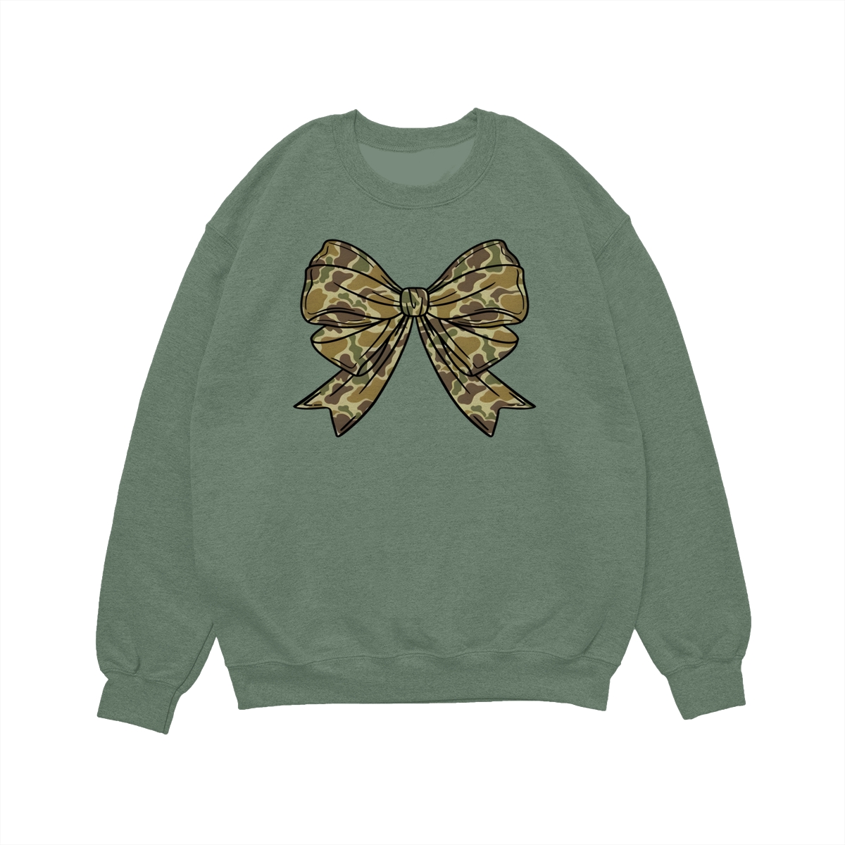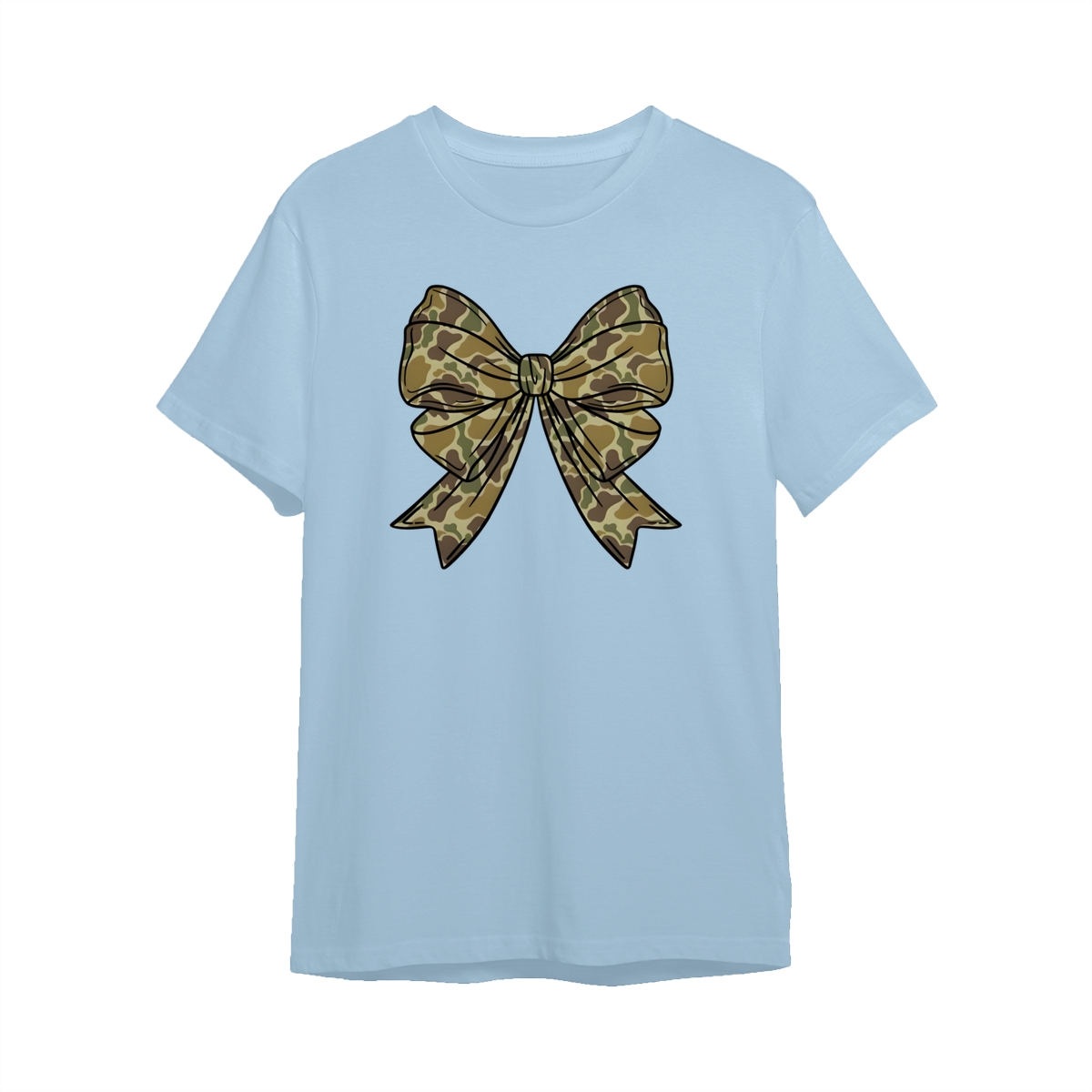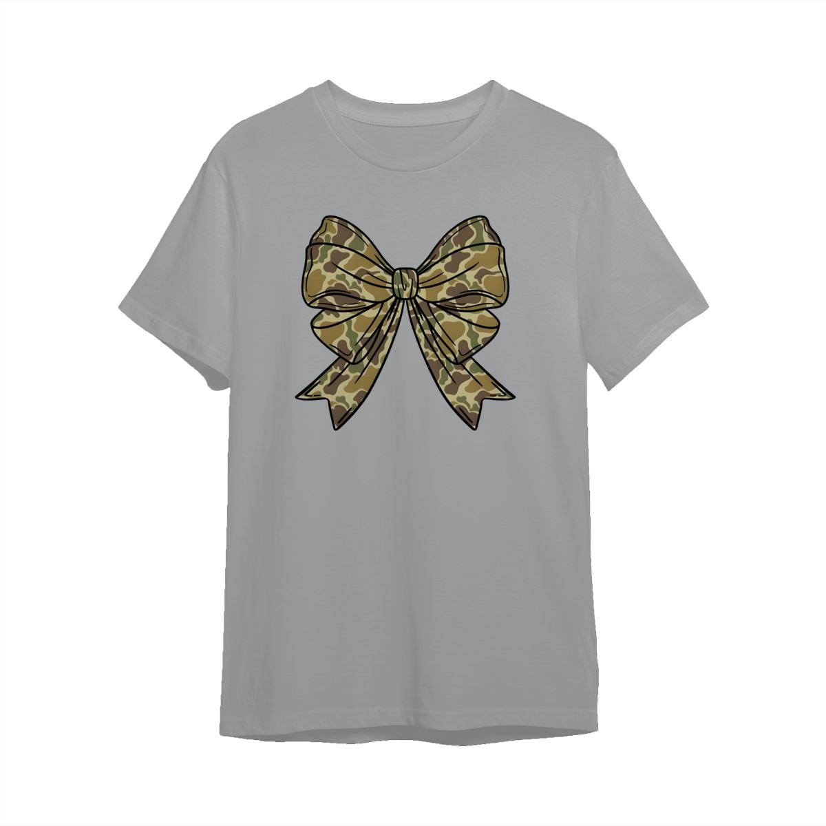 Coquette Old Camo Bow T-Shirt, Women’s Hunting Tee, Wife Hunting Shirt, Dove Hunting Duck Hunting Shirt for Women Cotton T-Shirt Comfy Back To School Casual Top Womenswear