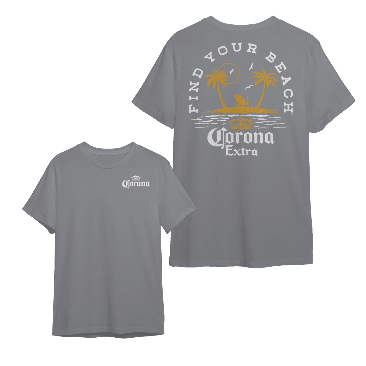 Corona Extra Find Your Beach Tee – Black Cotton Graphic T-Shirt with Tropical Island Sunset Design for Beach Days & Chill Mode, tiktok shop store, Unisex Casual Wear Top Menswear