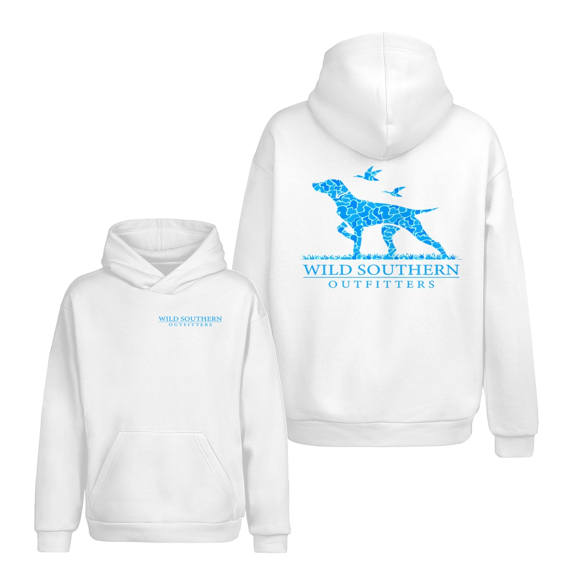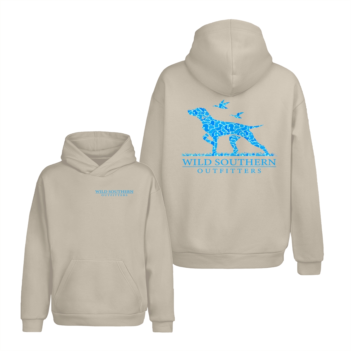 Country Hoodie – Wild Southern Dog Design with Ducks Flying, Outdoor Graphic Hoodie for Rural & Hunting Lifestyle