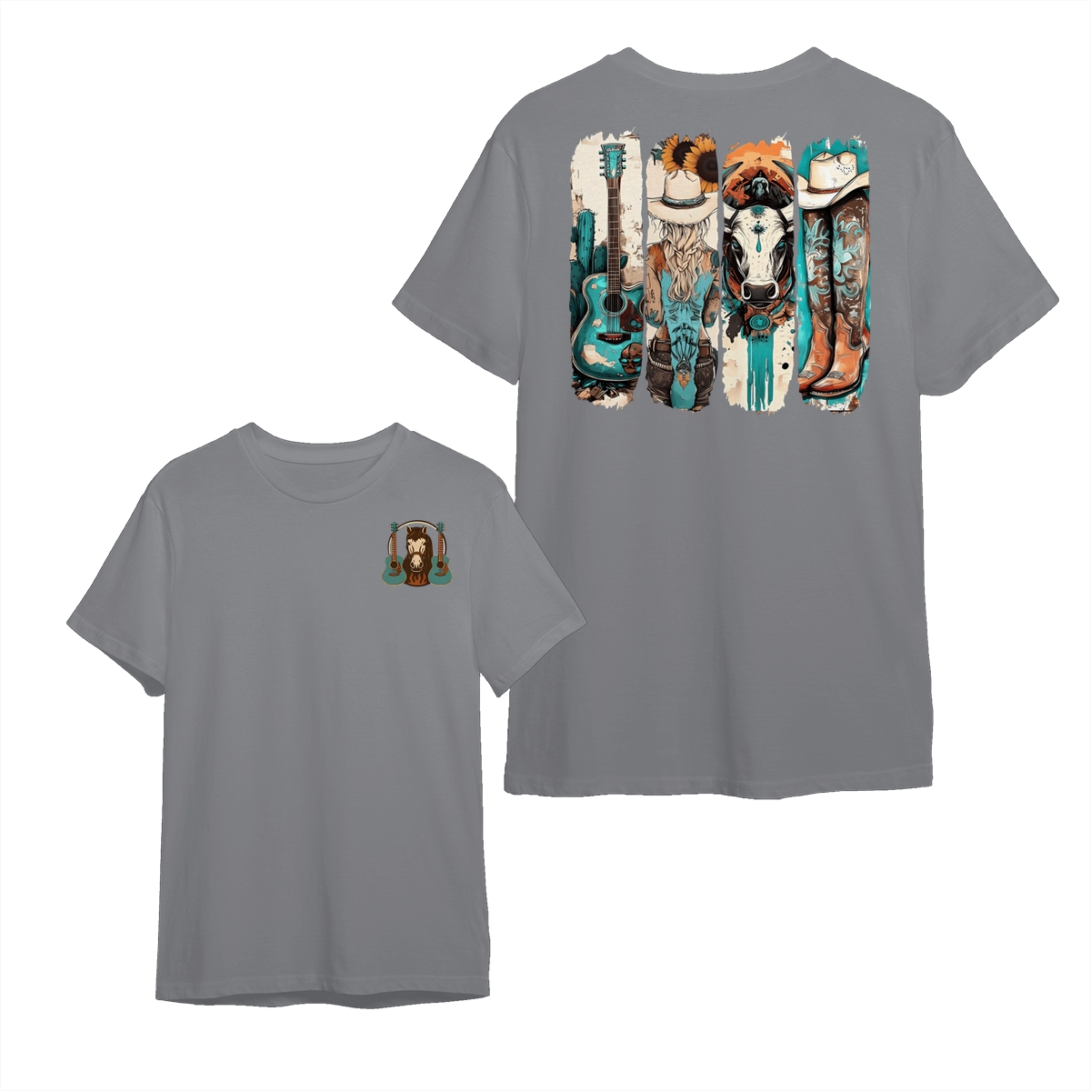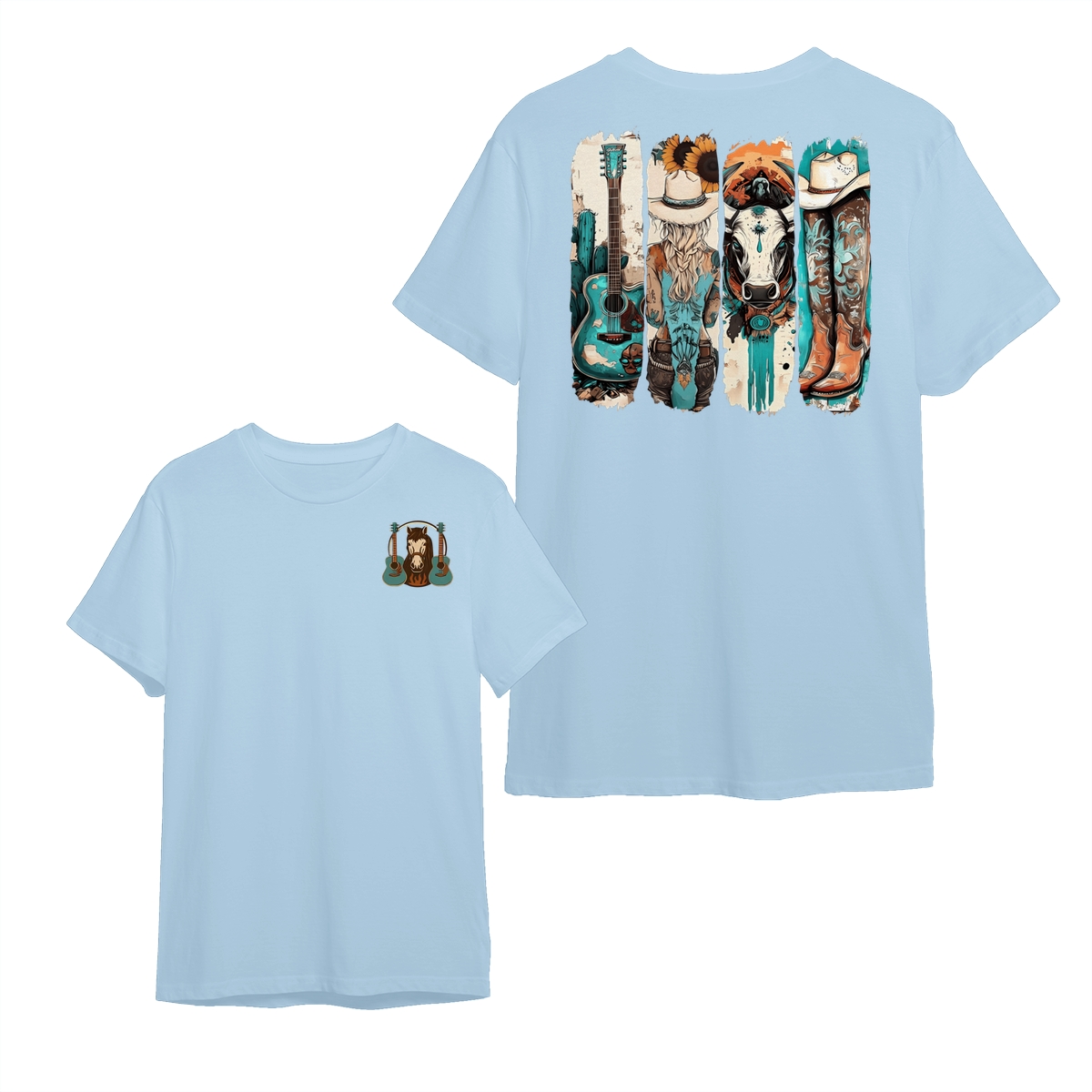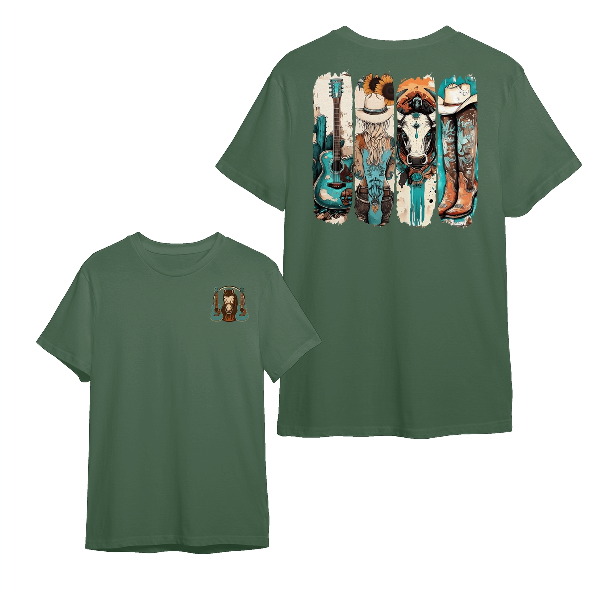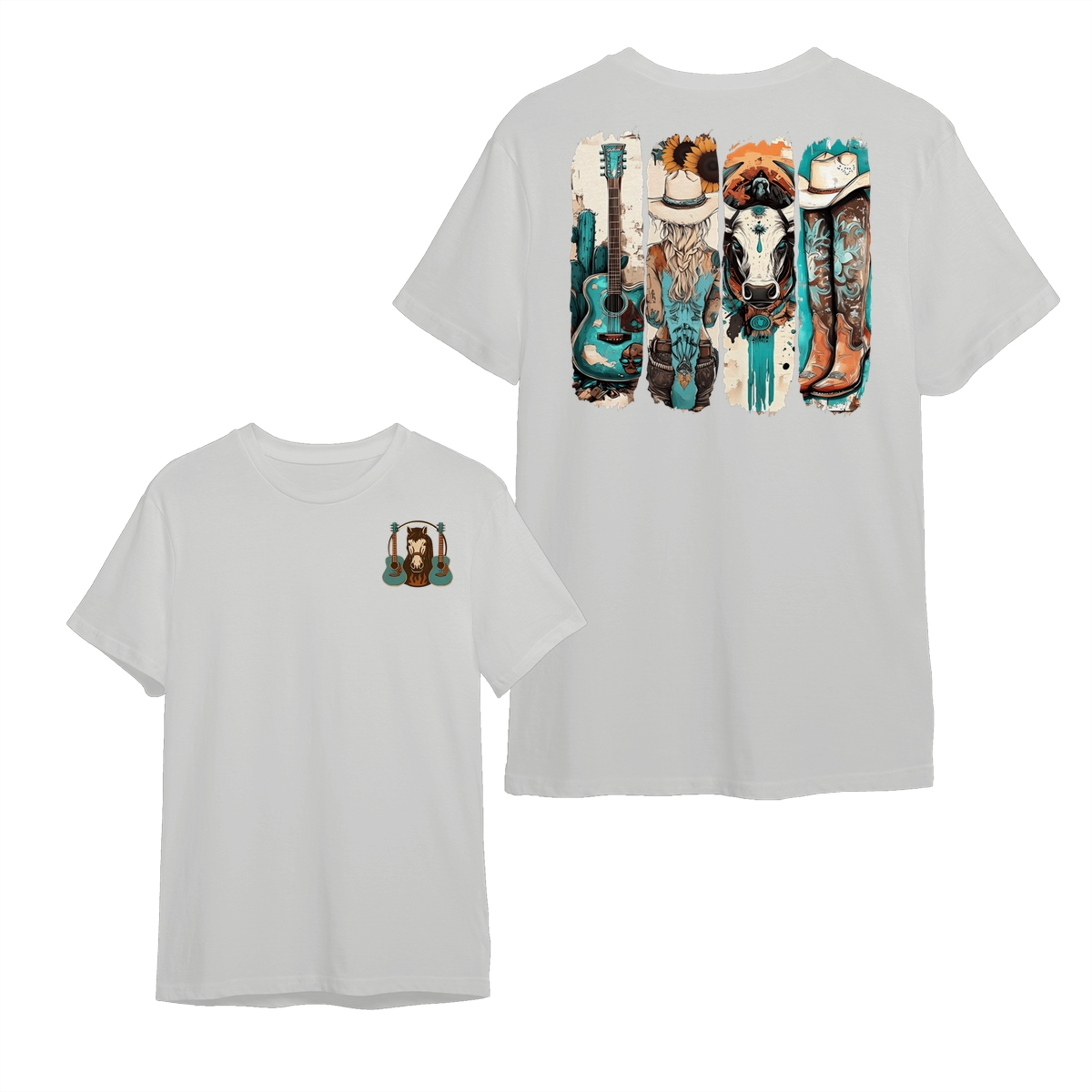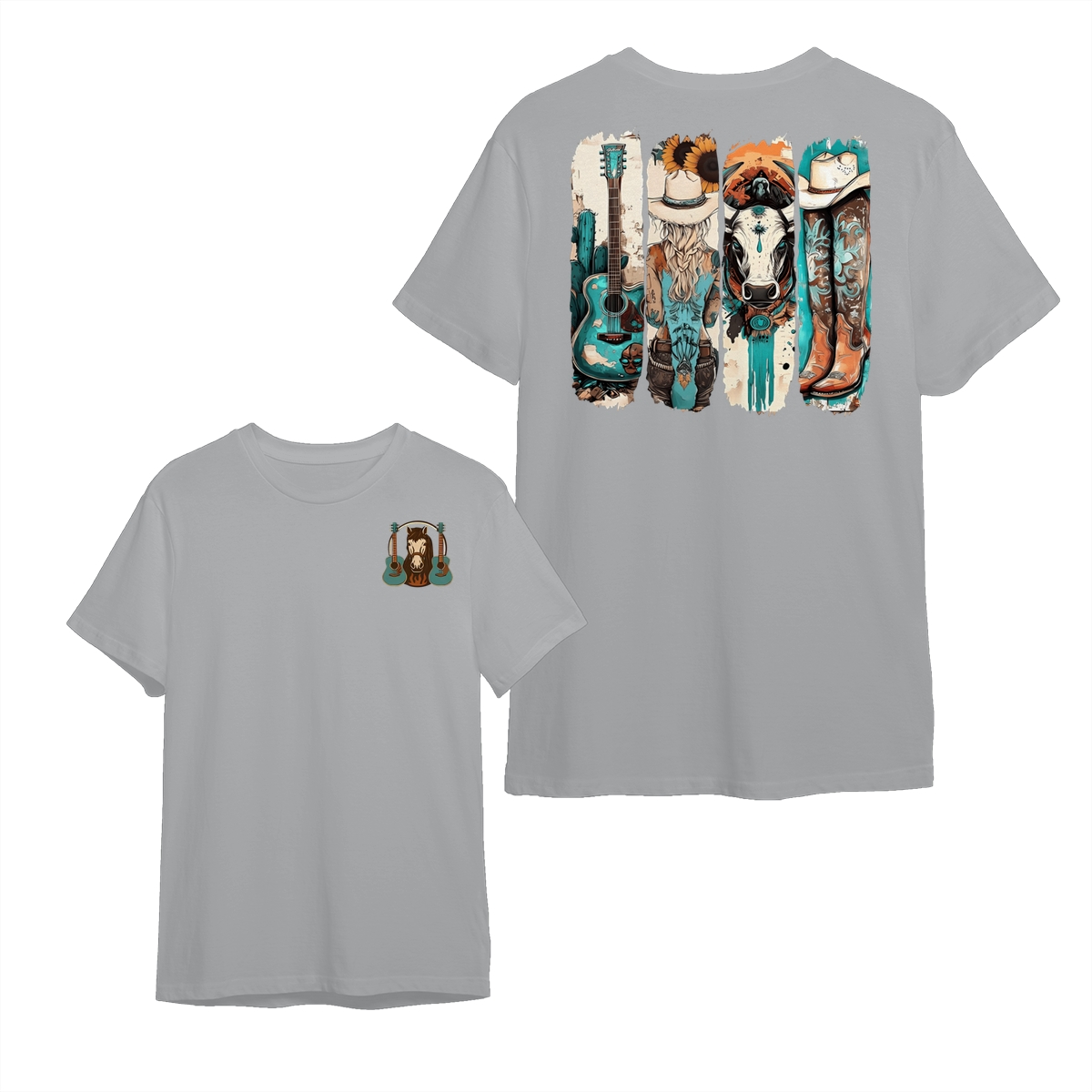 Country Soul in Every Thread – Western Hoodie with Cowgirl Hat, Horse, Boots & Turquoise Guitar Print – Perfect for Rodeo & Music Lovers
