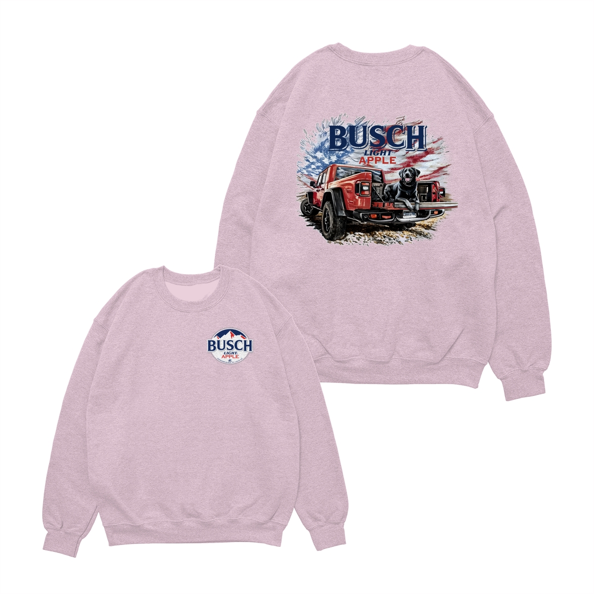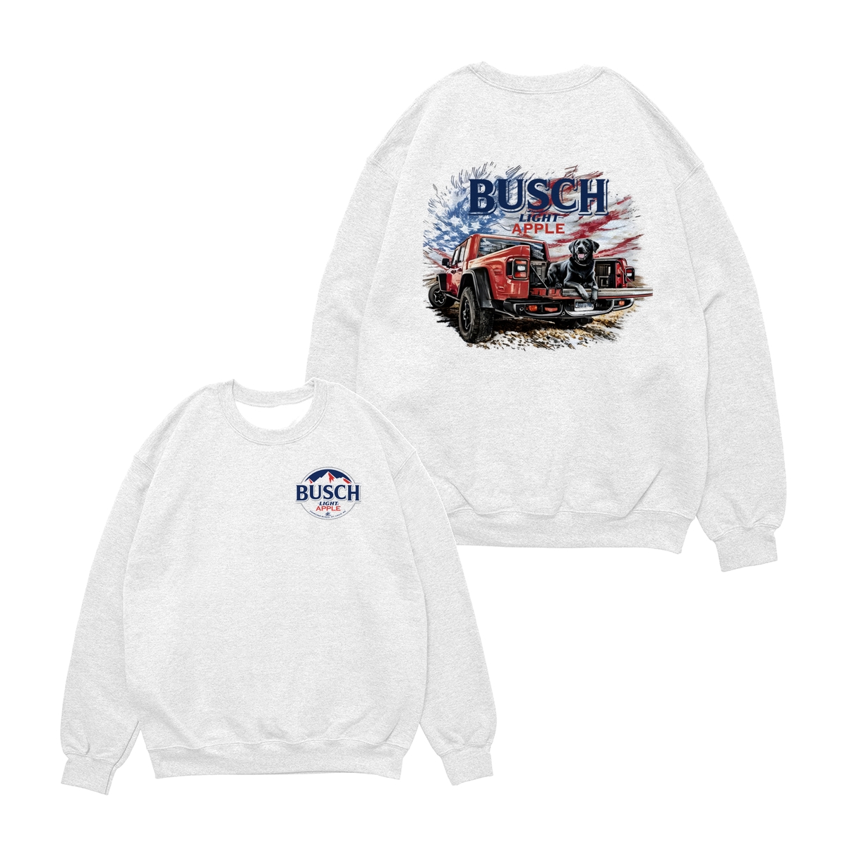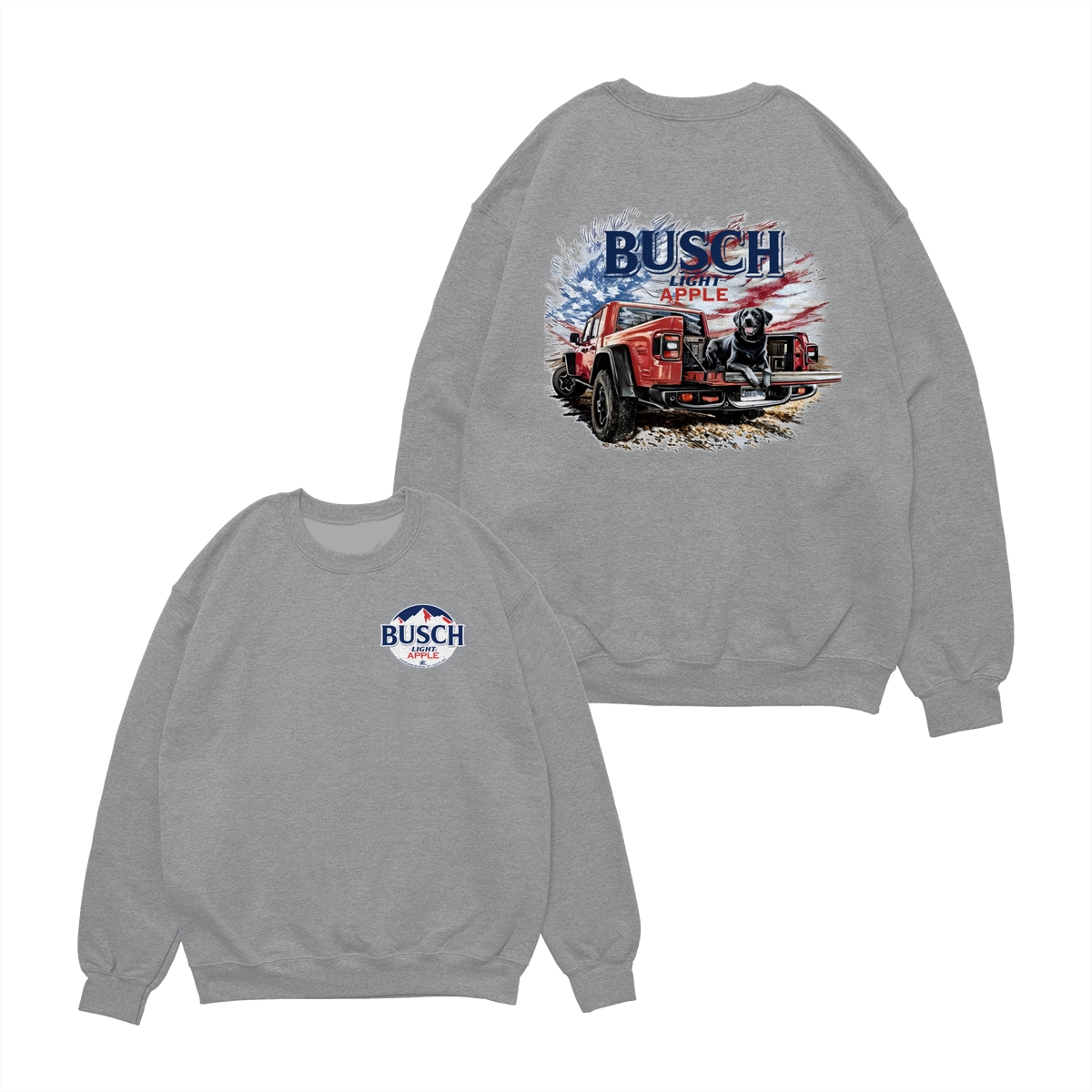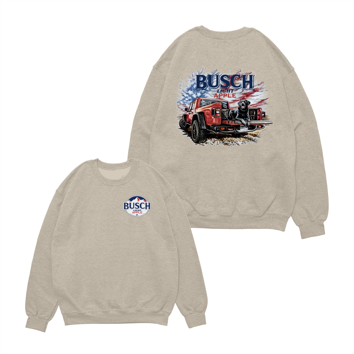 Country Style Hoodie for Hunters – Busch Light Print with Dog & Truck, Perfect for American Outdoorsmen & Beer Fans