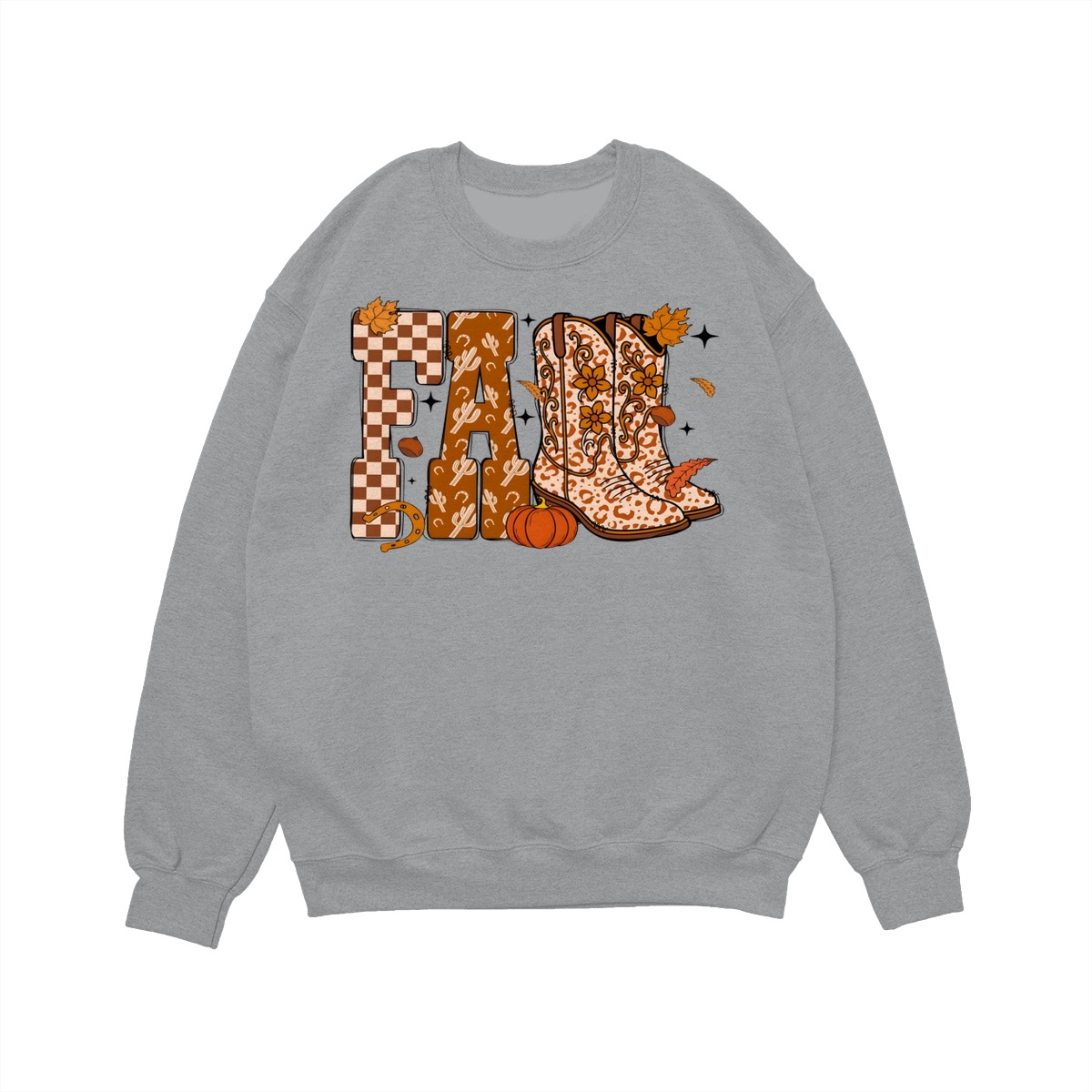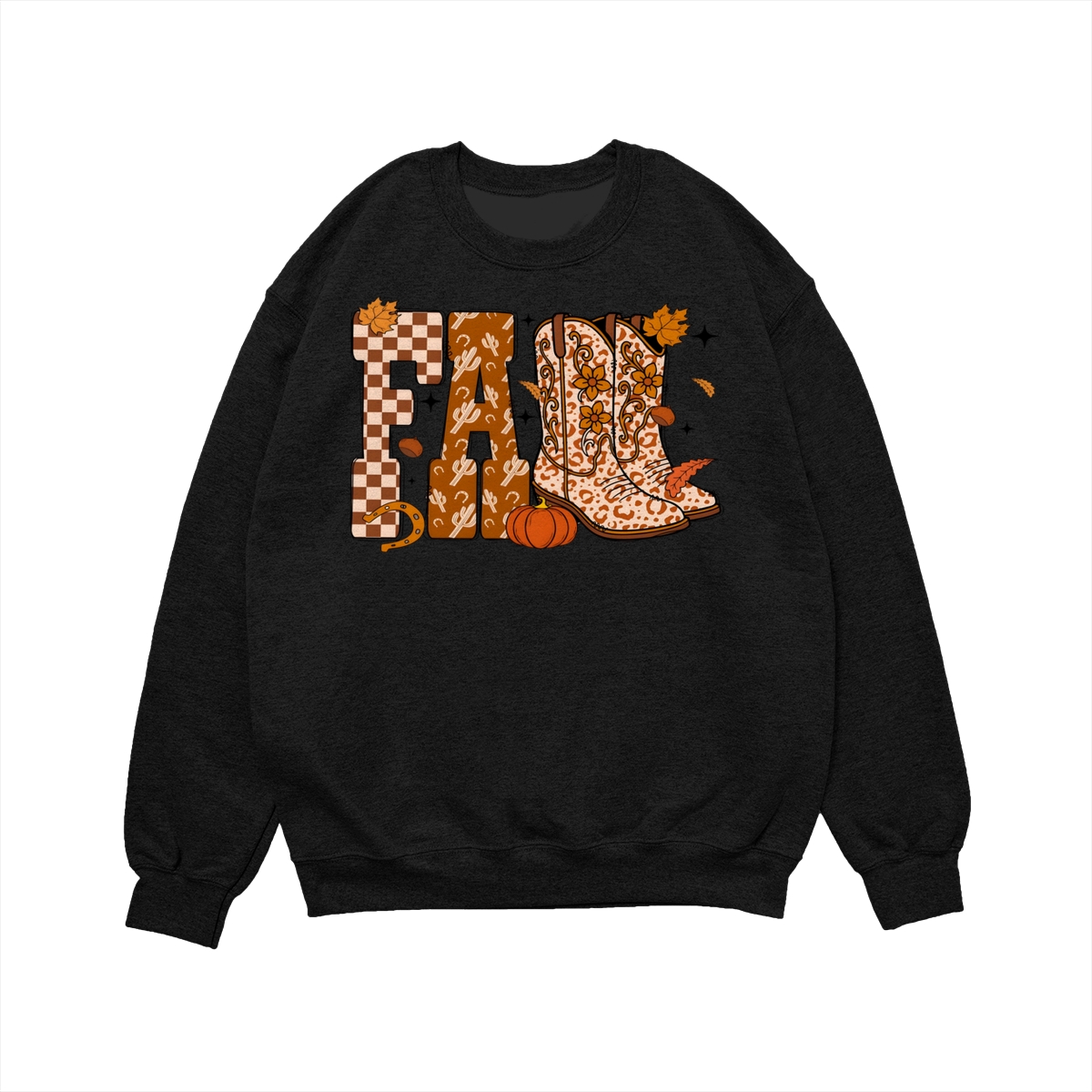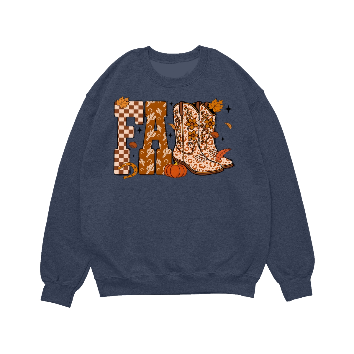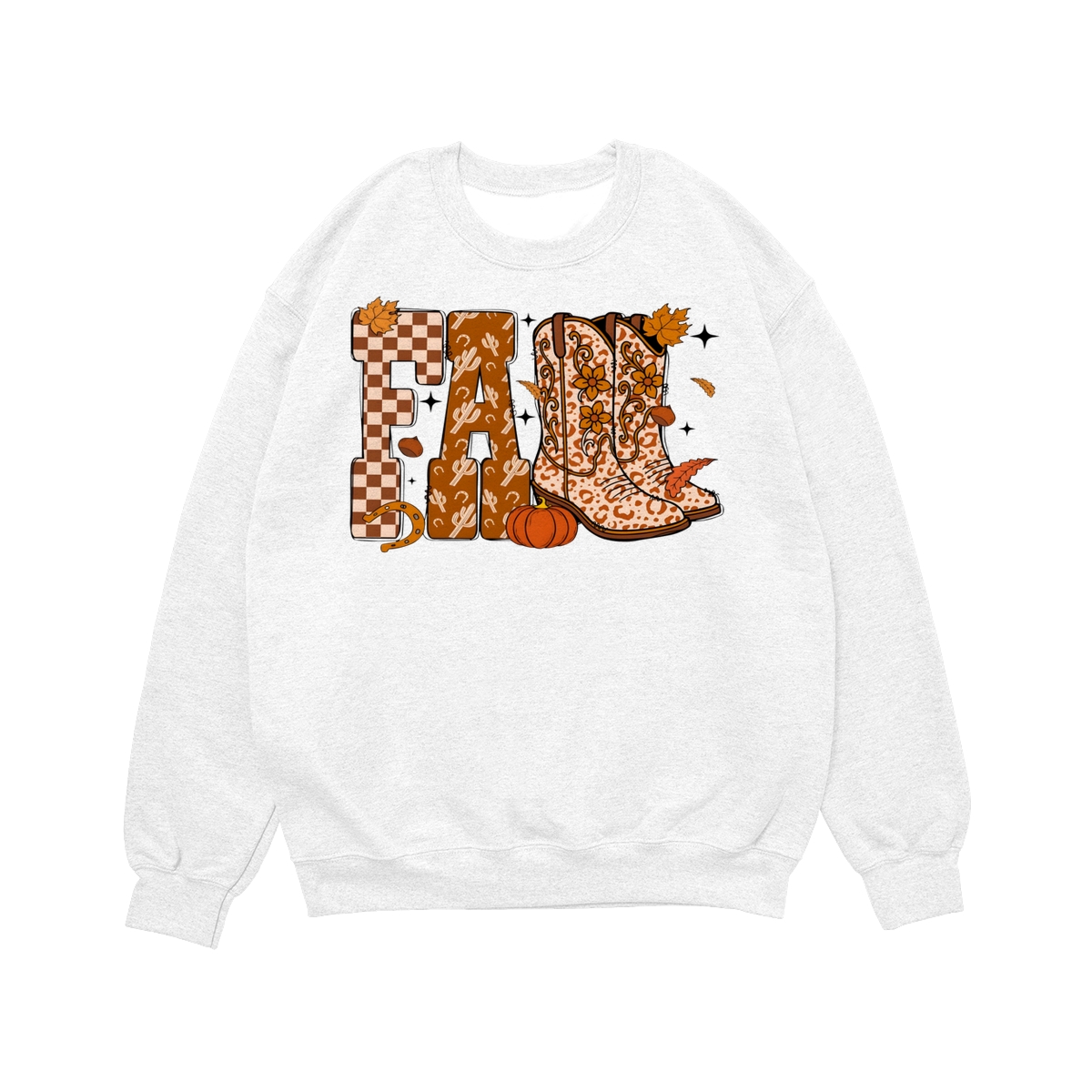 Cowboy Checkered Fall Pumpkin, Howdy Autumn Shirt Design, Cowboy Boots Cow, Western Halloween Ghost Apparel 100% Cotton Digital Print Casual Unisex Sweatshirt Made in USA