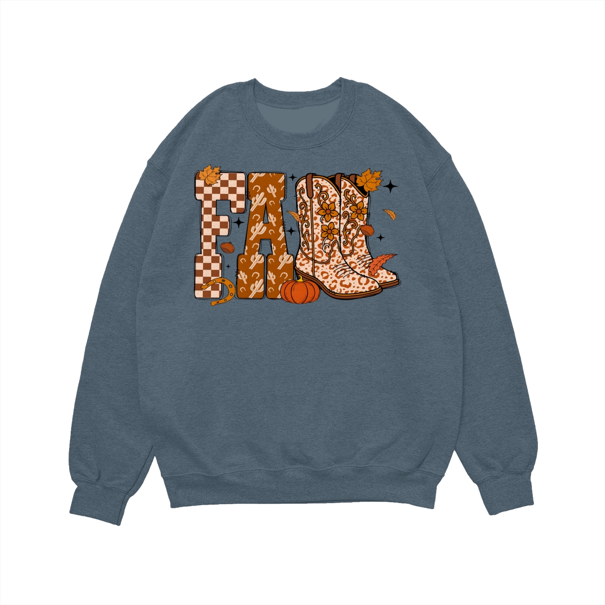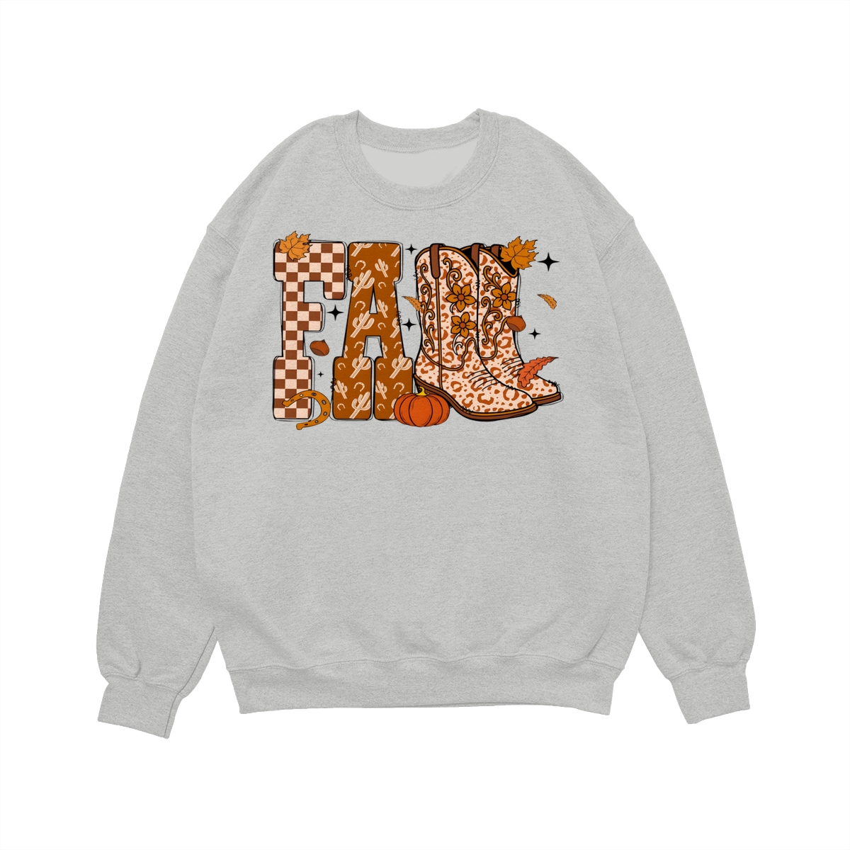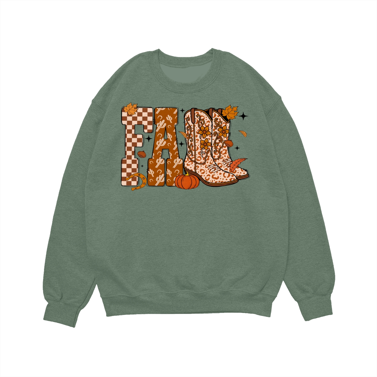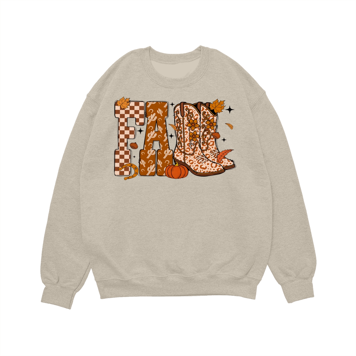 Cowboy Checkered Fall Pumpkin, Howdy Autumn Shirt Design, Cowboy Boots Cow, Western Halloween Ghost Apparel 100% Cotton Digital Print Casual Unisex Sweatshirt Made in USA