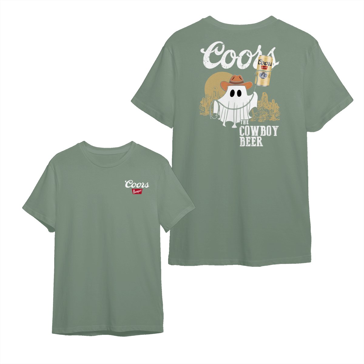 Cowboy Ghost Halloween T-Shirt, Funny Beer Can Rodeo Tee, Cute Ghost with Cowboy Hat Graphic Shirt, Fall Drinking Party Top for Men and Women