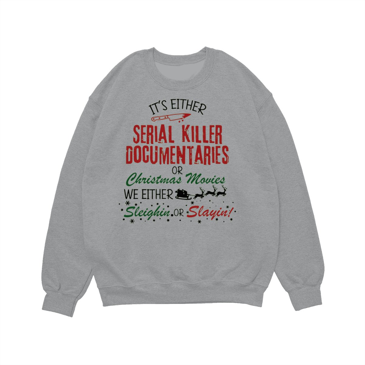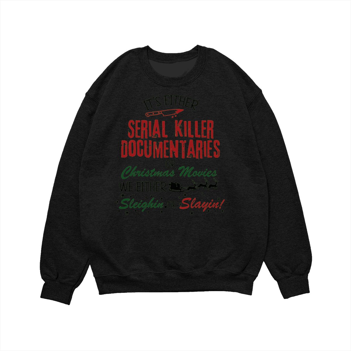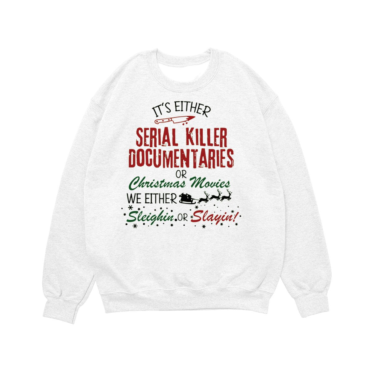 Crime Documentaries Sweatshirt, Horror Christmas Funny Christmas Shirt, Slaying Or Sleighing, Christmas Movies Sweatshirt, Holiday Outfit