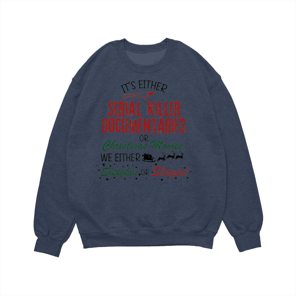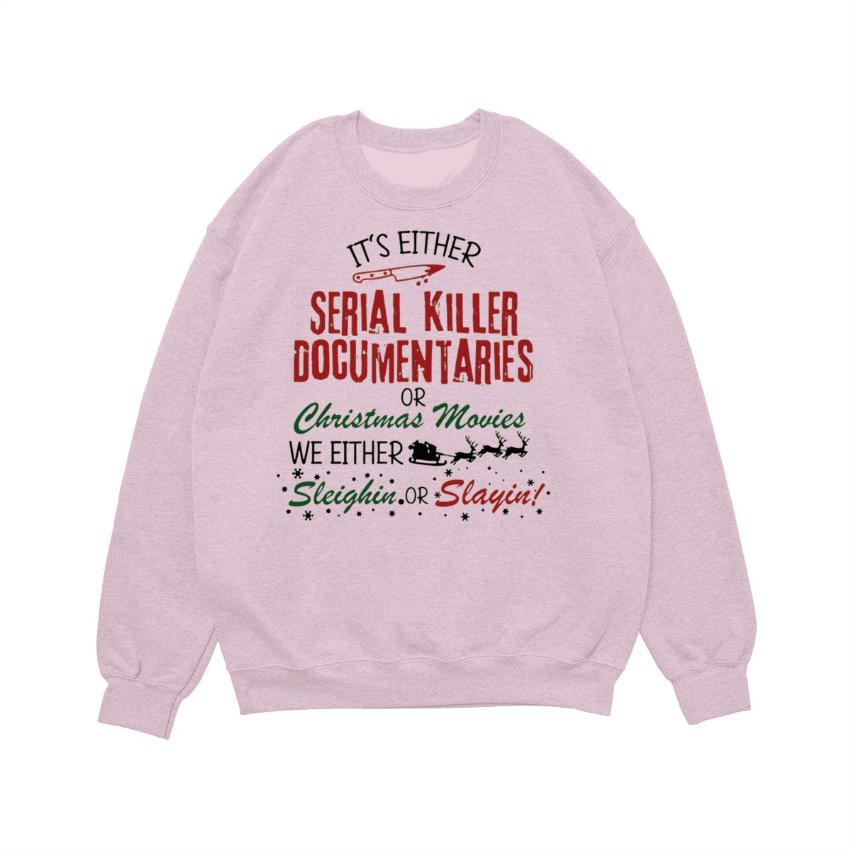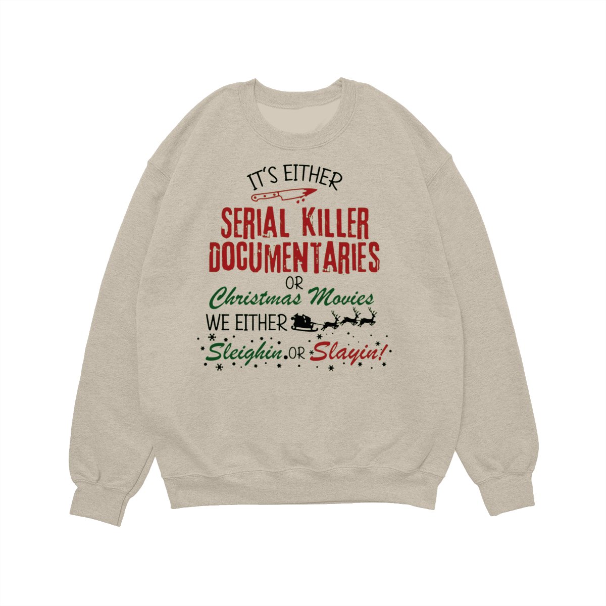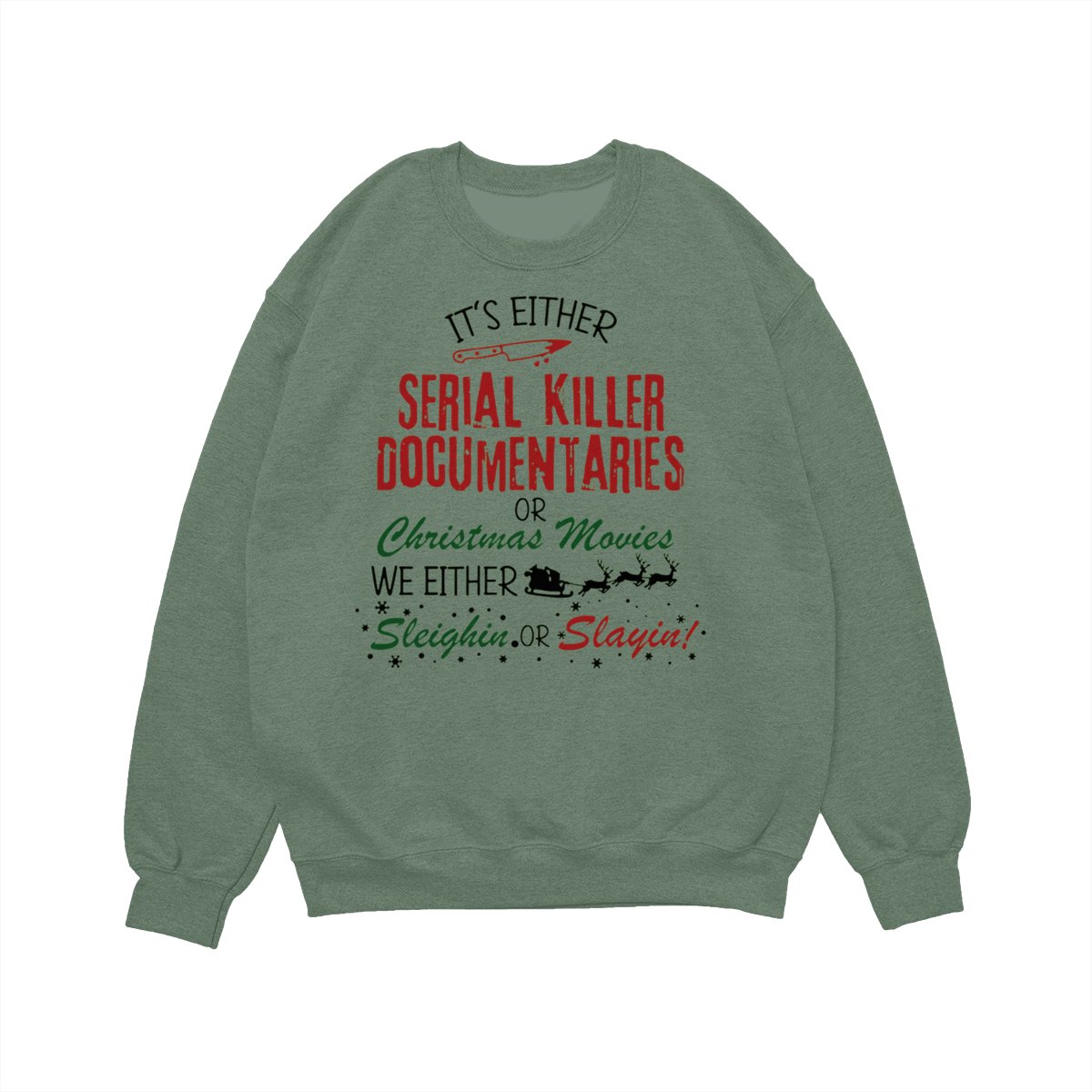 Crime Documentaries Sweatshirt, Horror Christmas Funny Christmas Shirt, Slaying Or Sleighing, Christmas Movies Sweatshirt, Holiday Outfit