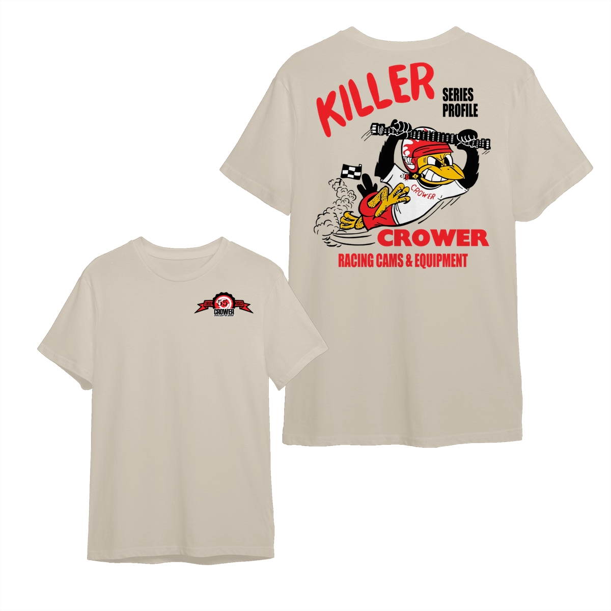 Crower Racing Cams T-Shirt, Killer Series Profile Cartoon Graphic, Crower Performance Cams & Equipment Graphic Shirt For Car Racers & Engine Builders Casual Cotton 100% Top for Men and Women