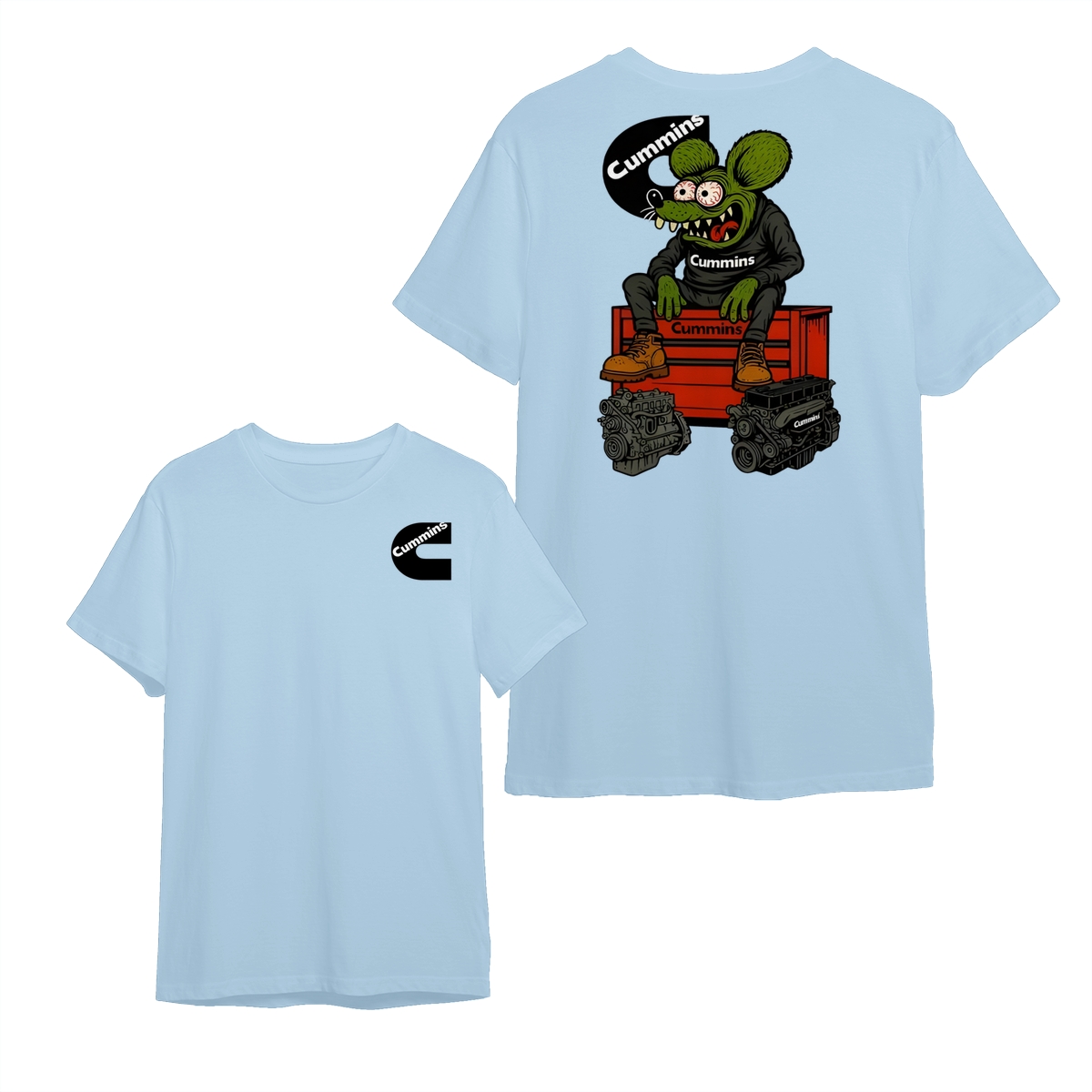 Cummins Rat Fink Style Shirt – Funny Diesel Truck Engine Graphic Tee for Mechanics, Gearheads, Cummins Fans & Custom Car Enthusiasts