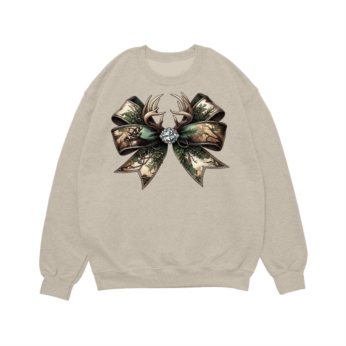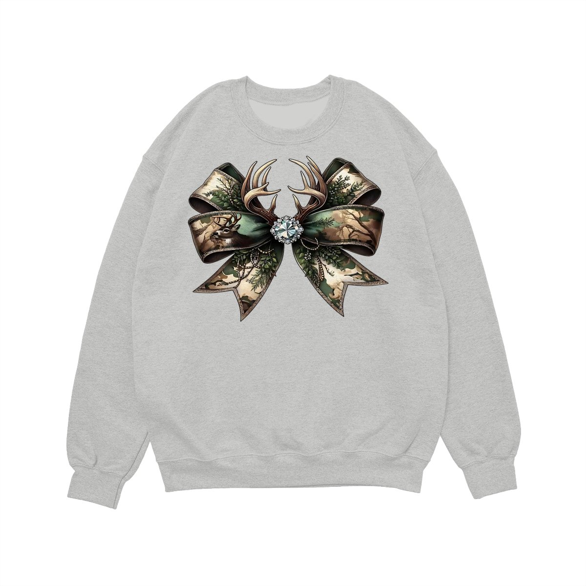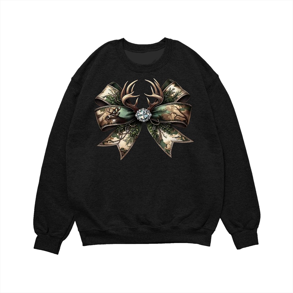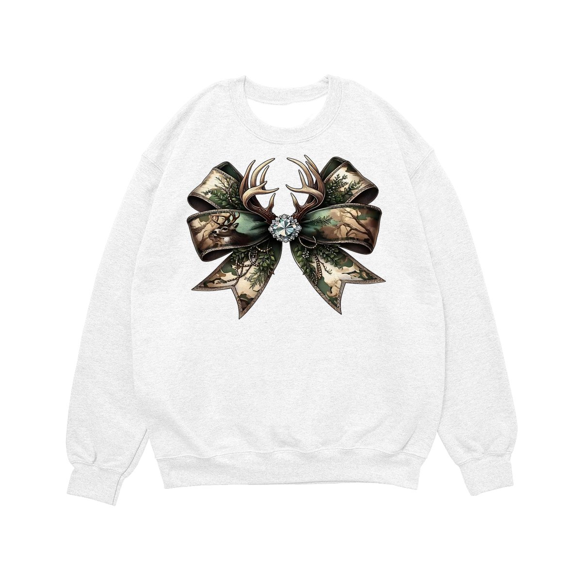 Deer Antler Bow T-Shirt, Sweatshirt, Hoodie For Women, Rustic Hunting Season Camo Crewneck, Country Girl Fall Aesthetic Top, Western Cute Outdoorsy Gift Shirt Idea