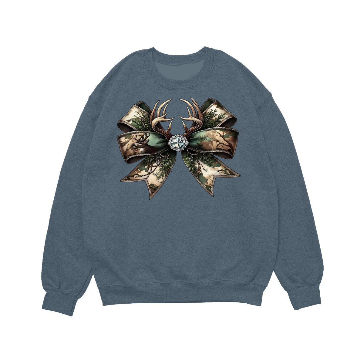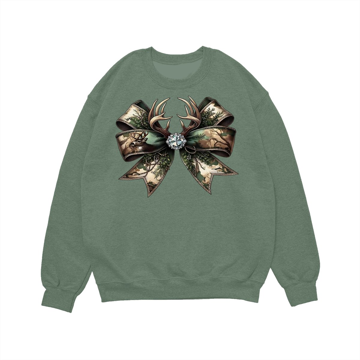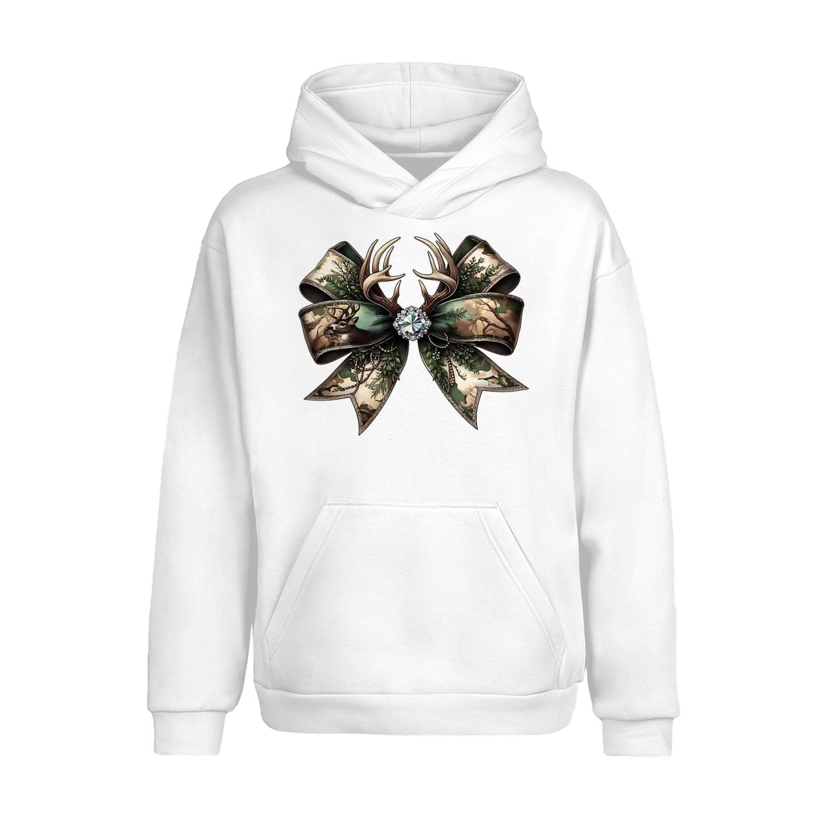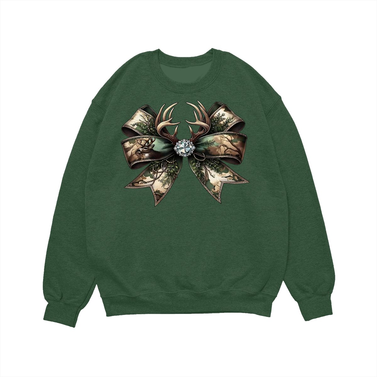 Deer Antler Bow T-Shirt, Sweatshirt, Hoodie For Women, Rustic Hunting Season Camo Crewneck, Country Girl Fall Aesthetic Top, Western Cute Outdoorsy Gift Shirt Idea