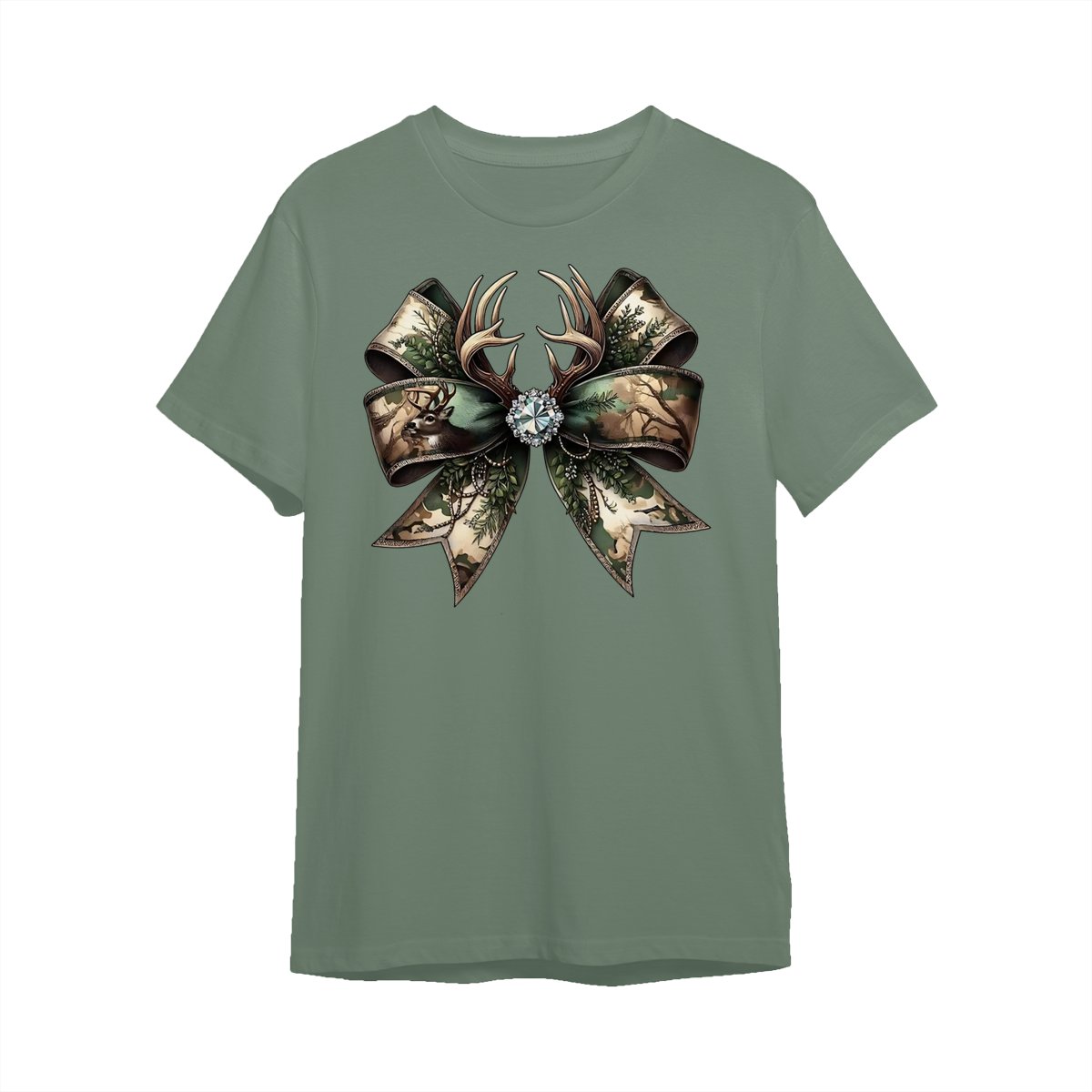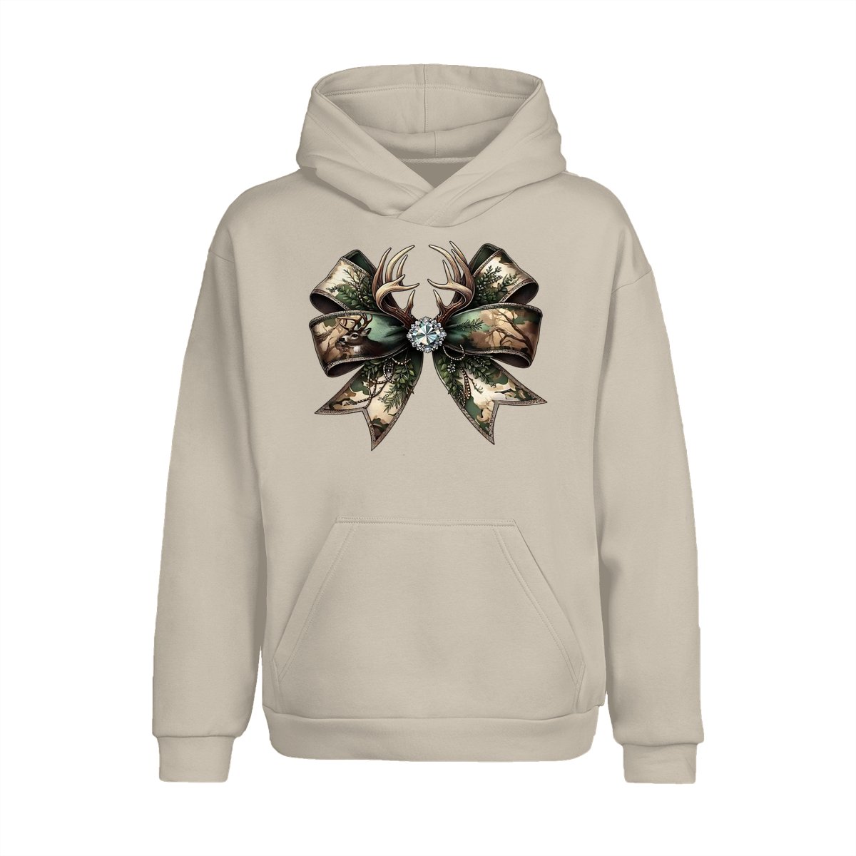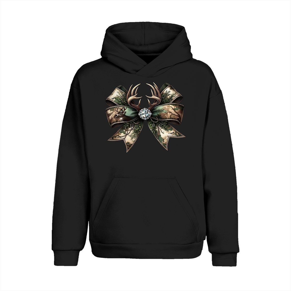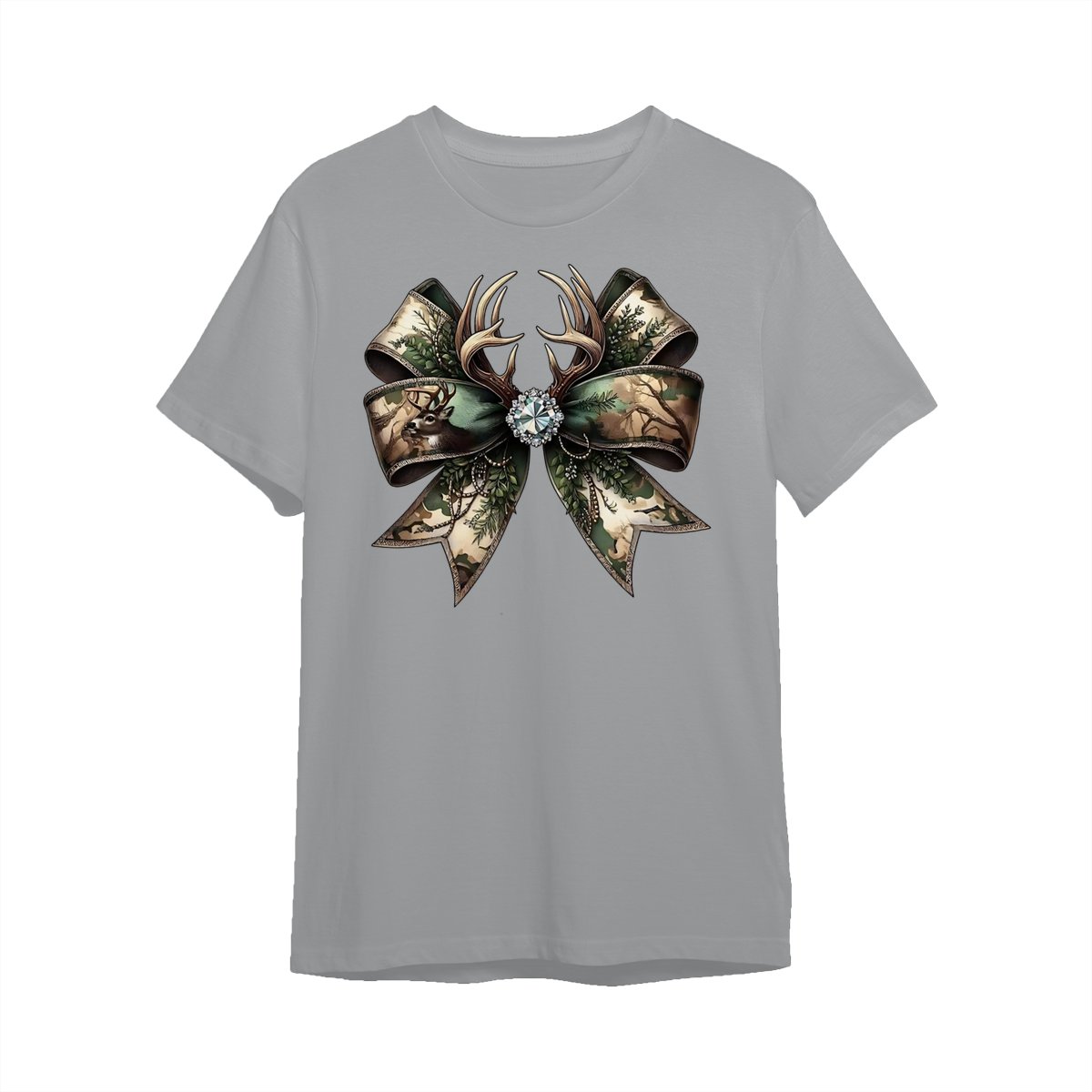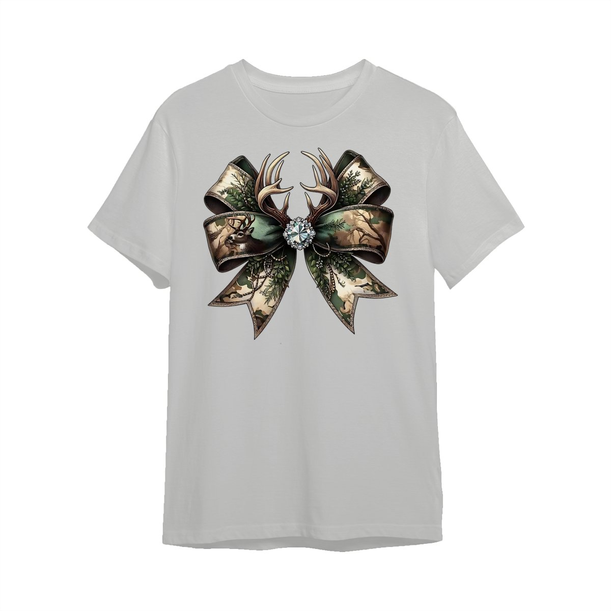 Deer Antler Bow T-Shirt, Sweatshirt, Hoodie For Women, Rustic Hunting Season Camo Crewneck, Country Girl Fall Aesthetic Top, Western Cute Outdoorsy Gift Shirt Idea