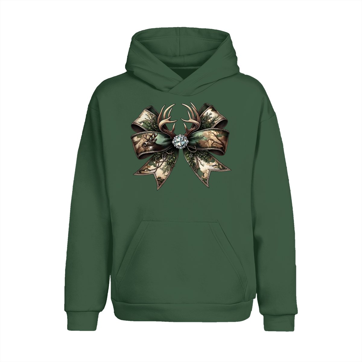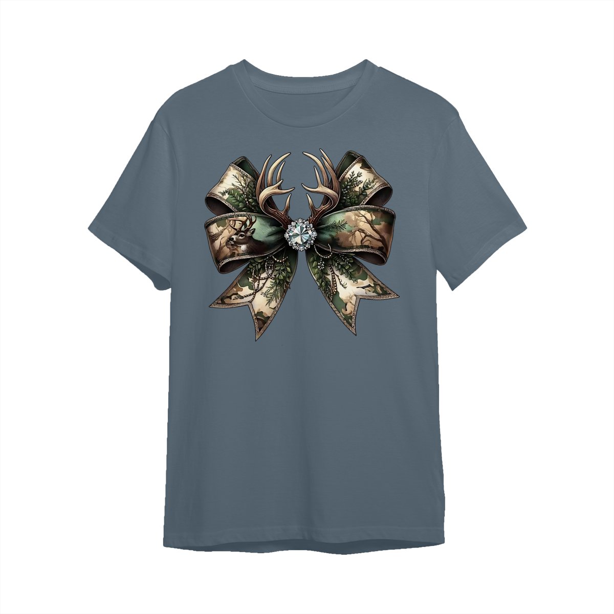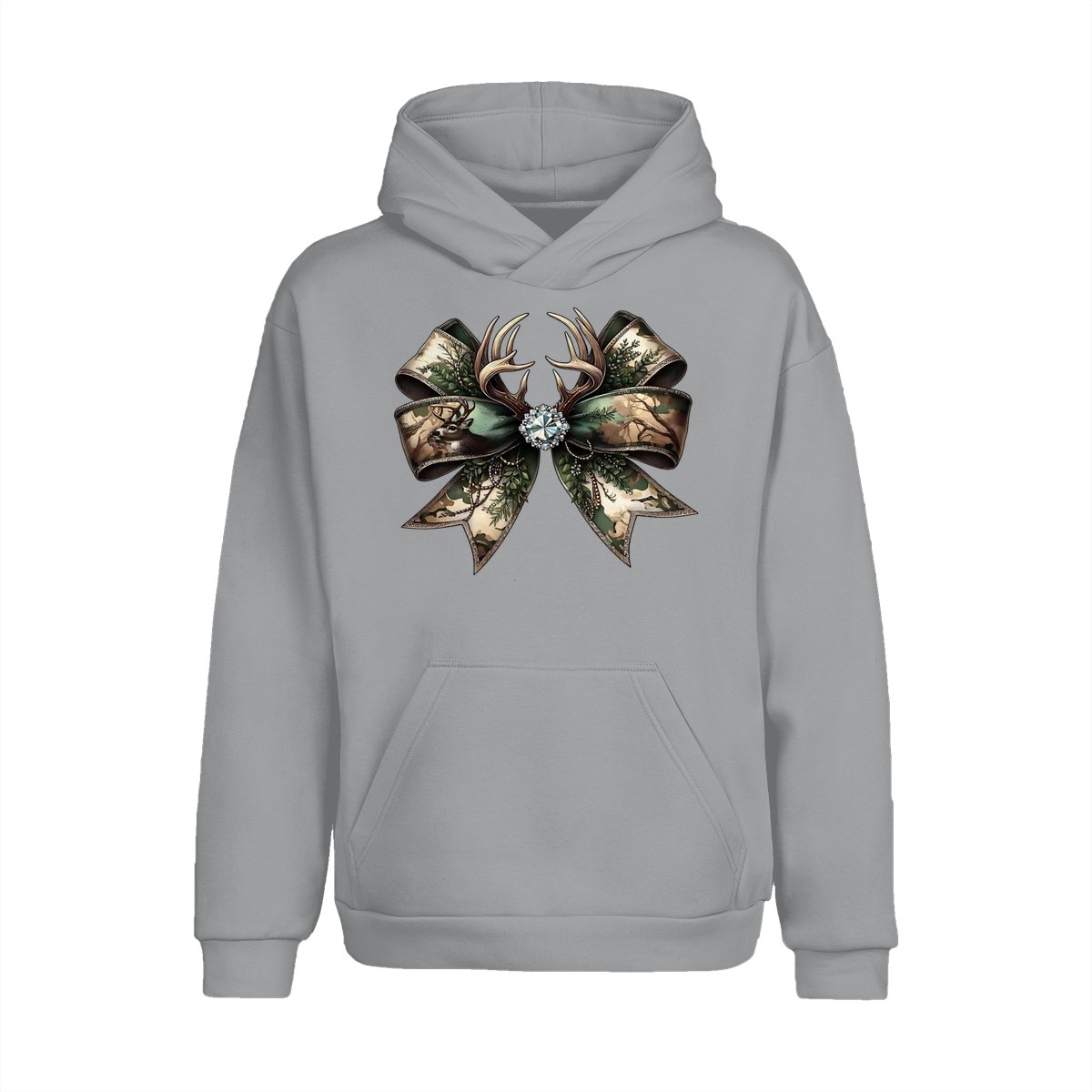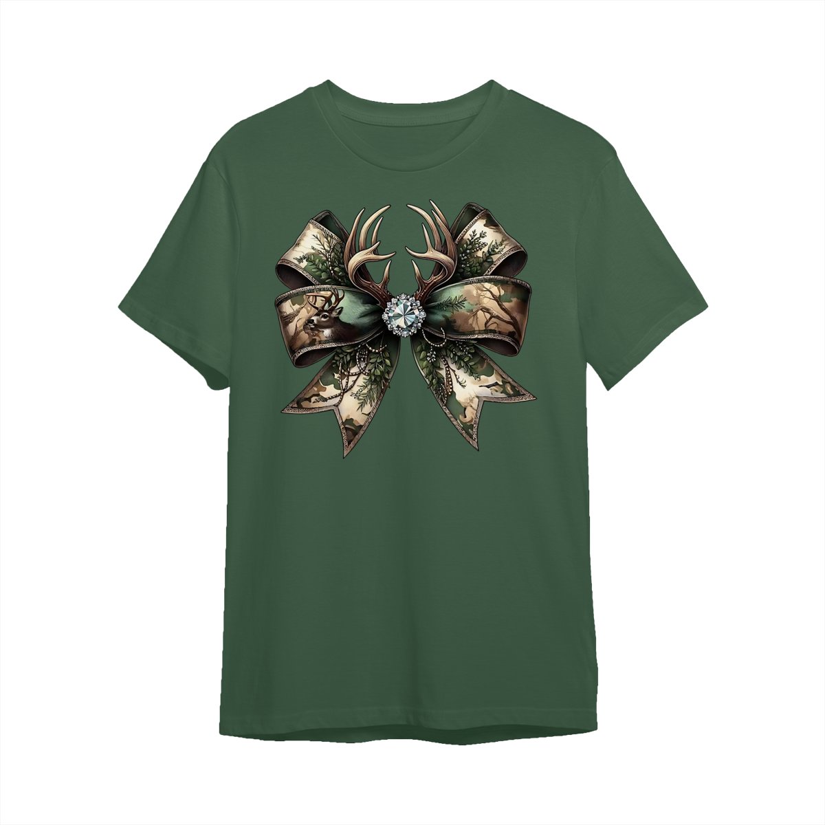 Deer Antler Bow T-Shirt, Sweatshirt, Hoodie For Women, Rustic Hunting Season Camo Crewneck, Country Girl Fall Aesthetic Top, Western Cute Outdoorsy Gift Shirt Idea
