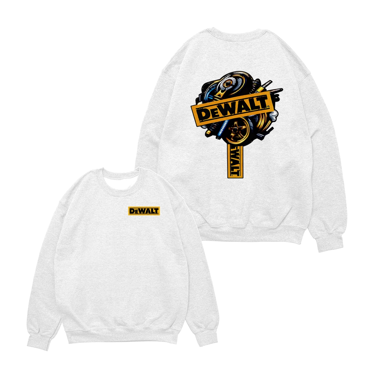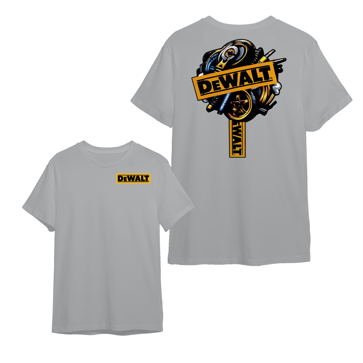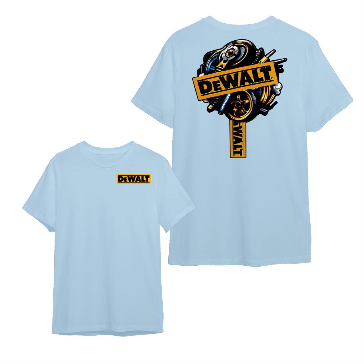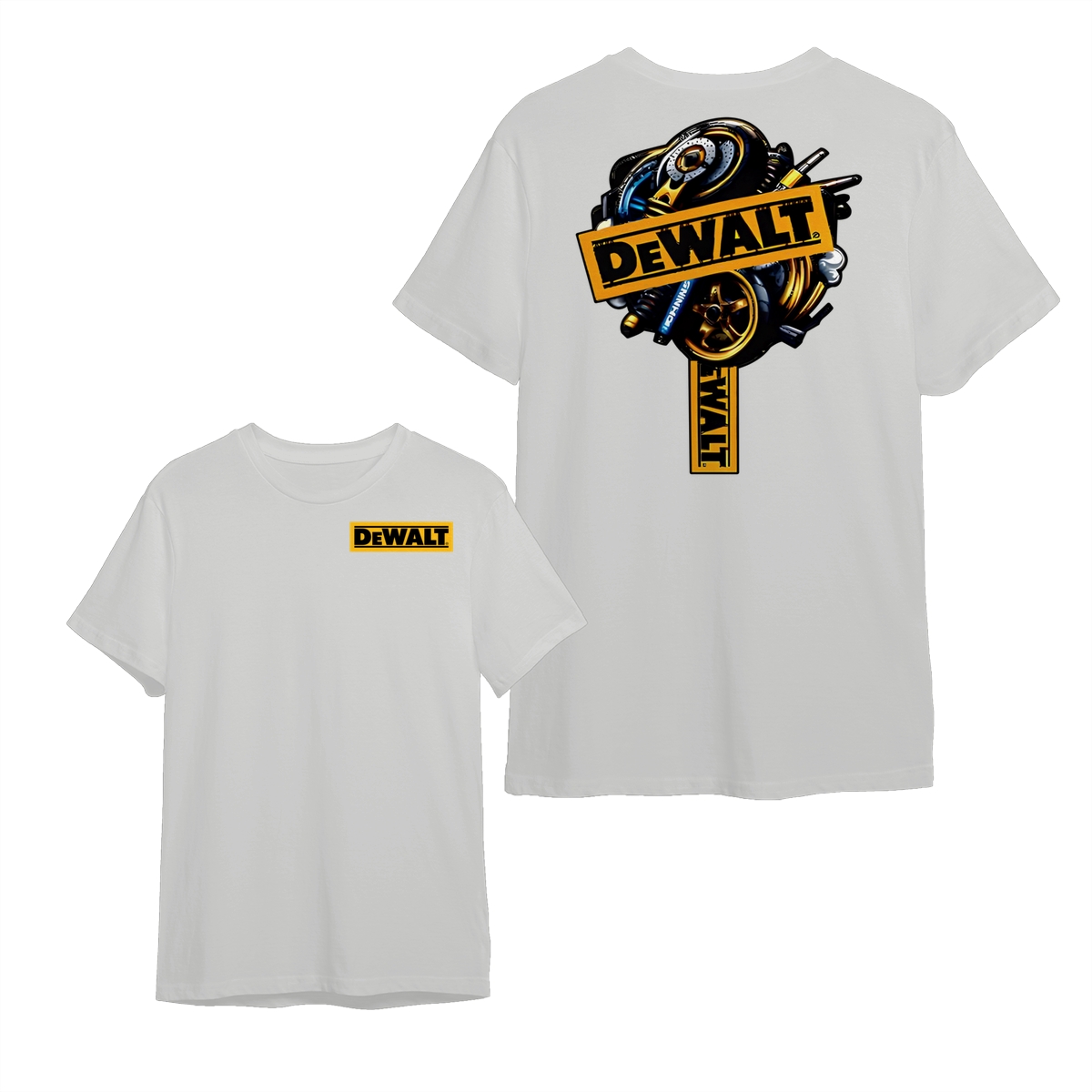 DEWALT Tools T-Shirt – Heavy Equipment Graphic Tee – Bold Yellow Logo – Workwear-Inspired Street Style