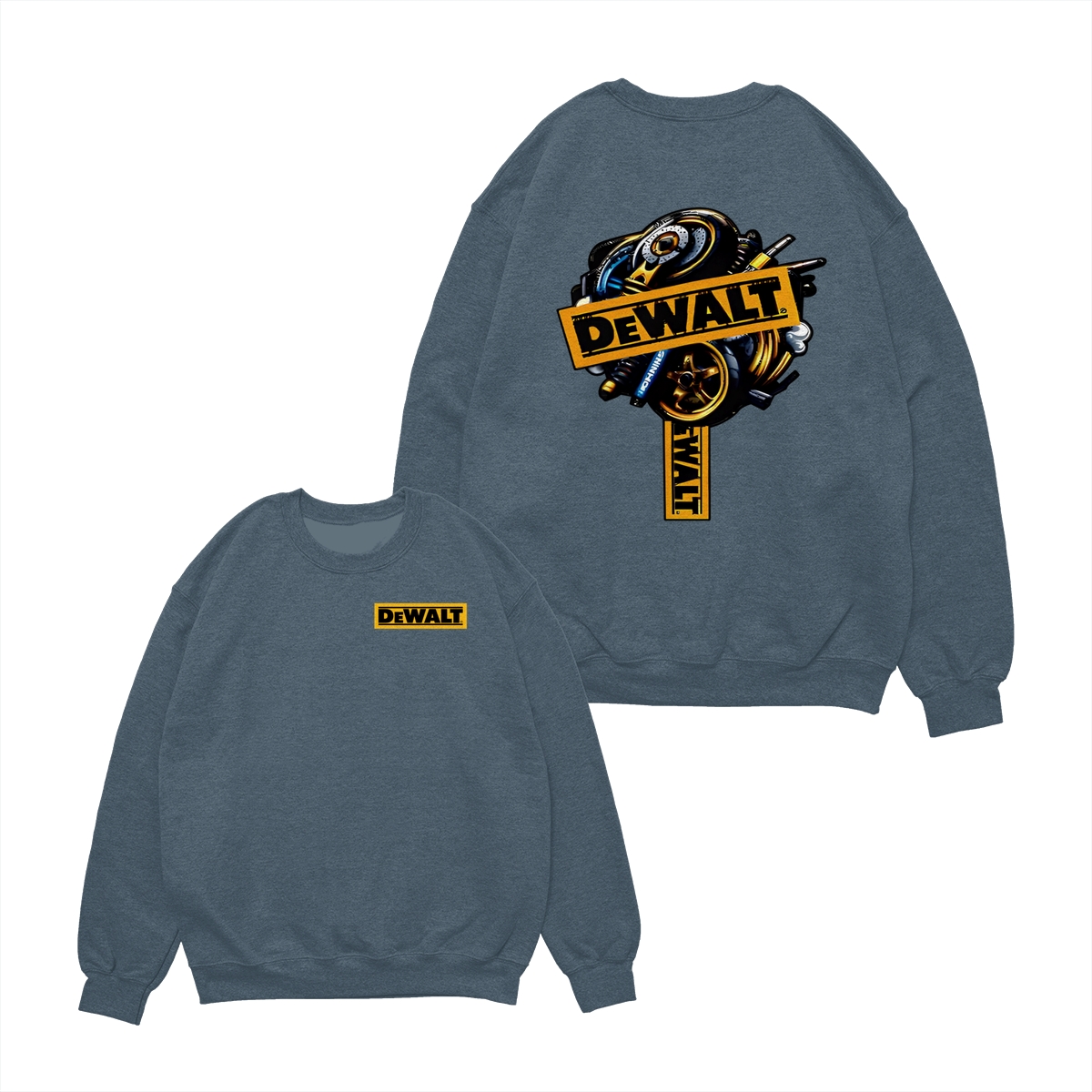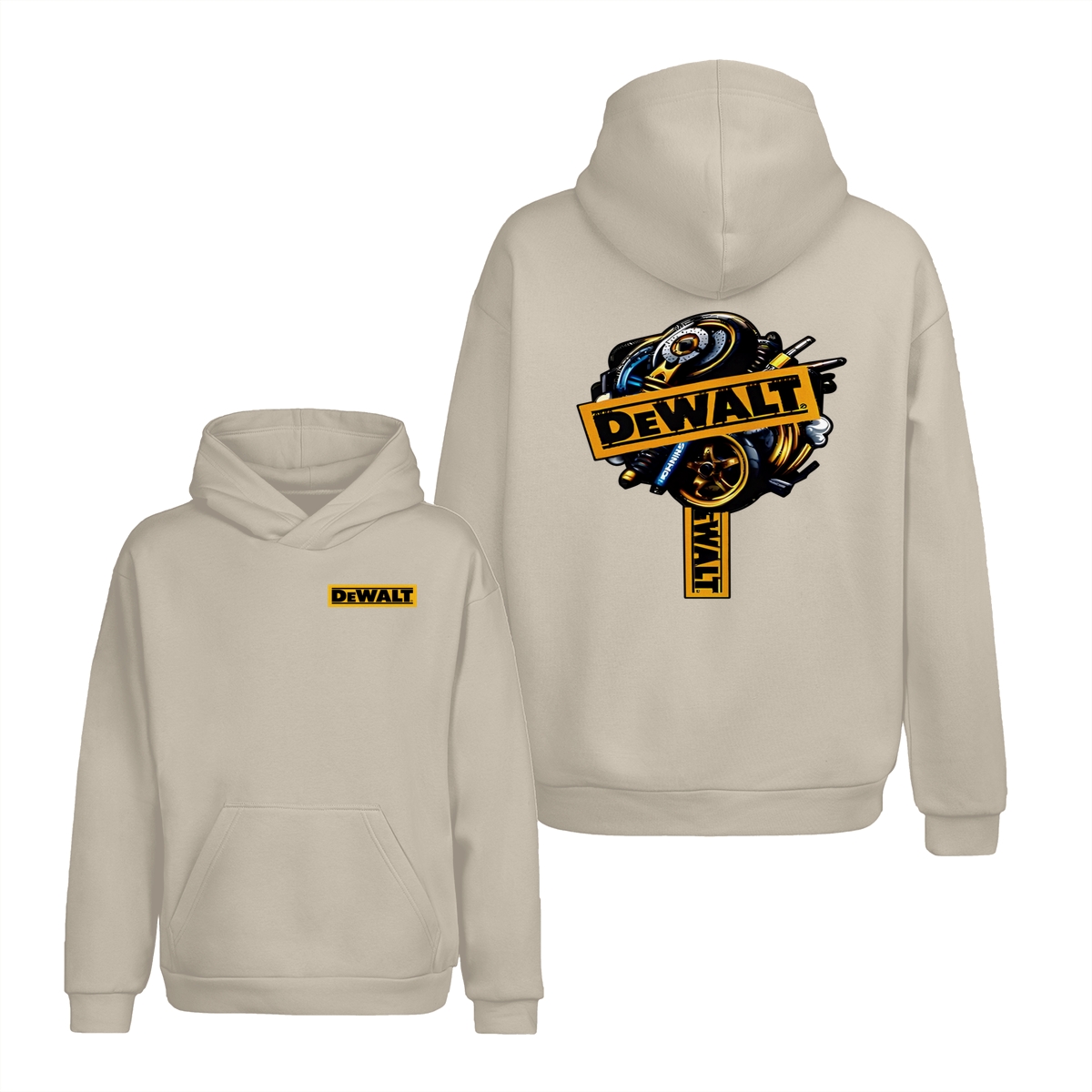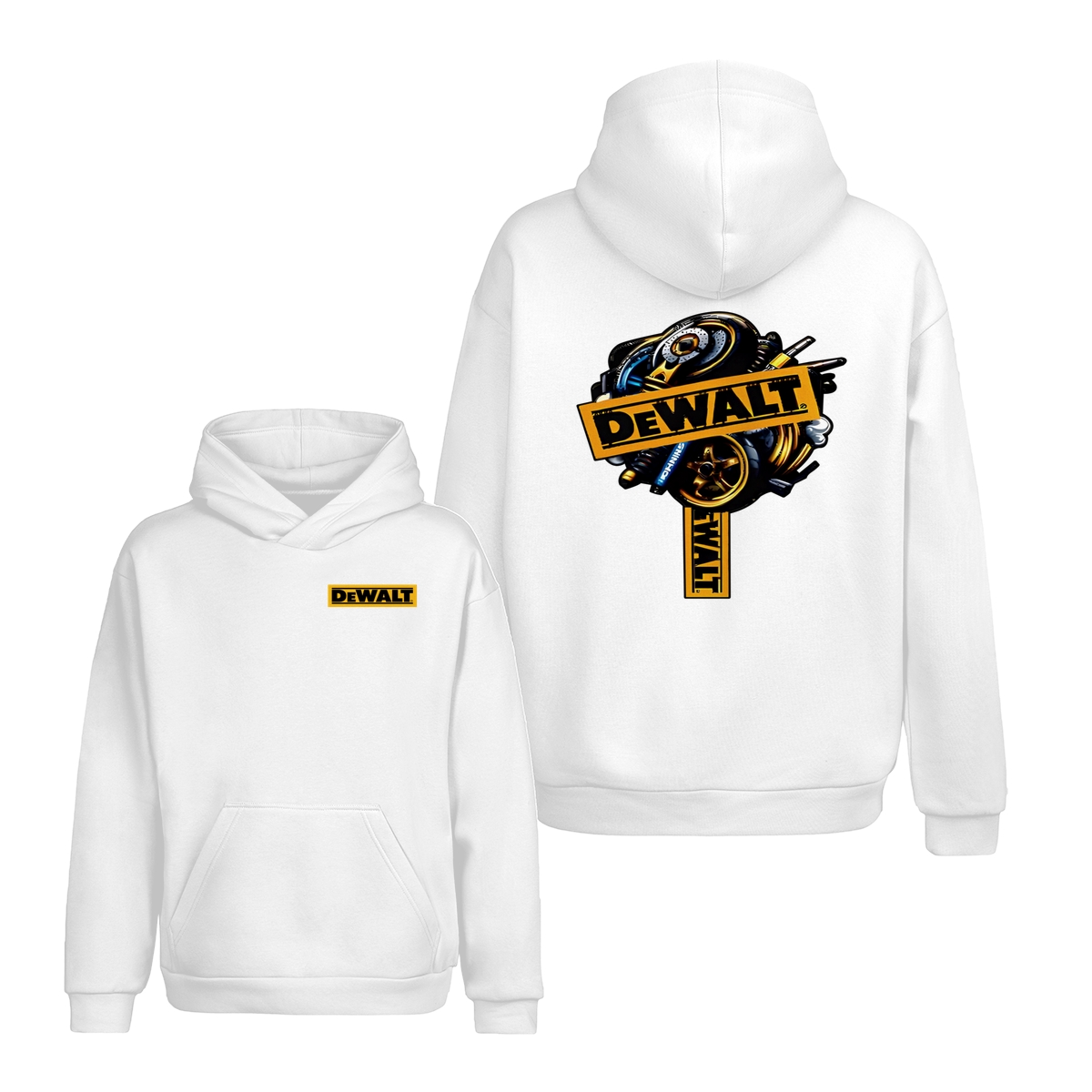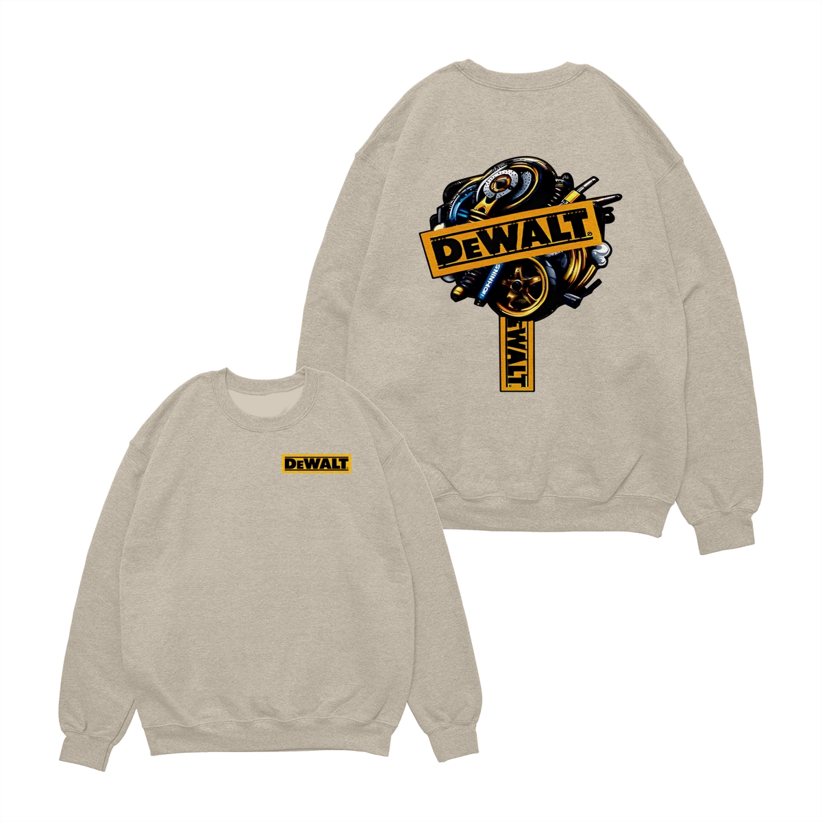 DEWALT Tools T-Shirt – Heavy Equipment Graphic Tee – Bold Yellow Logo – Workwear-Inspired Street Style