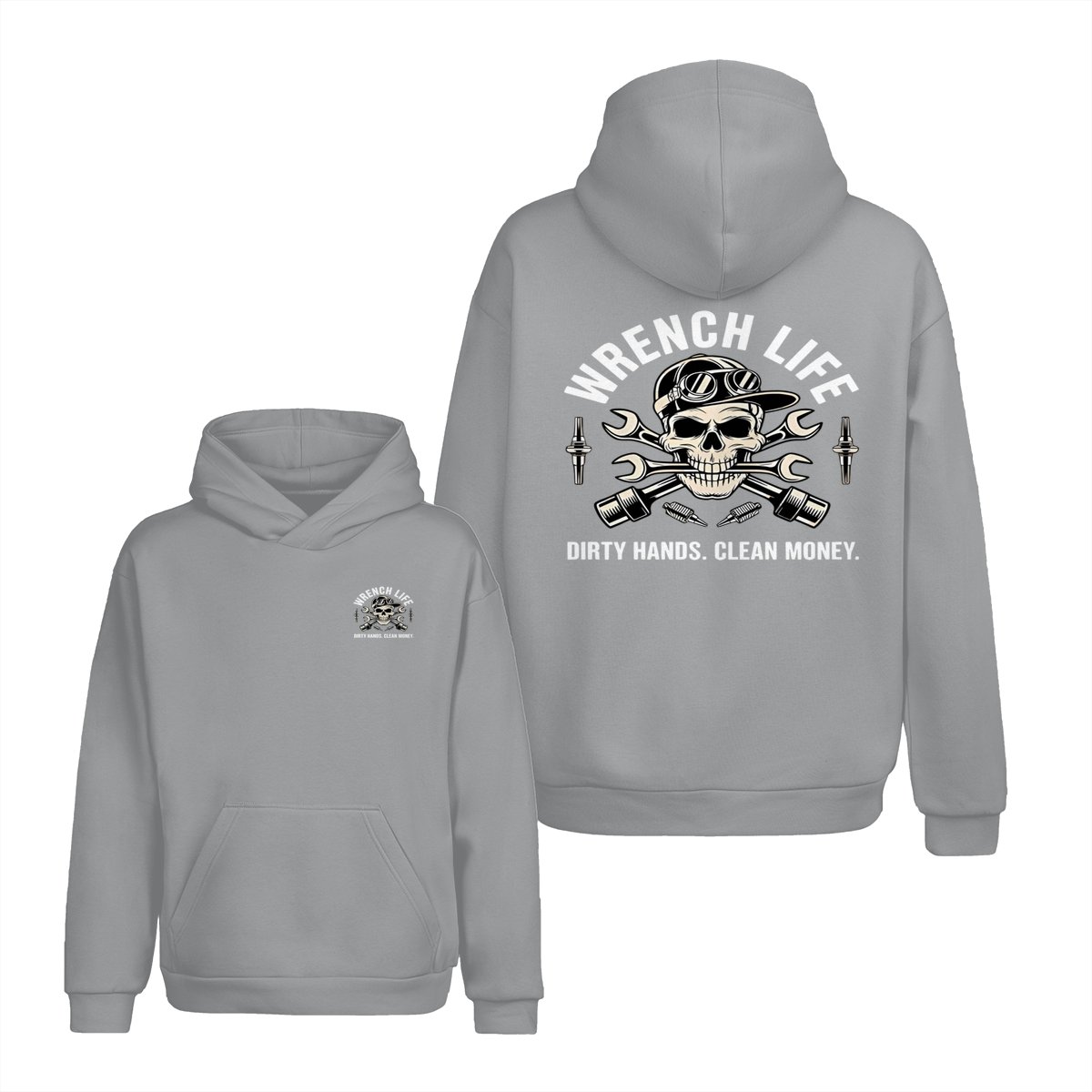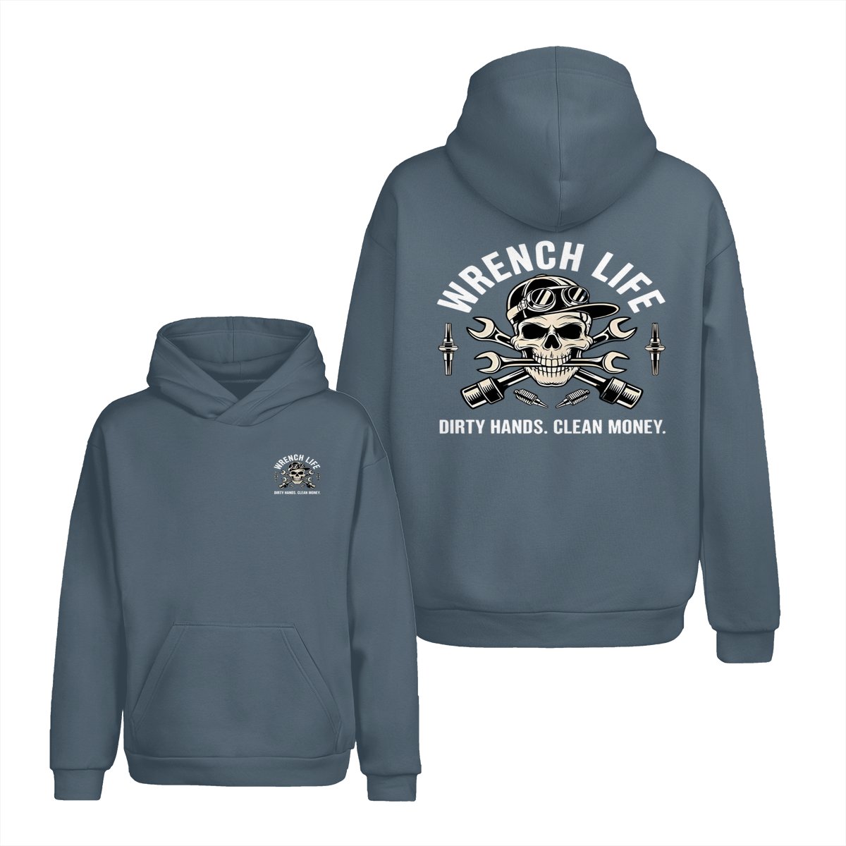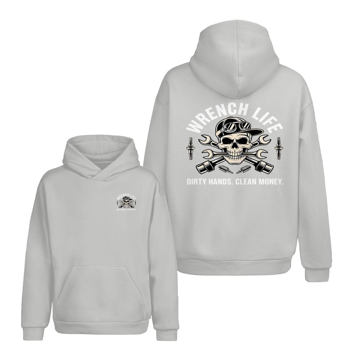Dirty Hands Clean Money Shirt – Unique Skull with Wrenches Graphic for Hardworking Mechanics – Casual Unisex Hoodie for Auto Repair, Car Lovers, Daily Wear