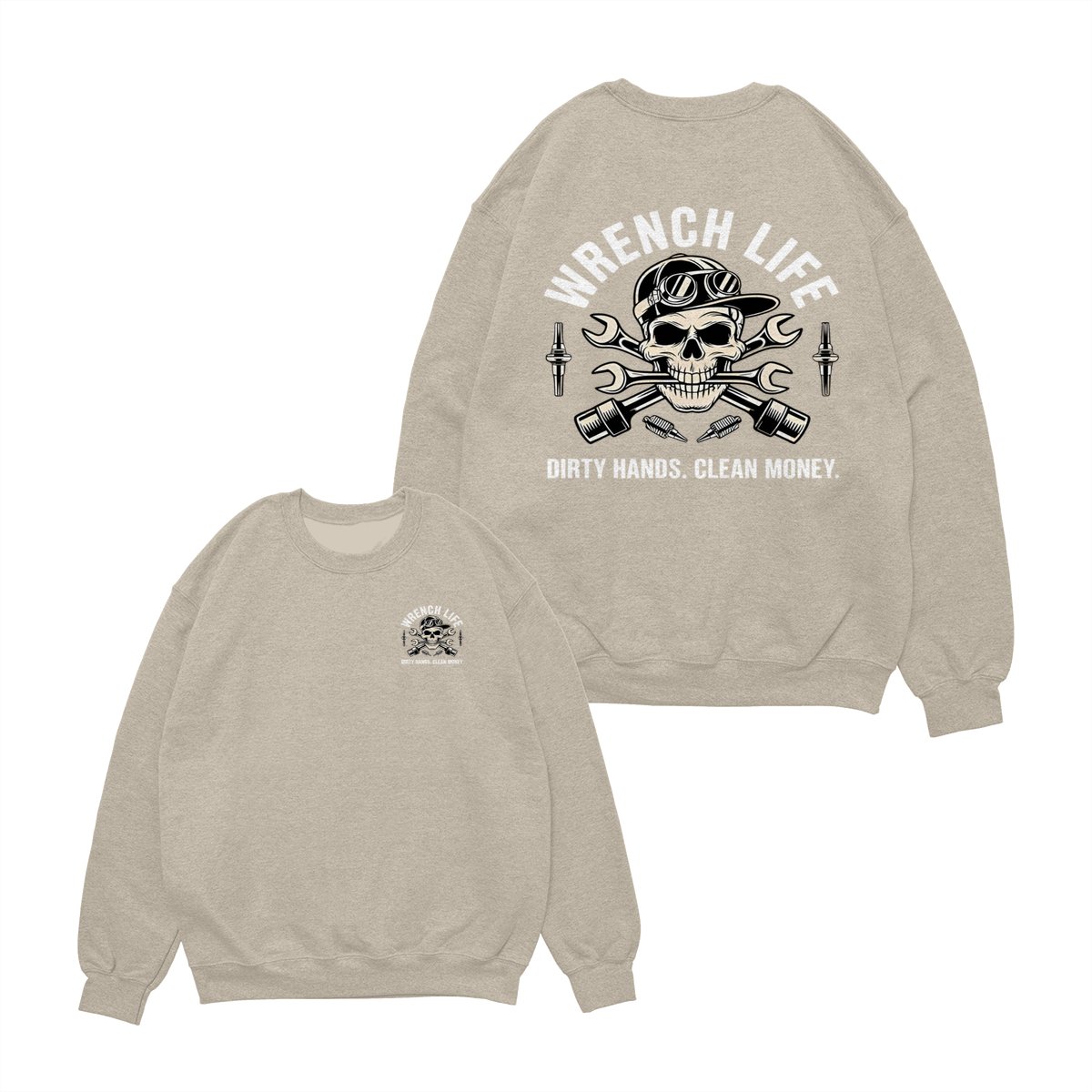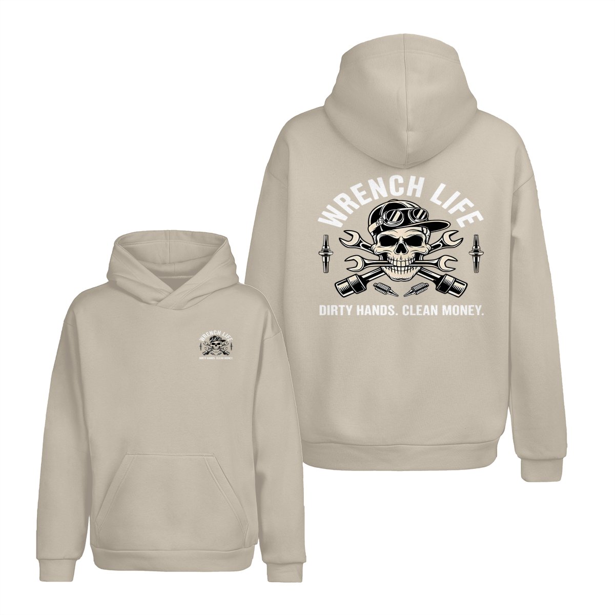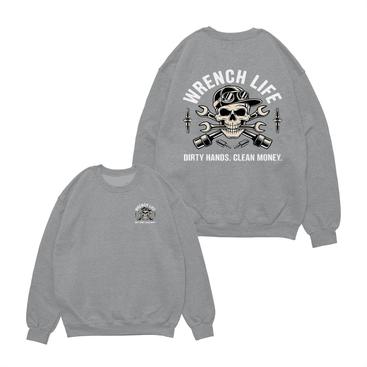 Dirty Hands Clean Money Shirt – Unique Skull with Wrenches Graphic for Hardworking Mechanics – Casual Unisex Hoodie for Auto Repair, Car Lovers, Daily Wear
