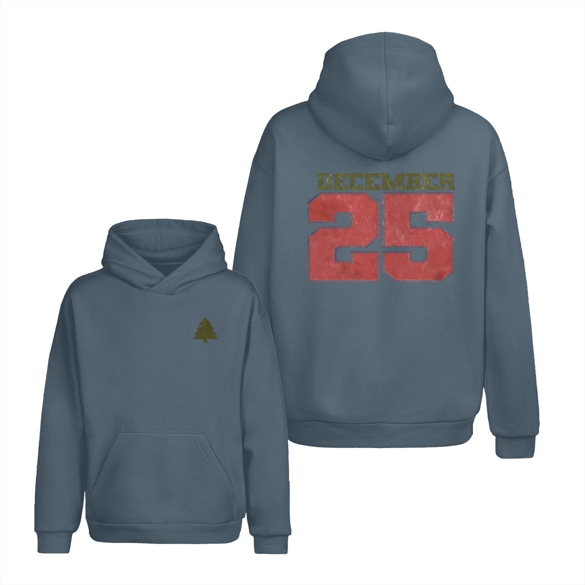Distressed December 25 Hoodie for Christmas, Funny Family Gift, Country Style Merry Christmas Party Apparel Made In The USA