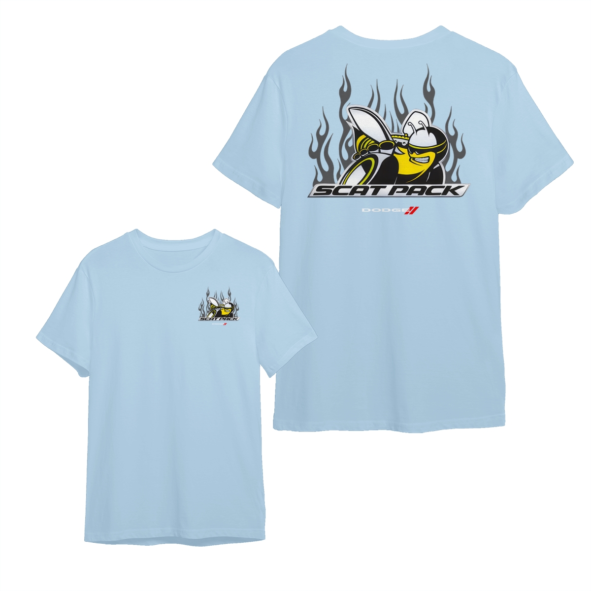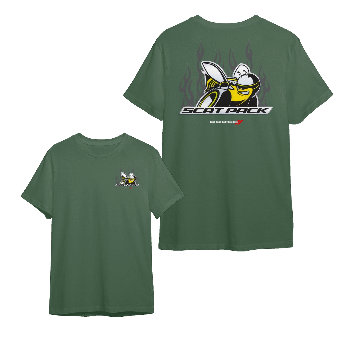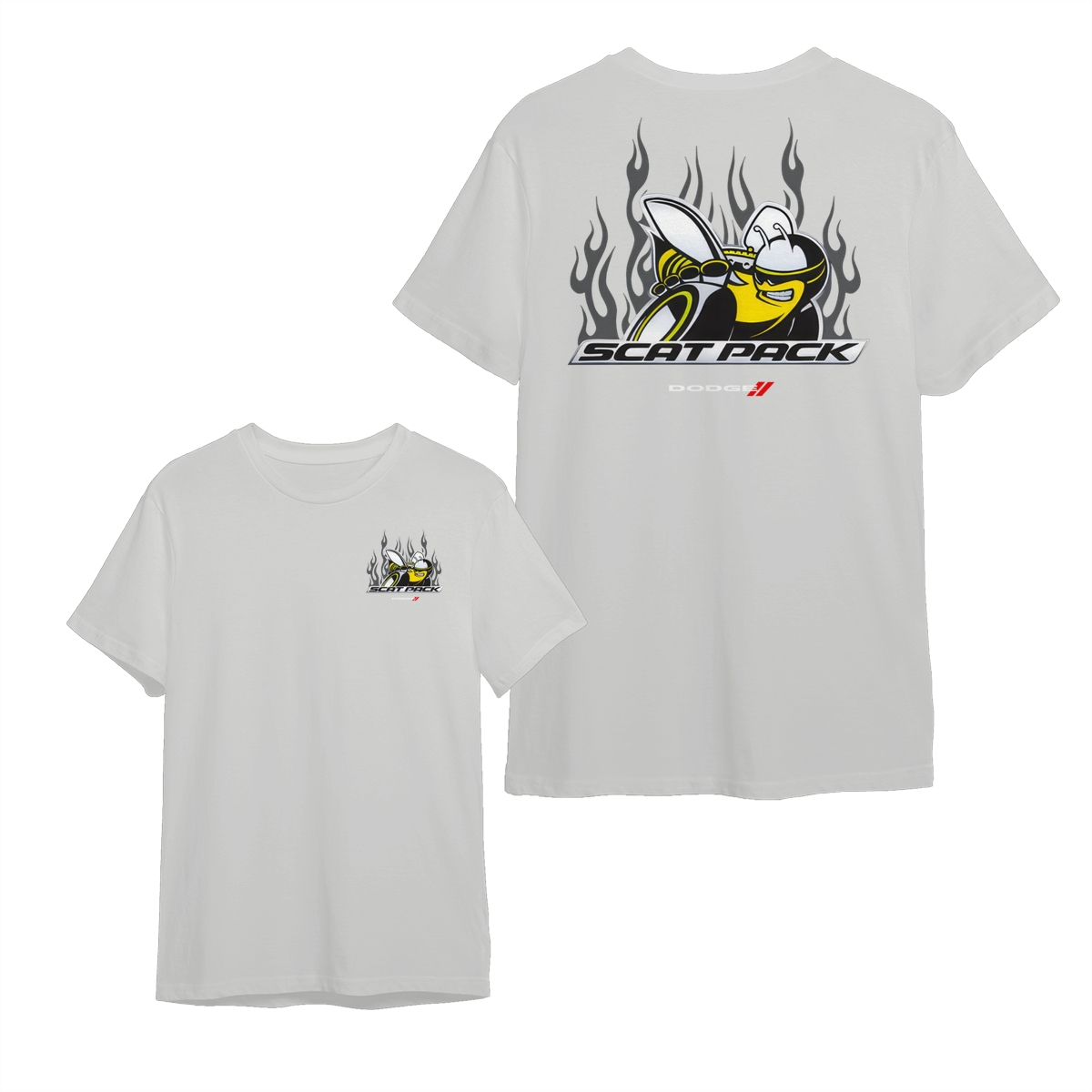 Dodge Scat Pack Flames 2 Sides T-Shirt – Bold Cotton Graphic Tee for Muscle Car Enthusiasts, Menswear Summer Top, Unisex Classic Fabric Streetwear