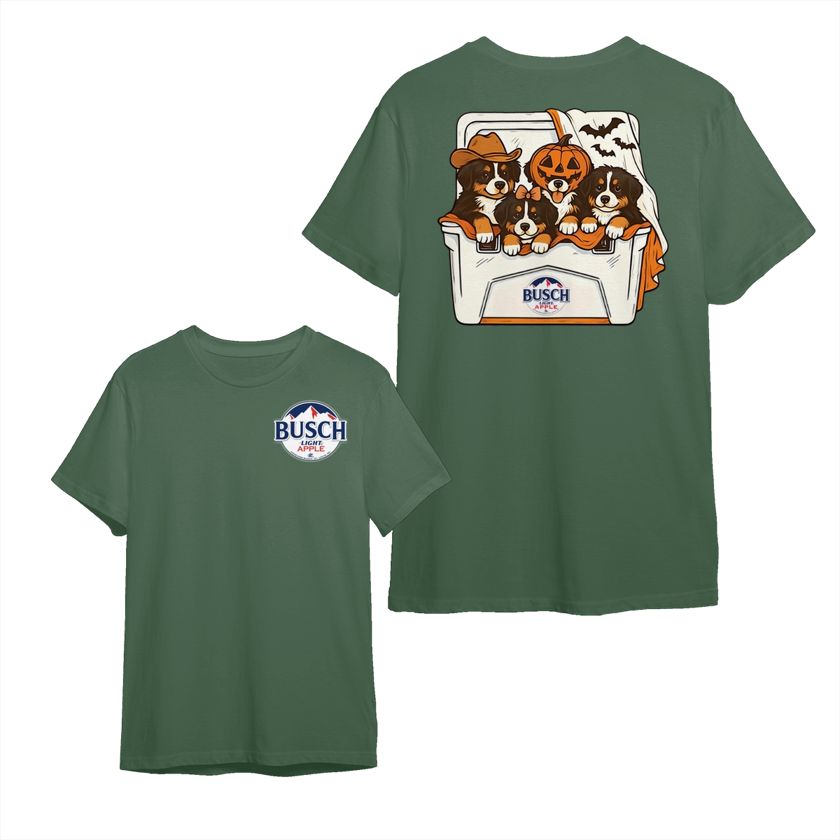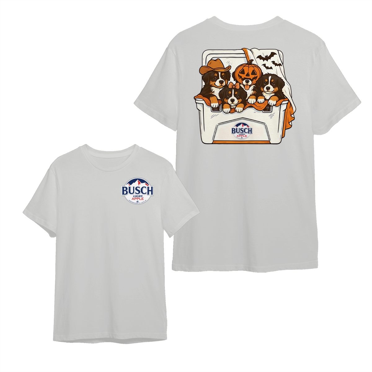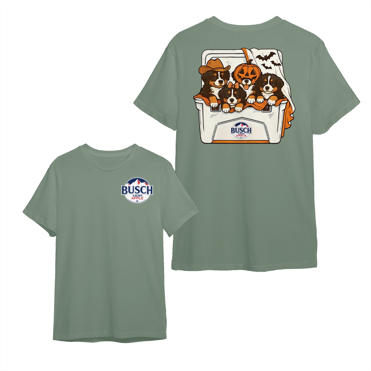 Dog Beer Busch Apple Halloween T-Shirt, Cute Puppies in Cooler Graphic, Classic Beer Tee for Dog Lovers, For Men and For Women