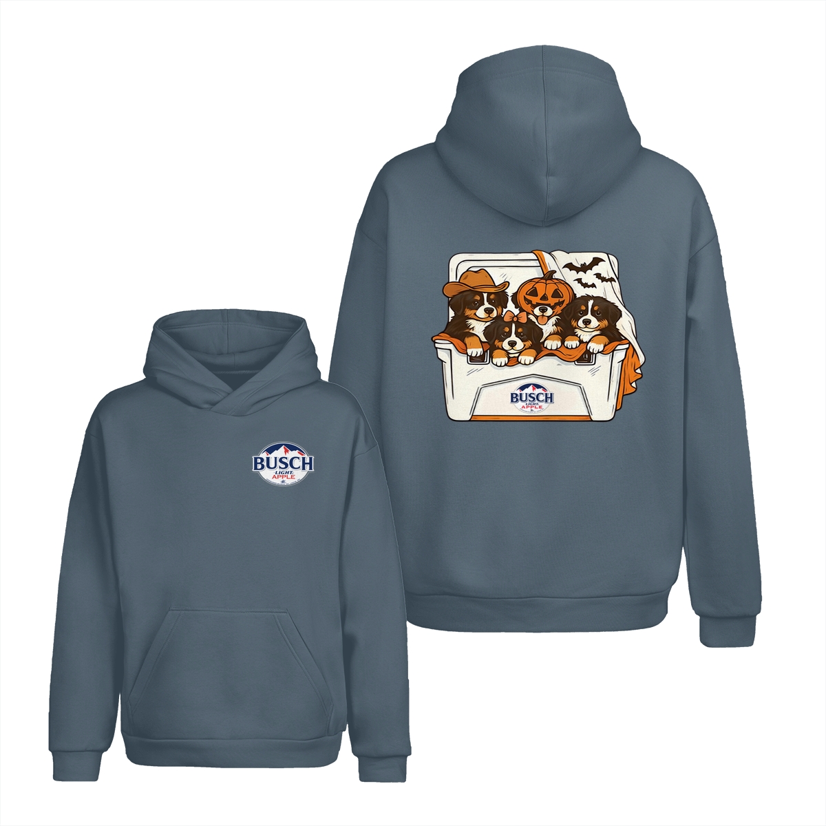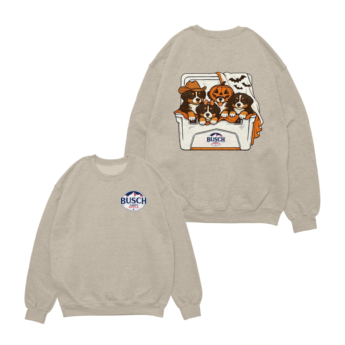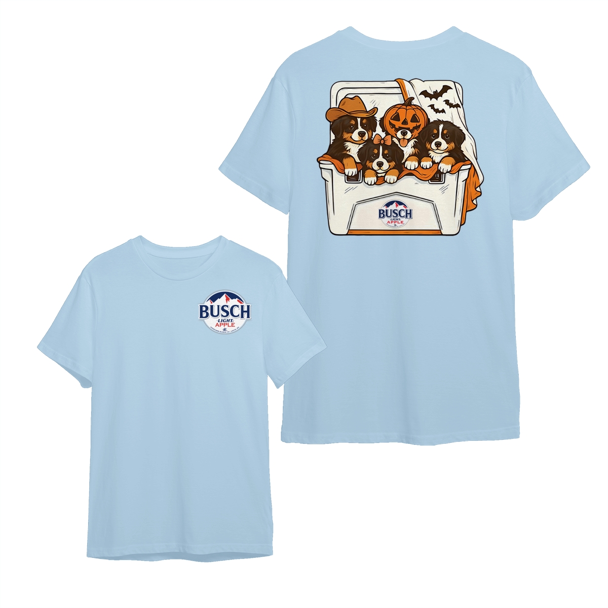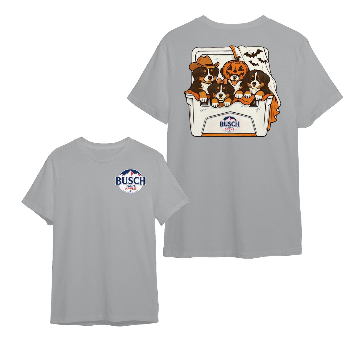 Dog Beer Busch Apple Halloween T-Shirt, Cute Puppies in Cooler Graphic, Classic Beer Tee for Dog Lovers, For Men and For Women