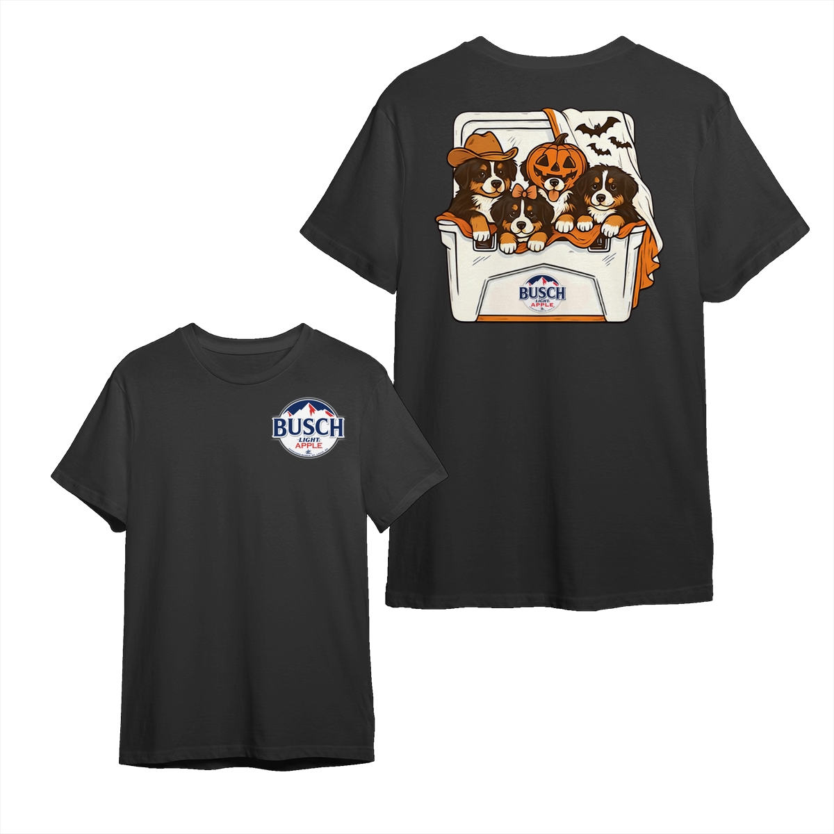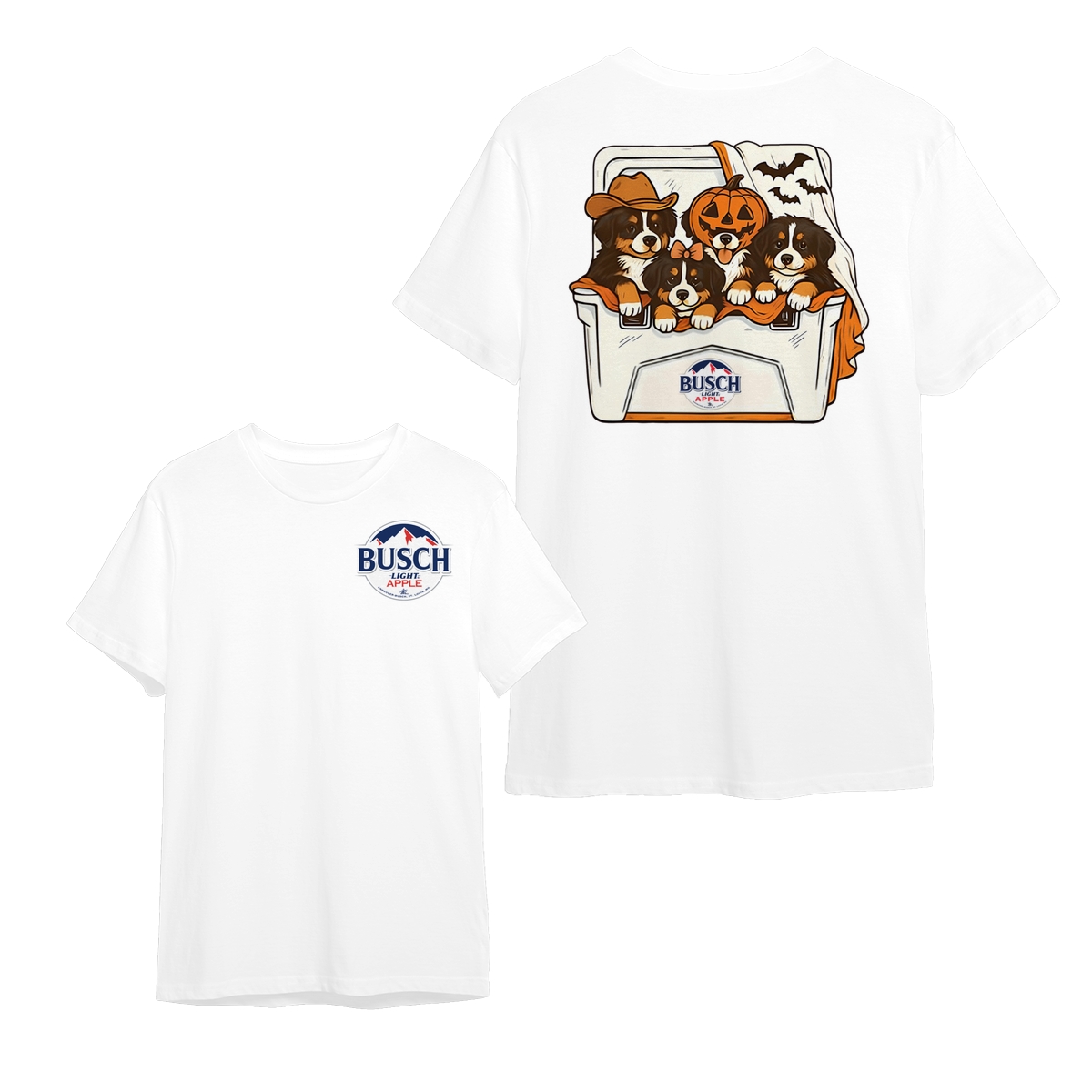 Dog Beer Busch Apple Halloween T-Shirt, Cute Puppies in Cooler Graphic, Classic Beer Tee for Dog Lovers, For Men and For Women