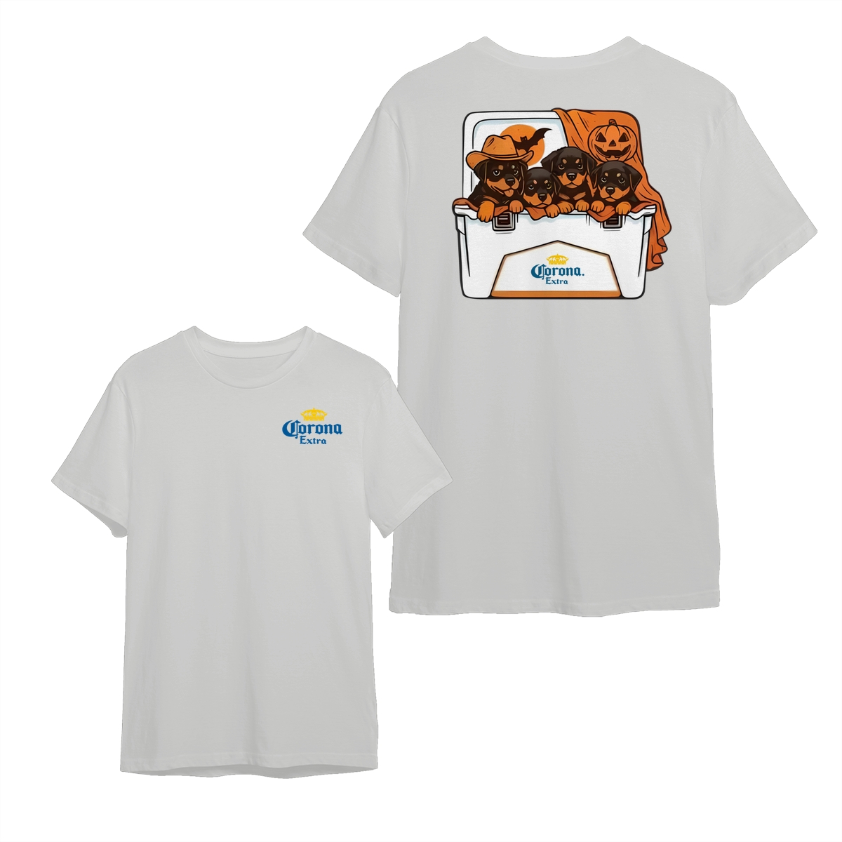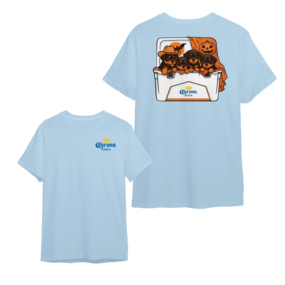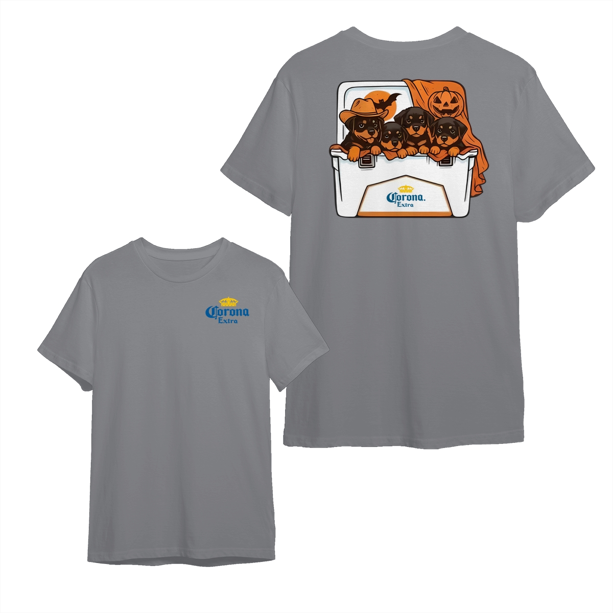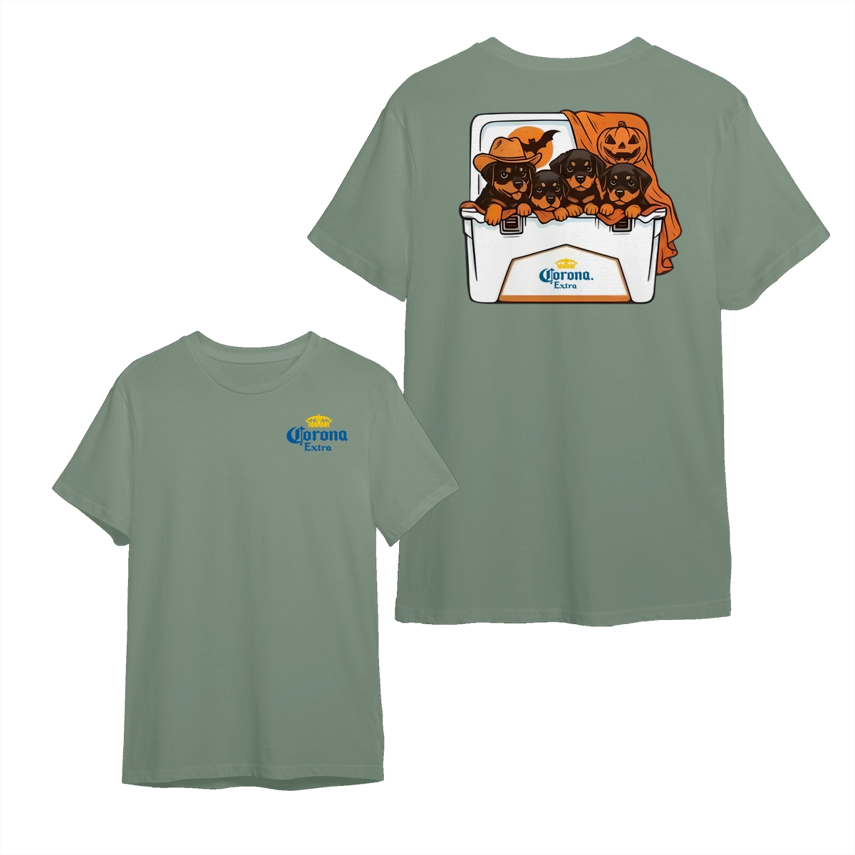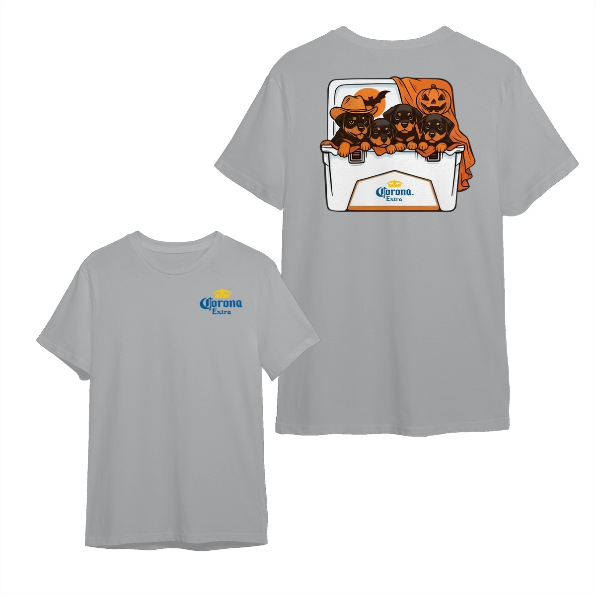 Dog Beer Halloween Corona Extra T-Shirt, Cute Puppies in Cooler Graphic, Fun Fall Tee for Dog Lovers and Beer Fans