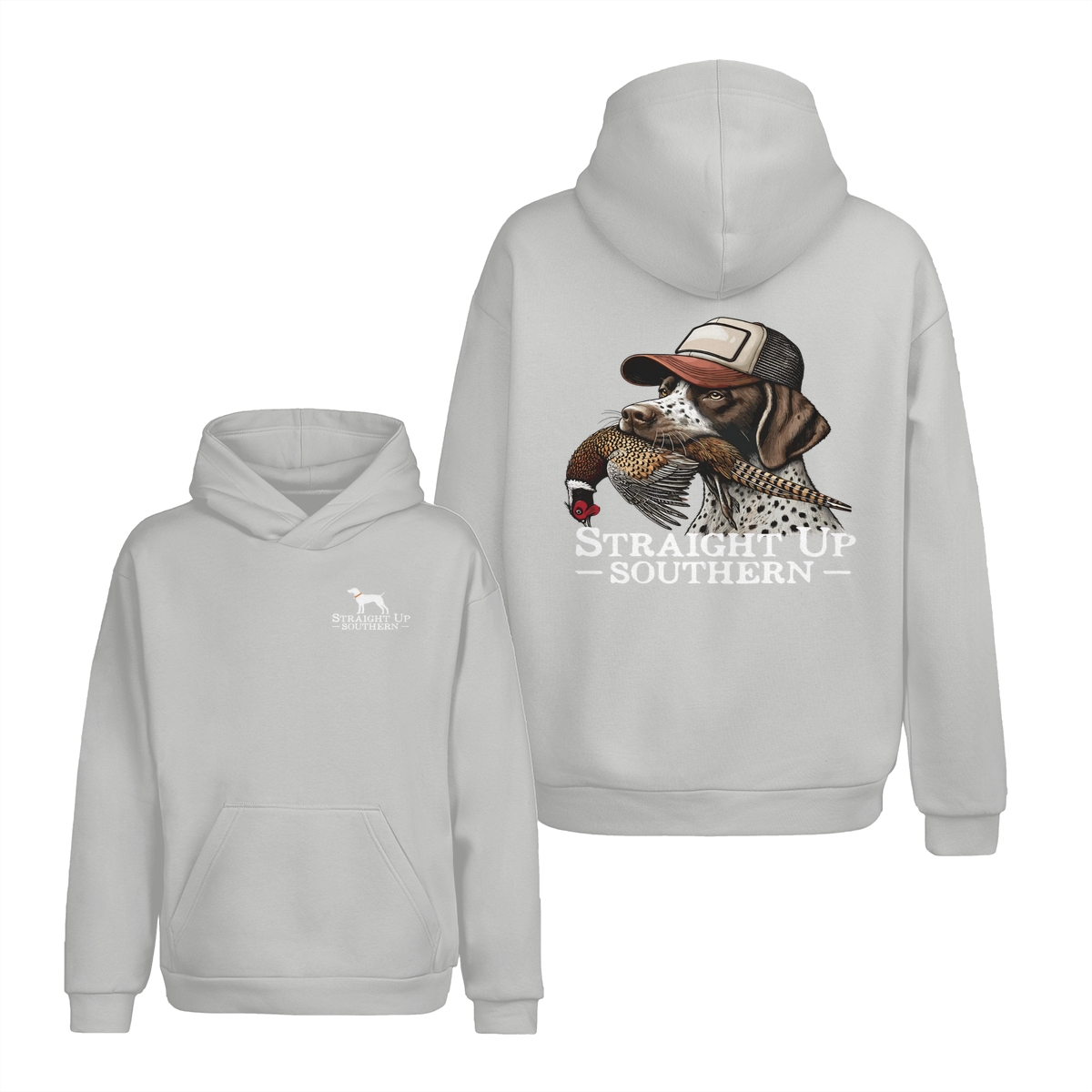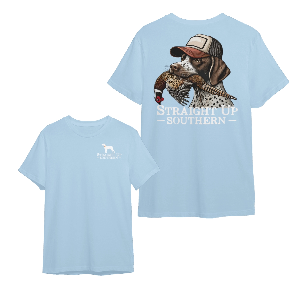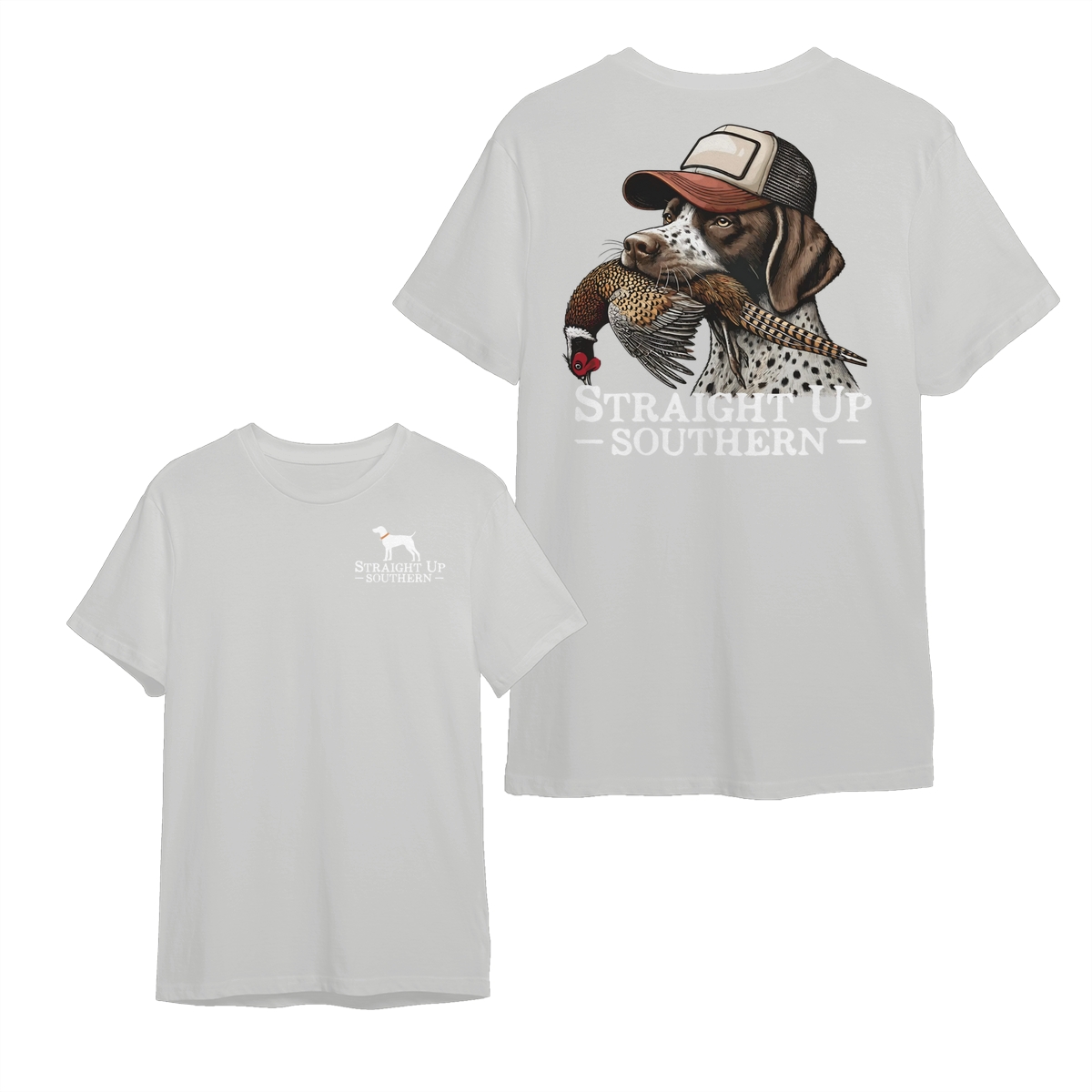 Dog With Pheasant German Shorthaired Pointer in Trucker Cap T-Shirt, Vintage Dog Hunter Tee, Classic Field Fashion, Rugged Streetwear Fit