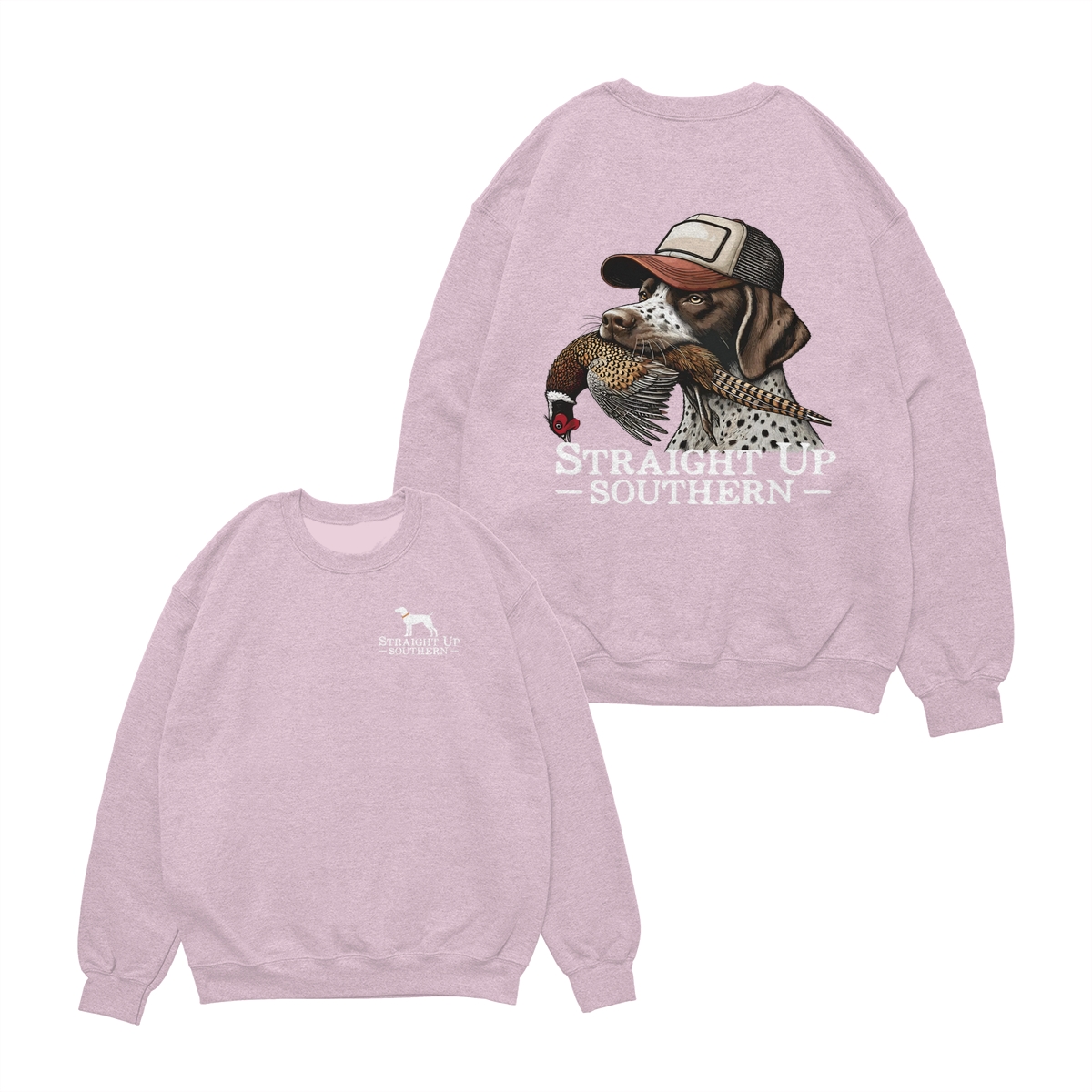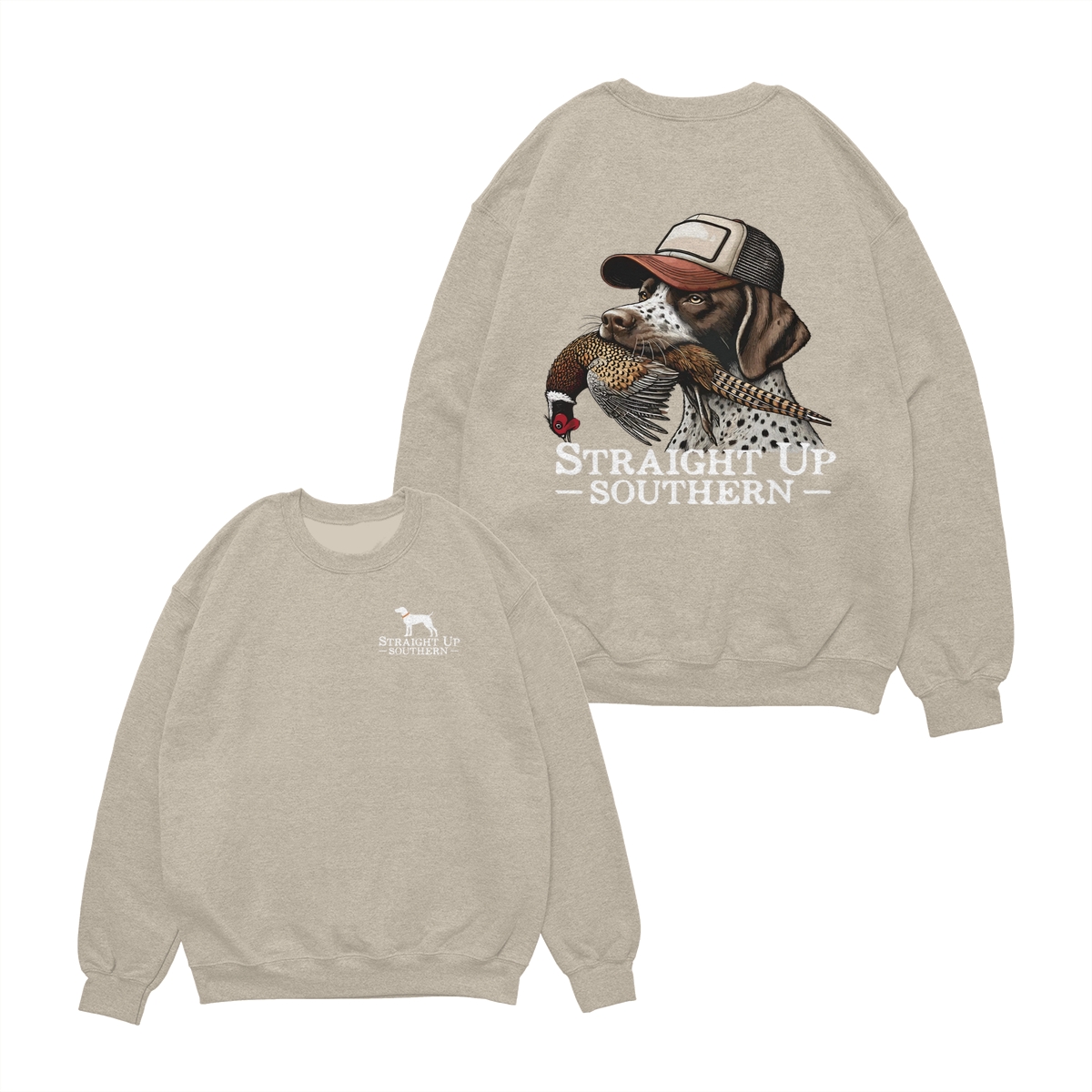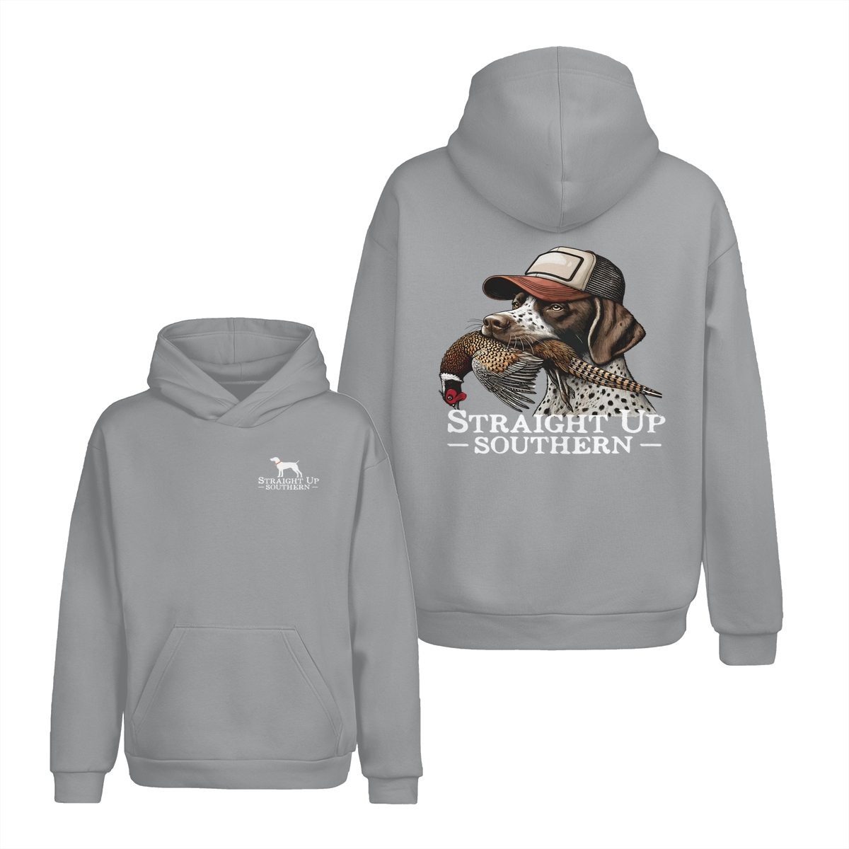 Dog With Pheasant German Shorthaired Pointer in Trucker Cap T-Shirt, Vintage Dog Hunter Tee, Classic Field Fashion, Rugged Streetwear Fit
