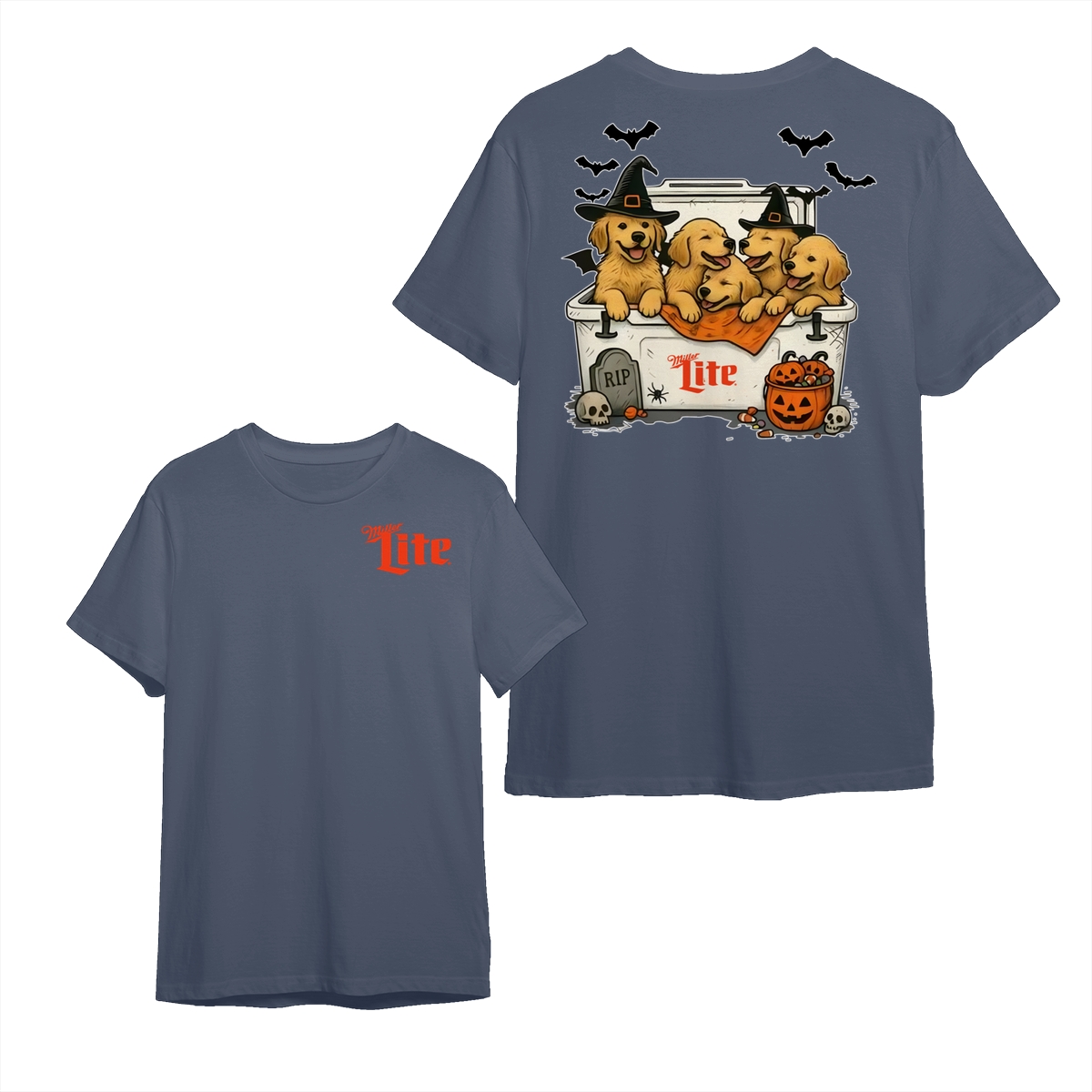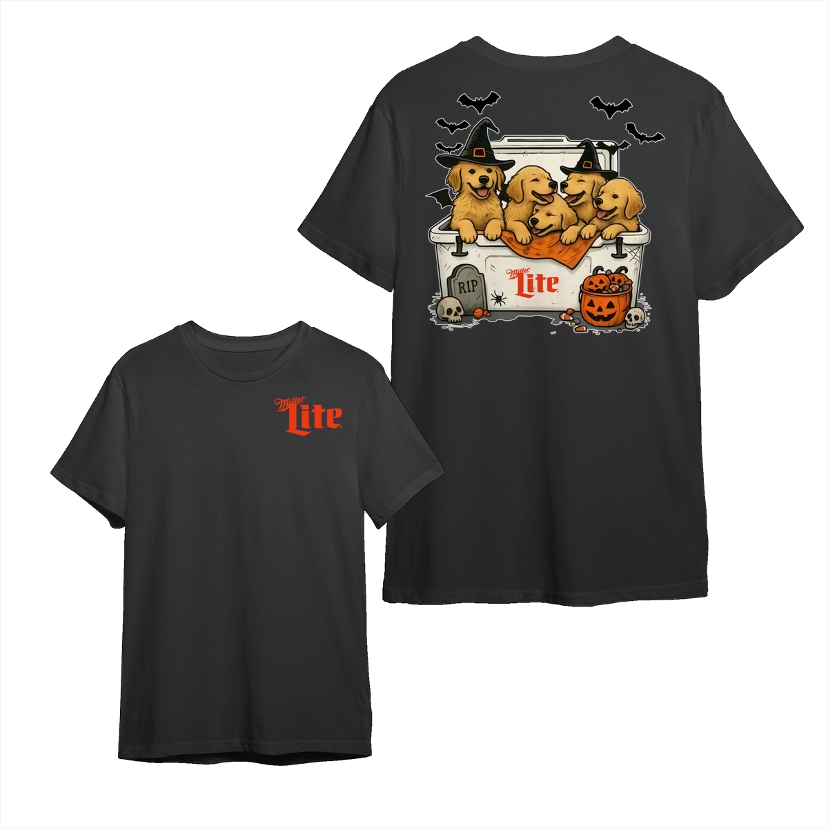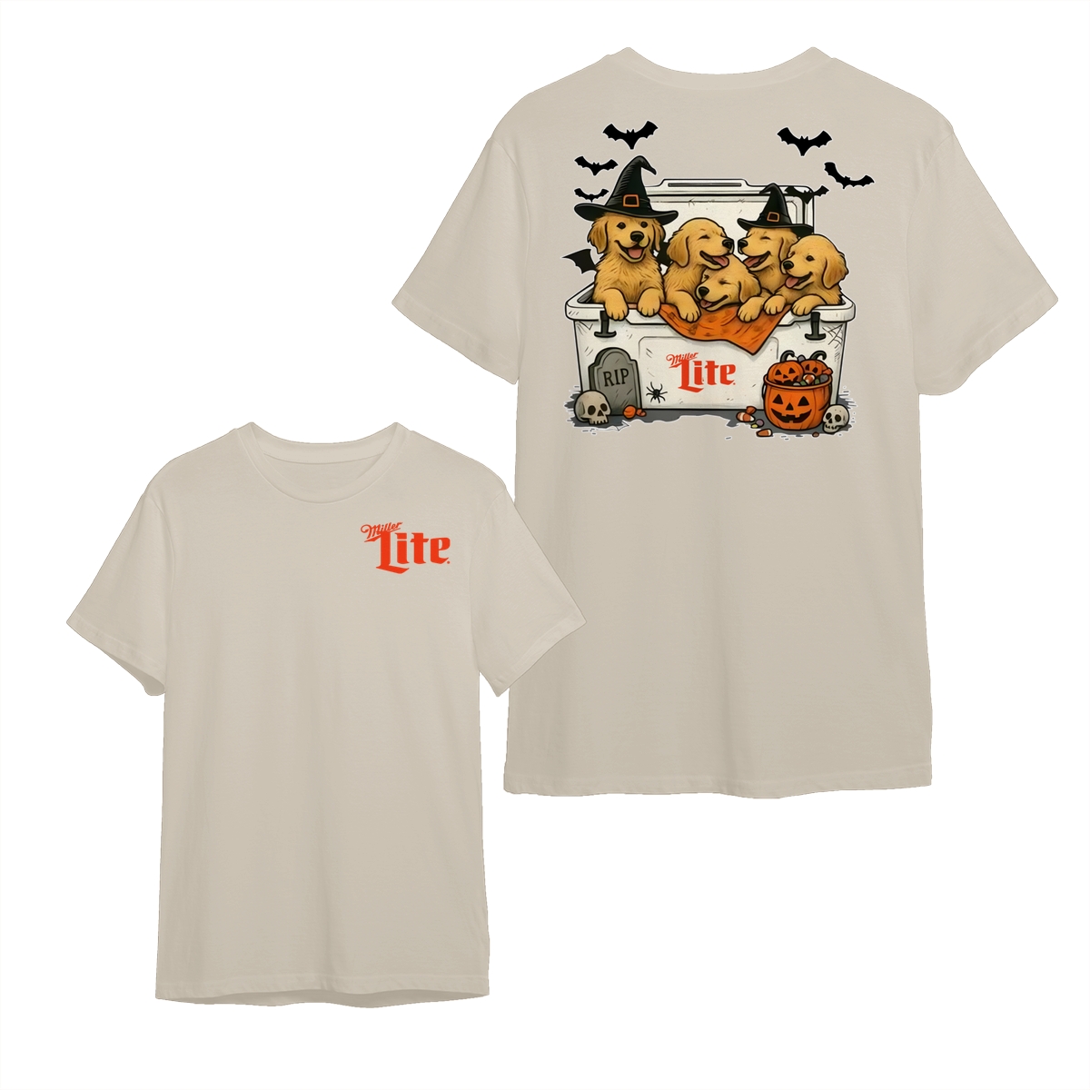 Dogs Beer Miller Lite Tees, Halloween T-Shirt Golden Retriever T-shirt, Halloween Cute Dog Trendy Shirt, Perfect Beer And Dog T-shirt Casual Cotton Top Gifts For Women and For Men