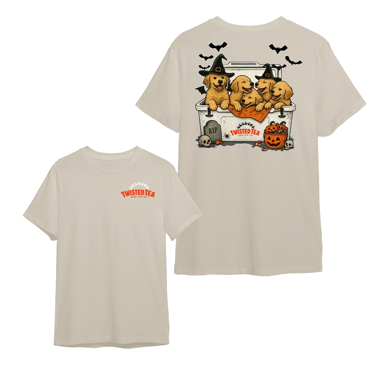 Dogs Beer Twisted Tea Tees, Halloween T-Shirt Golden Retriever T-shirt, Halloween Cute Dog Trendy Shirt, Perfect Beer And Dog T-shirt Casual Cotton Top Gifts For Women and For Men