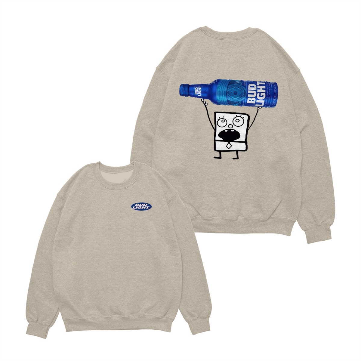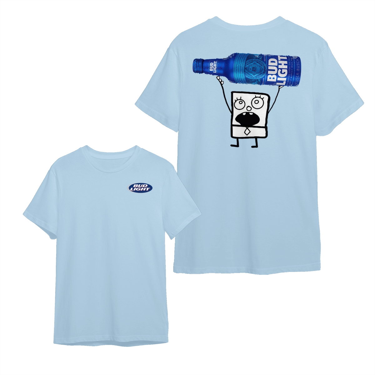 Doodlebob Bud Light T-Shirt, Cartoon Holding Beer Bottle Graphic Back, Add to Cart Buy Now Fun Tee for Party Lovers