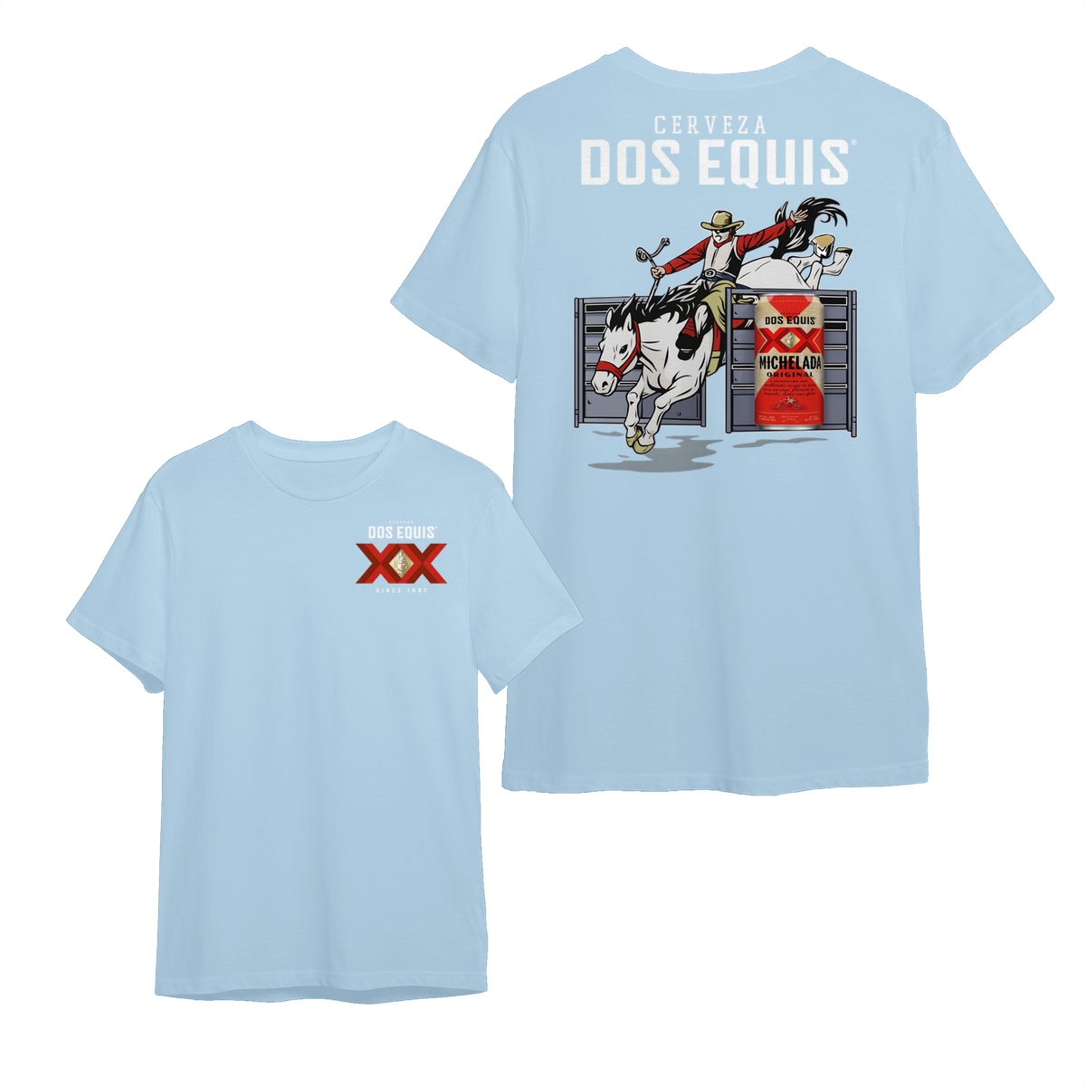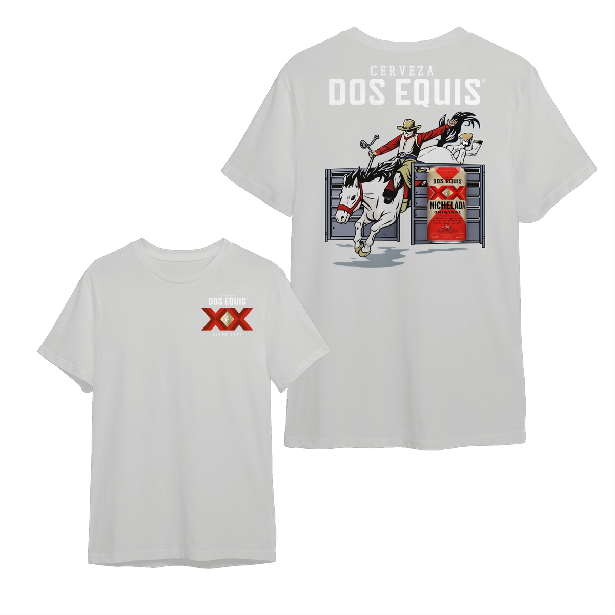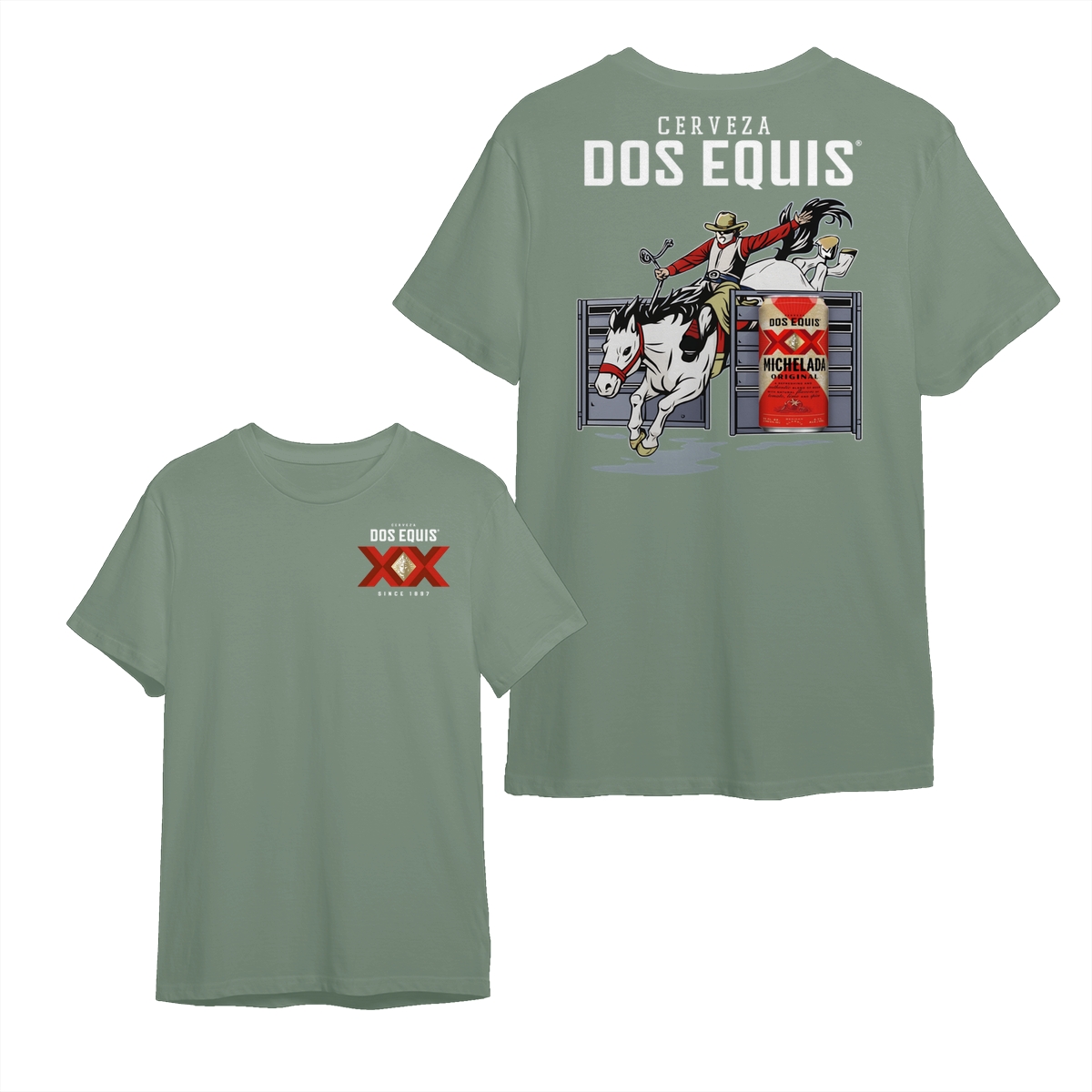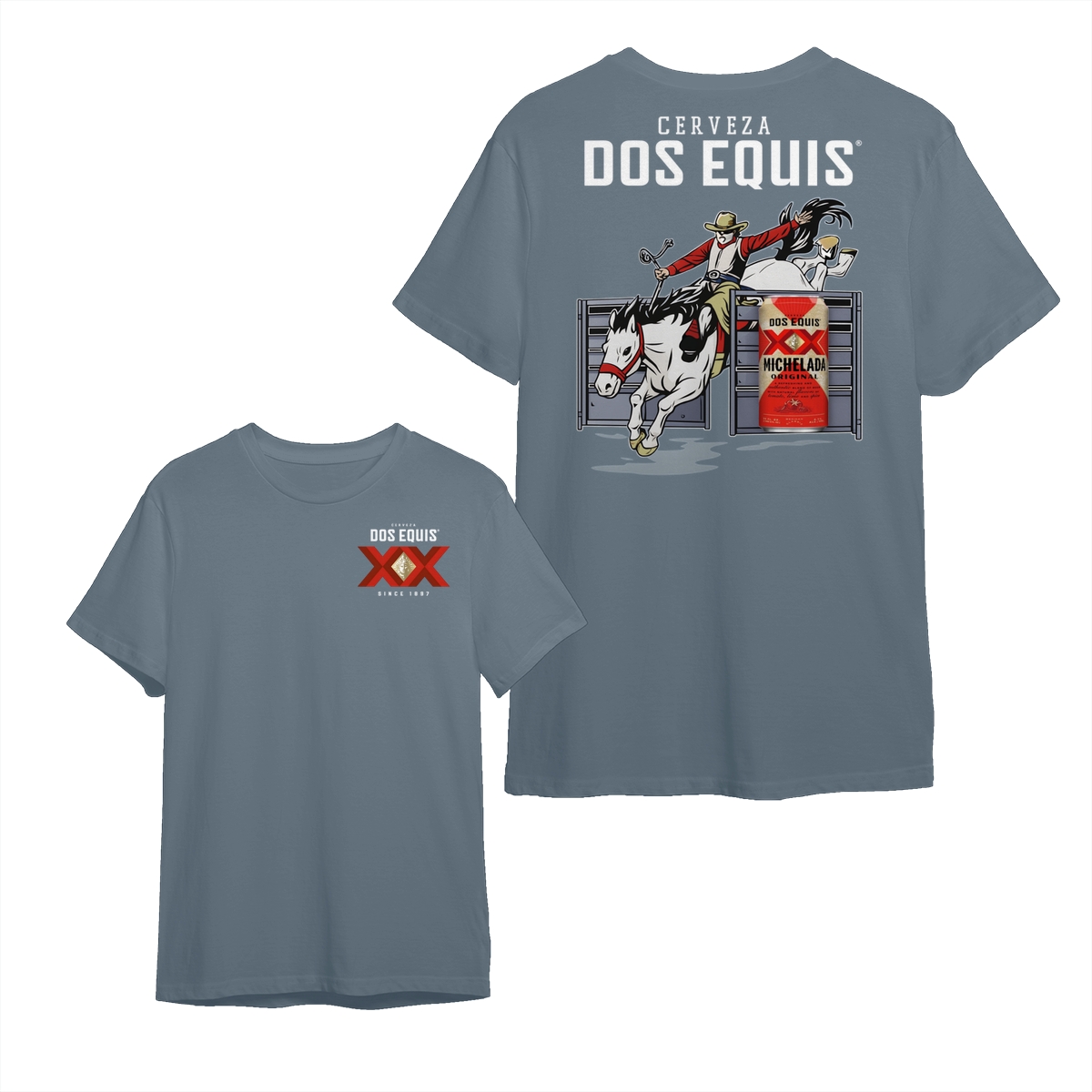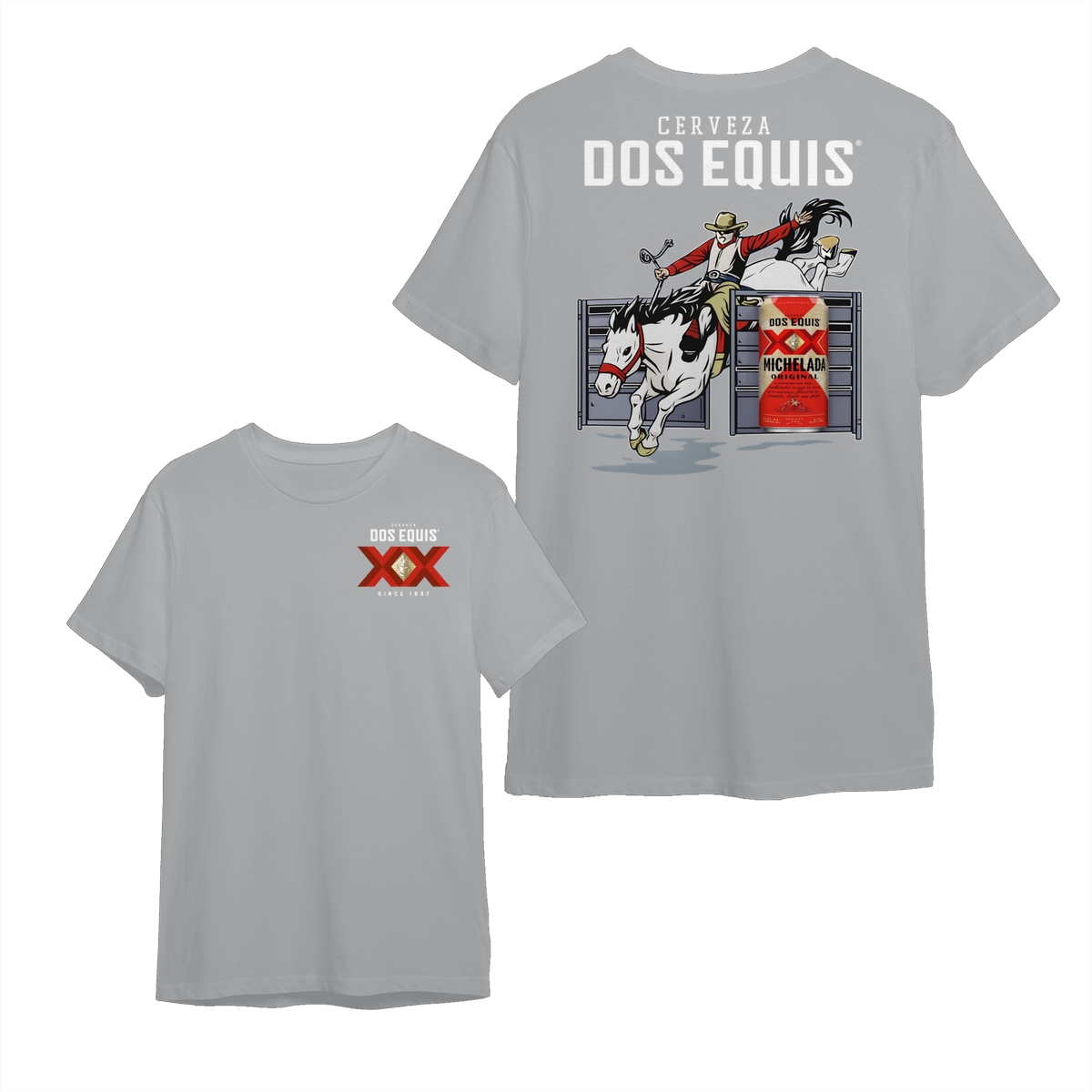 Dos Equis XX Cerveza Horse Riding T-Shirt US Beer Hunting Season Drinking 2-Sided Graphic Tees Summer Outfit Ideas Womenswear Casual Unisex Cotton