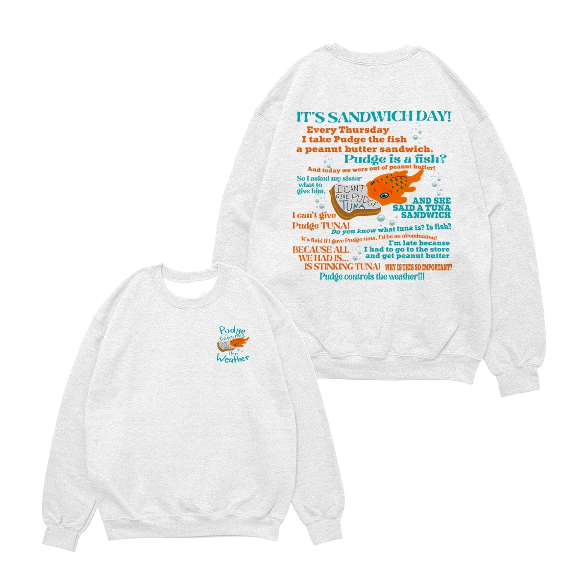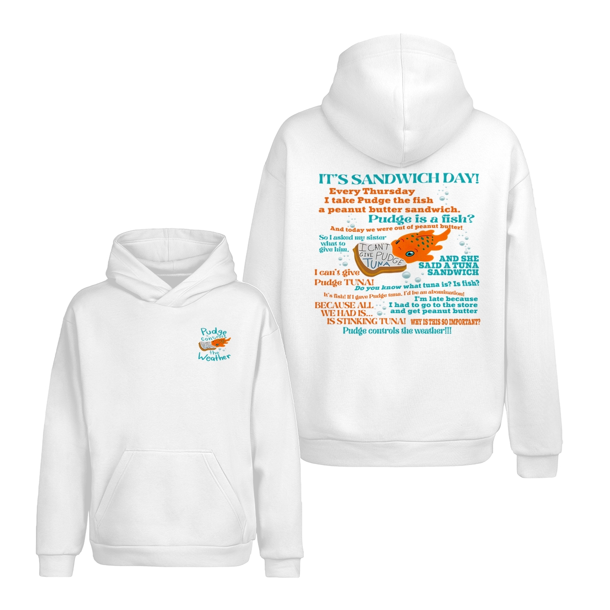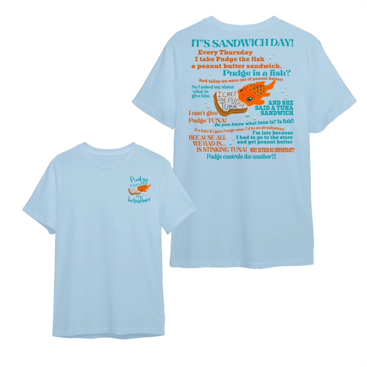 Double Sided Pudge The Fish Quotes TShirt, Pudge Control The Weather Tshirts, Gift For Cartoon Fans Kids Girl, Cute Cotton Fit Tee