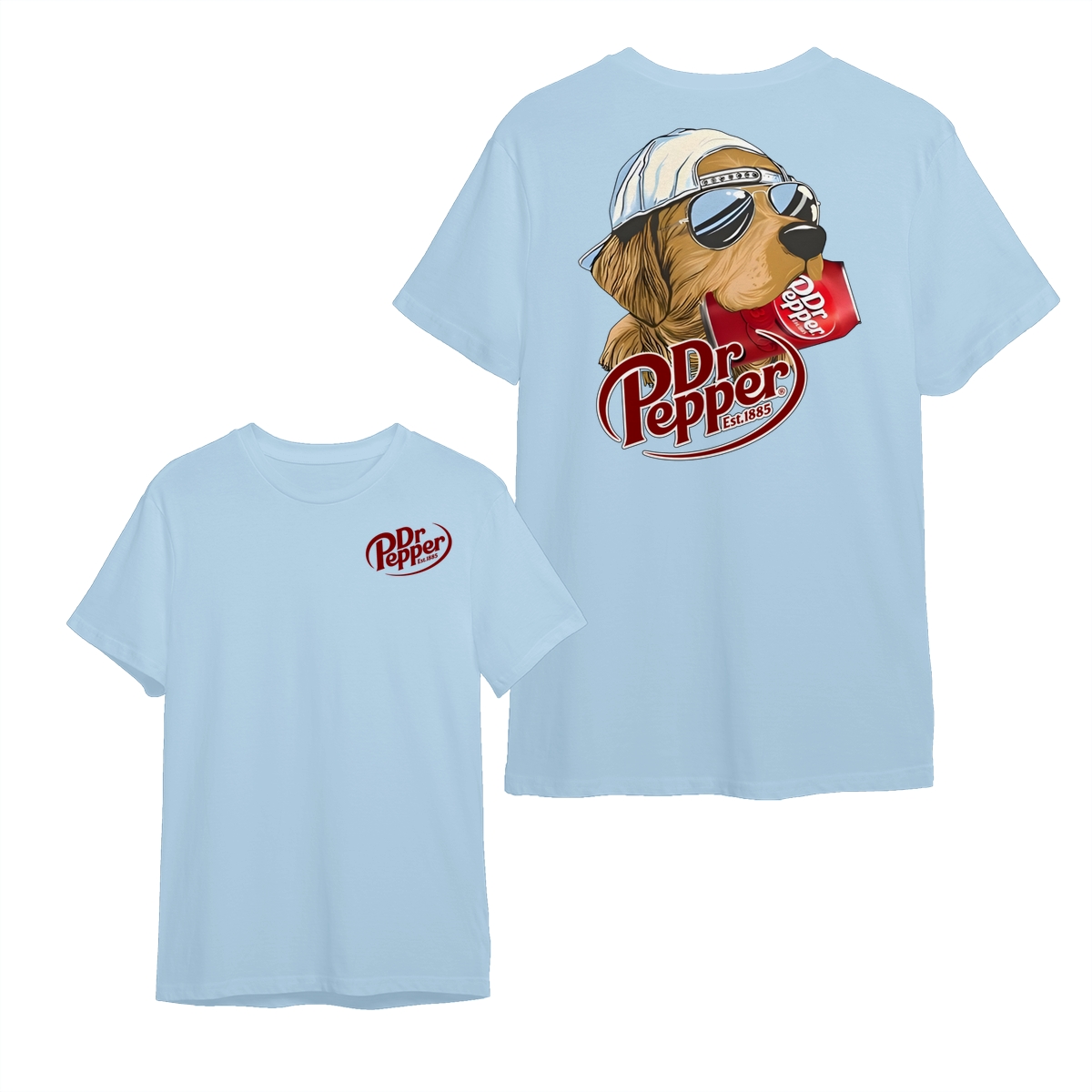 Dr Pepper Golden Dog Graphic Tee, Unisex 2-Sided T-Shirt for Men & Women, Funny Retro Soda Lover Top, Perfect for Casual Daily Wear