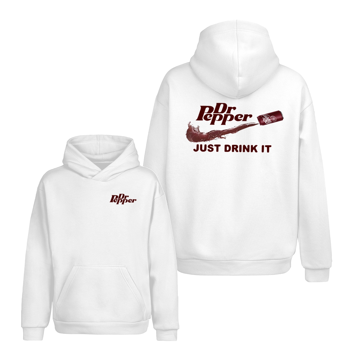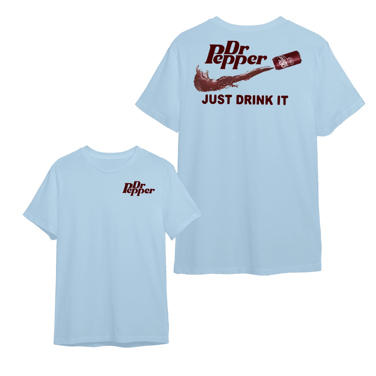 Dr Pepper T-Shirt – Cotton Tee with Small Chest Logo, Large Back Graphic Featuring a Realistic Can Splash and Eye-Catching “JUST DRINK IT” Slogan, Trendy and Bold Apparel for Soft Drink Enthusiasts