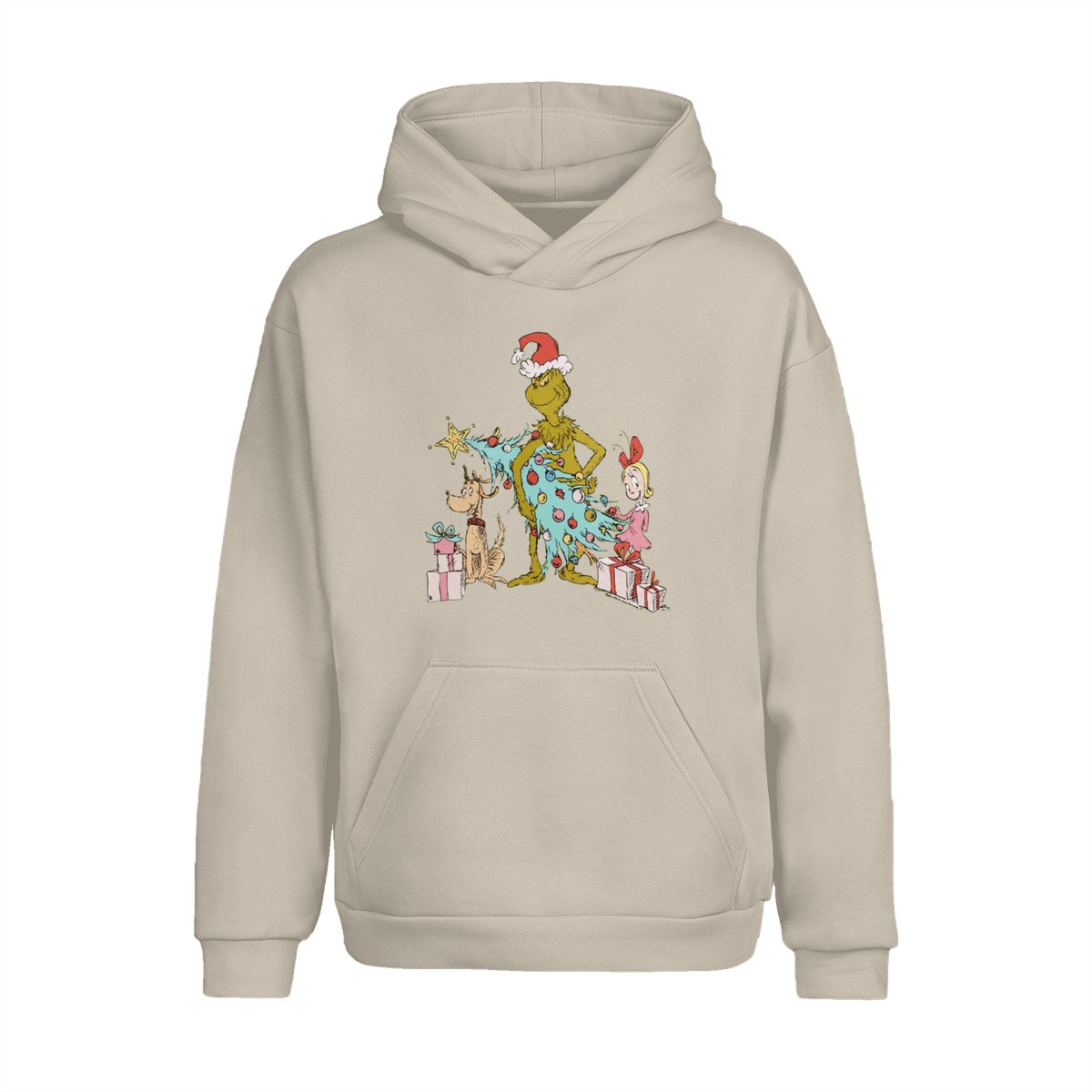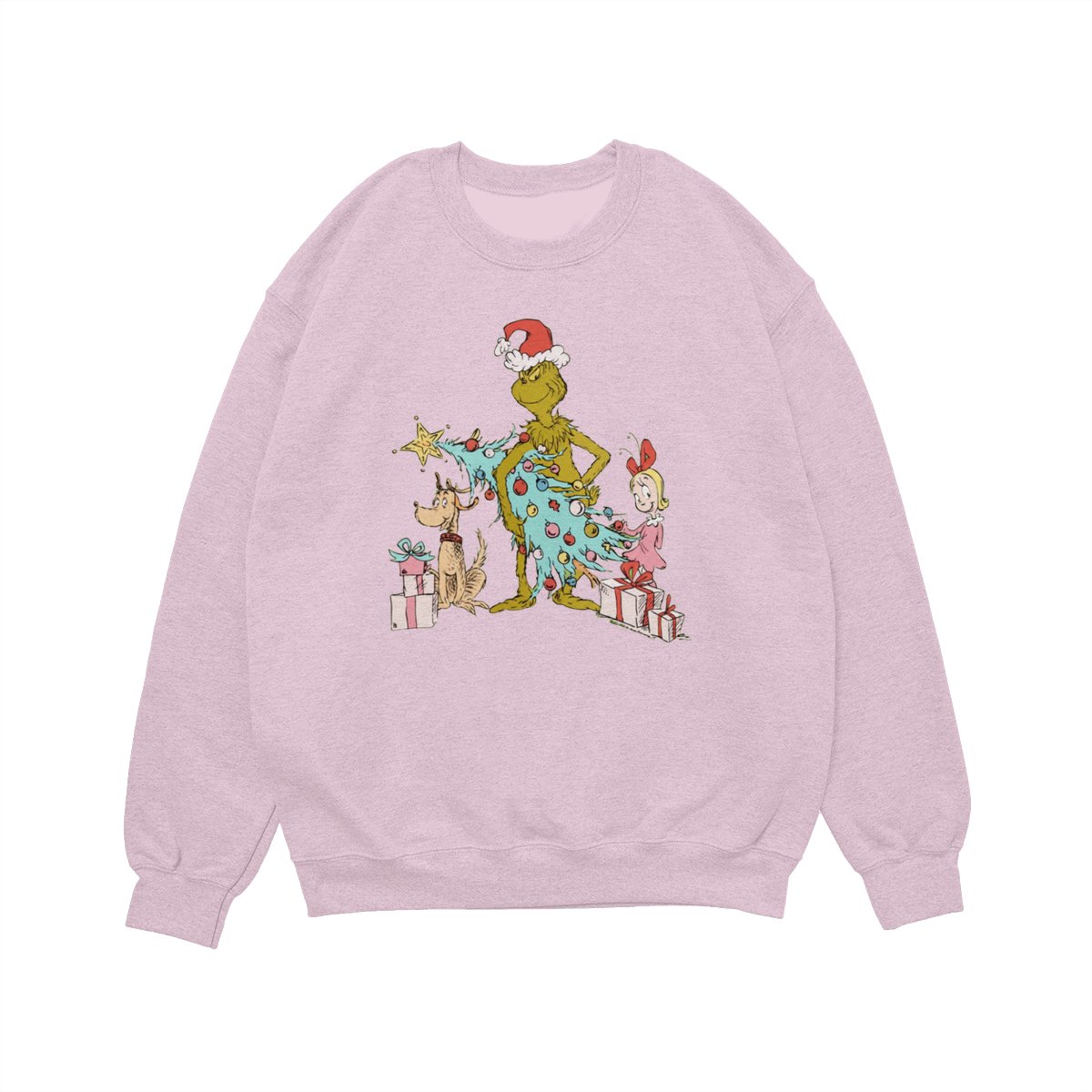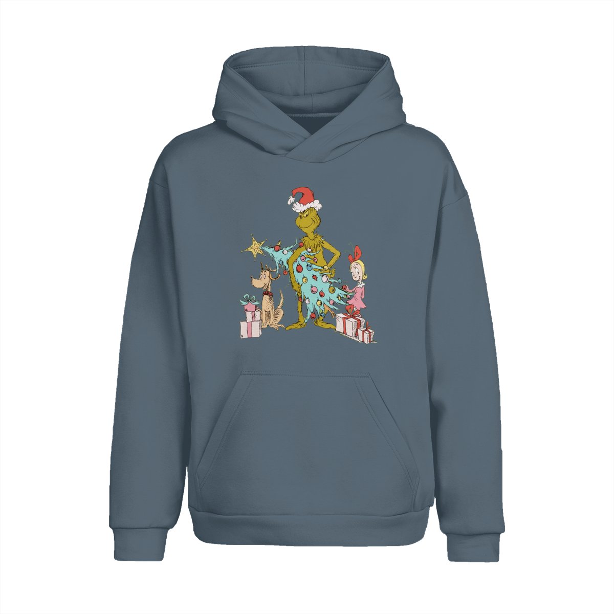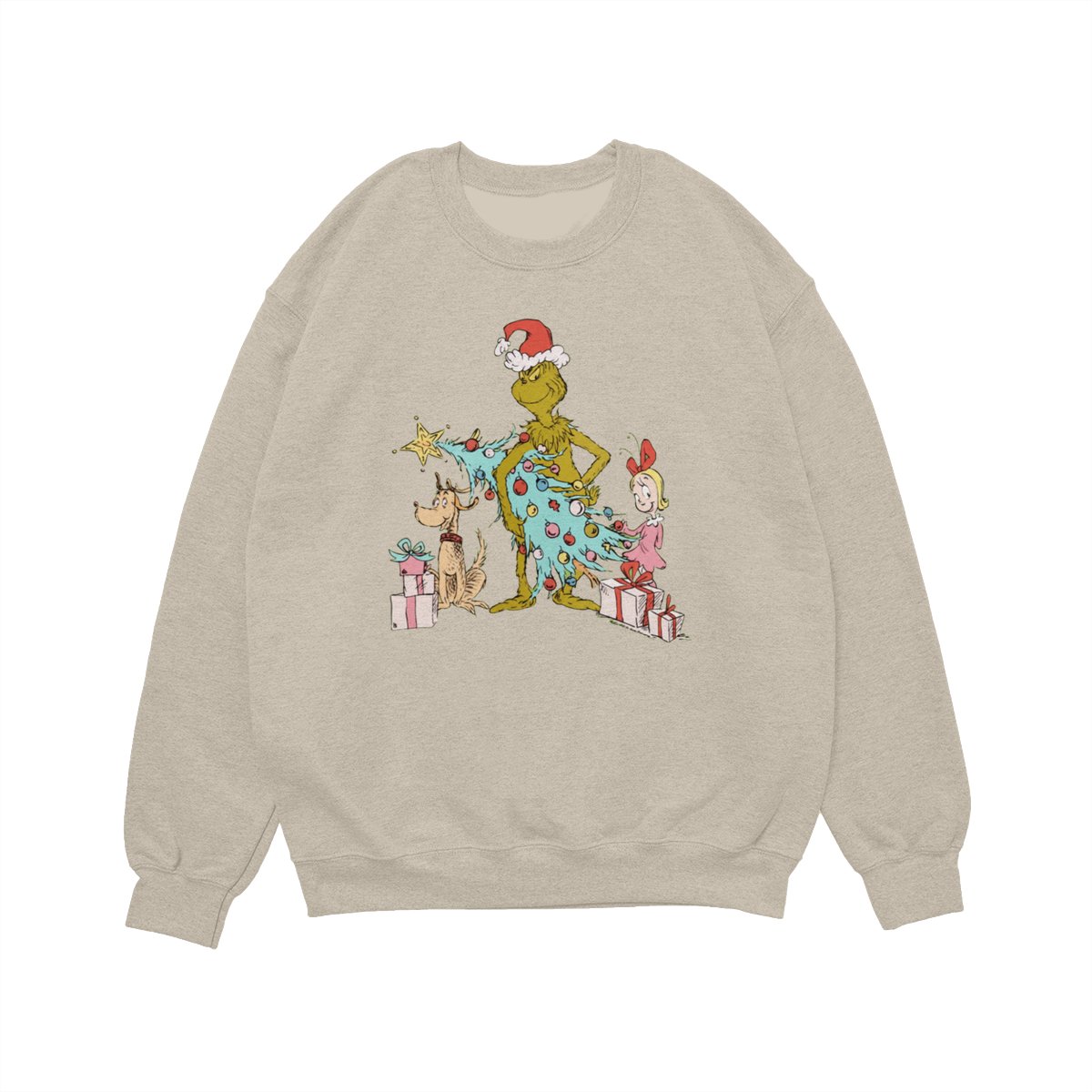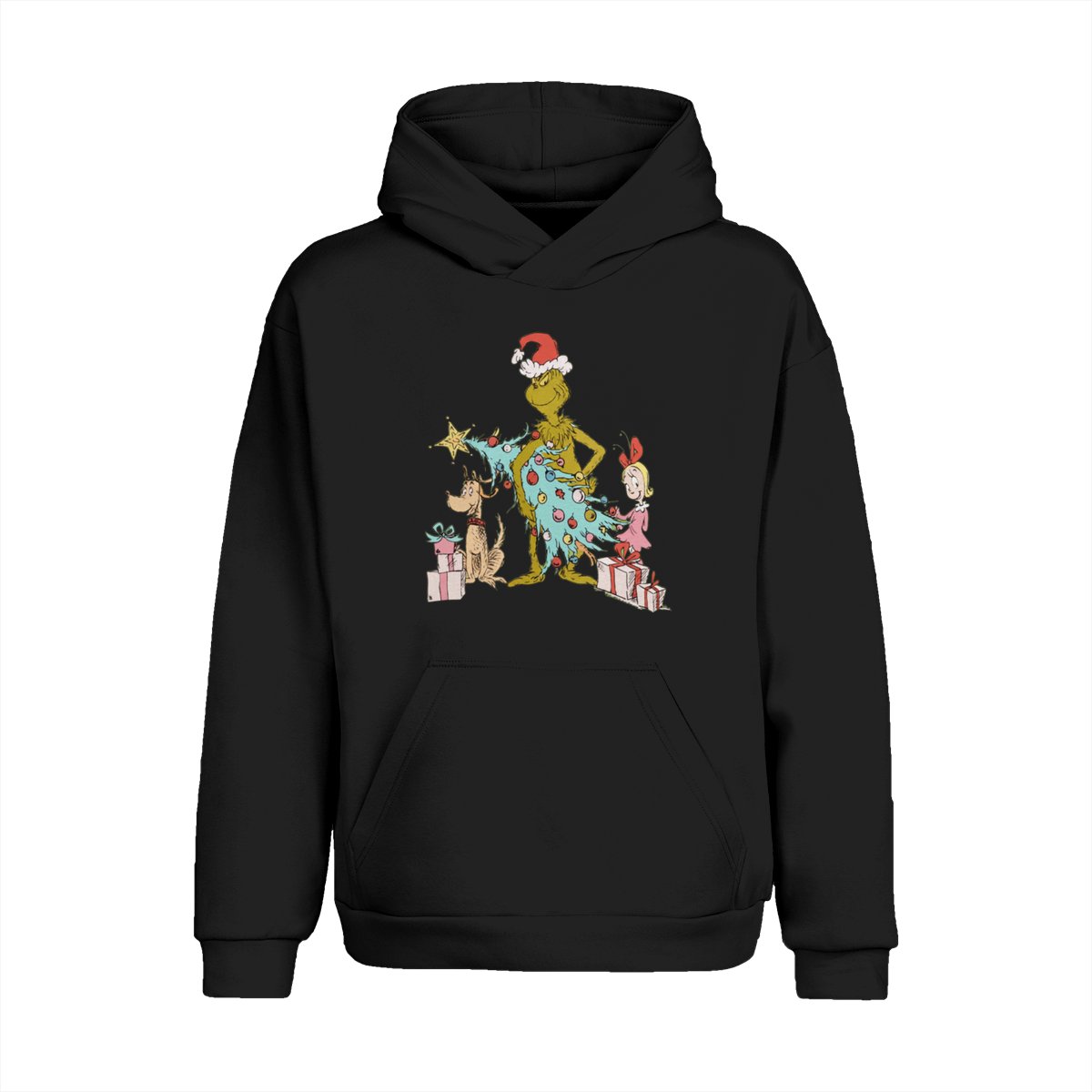 Dr. Seuss’ The Grinch Whoville Style Christmas Cartoon Tee – Funny Green Holiday Mischief Character with Girl and Dog, Decorated Tree & Gifts – Cute Retro Xmas Illustration Shirt for Winter Season, Festive Outfits, Holiday Parties & Christmas Gift Ideas